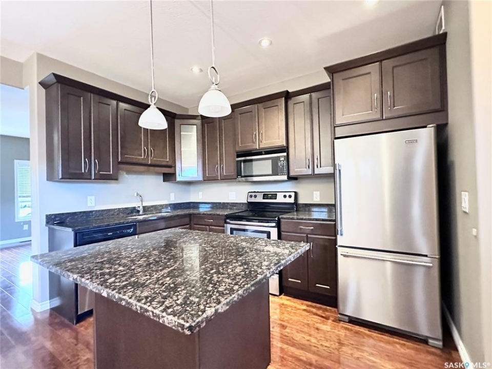 Welcome to 1026 Willowgrove Crescent. This 1,337 sq. ft. end-unit two-storey townhouse is located in the desirable community of Willowgrove and offers a functional layout with modern finishes throughout. The main floor features a bright living room, dining area, and an open kitchen with granite countertops, an island with an eat-up bar, stainless steel appliances, and a large pantry. A two-piece bathroom completes the main level. The second floor includes two spacious bedrooms, each with its own four-piece ensuite and ample closet space!!! New carpet has been installed throughout the upper level. The fully developed basement provides a family room, third bedroom, and a three-piece bathroom, offering excellent space for guests, extended family, or a home office. Outside, the property includes a deck with a natural gas BBQ hook-up, a fully fenced yard, huge double detached garage across the alley, and an additional private parking stall. With three bedrooms each featuring their own bathroom, this home is well-suited for families, professionals, or investors, including those looking for a great option for university students. Close to schools, parks, and amenities. Ready for immediate possession and easy to show.