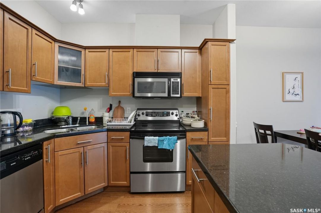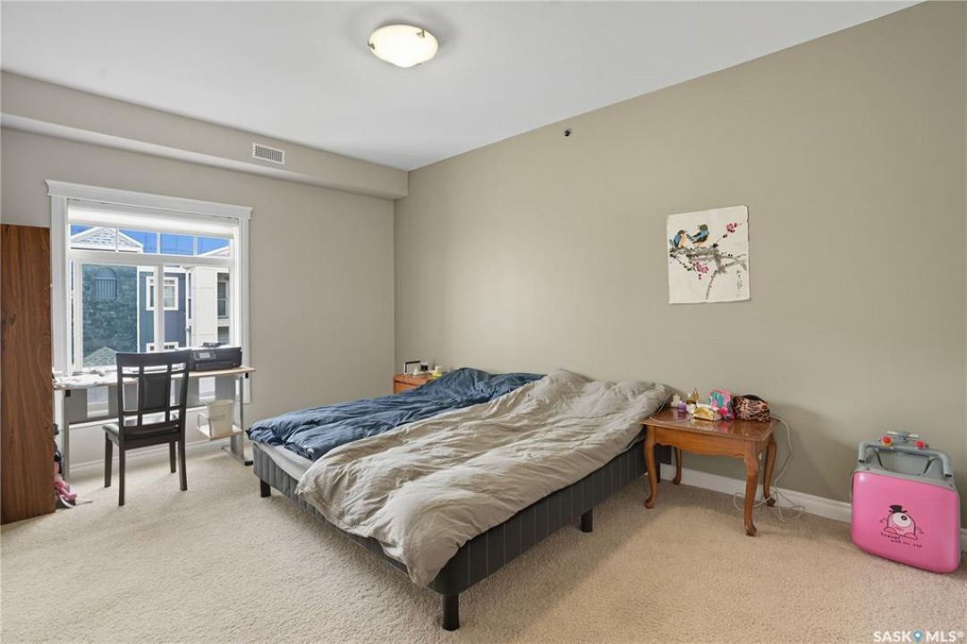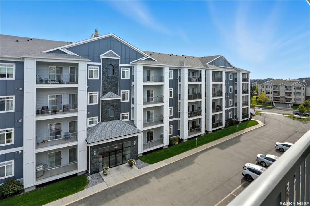 Prime location – 2-bedroom, 2-bath condo with underground parking. Welcome to Platinum Heights, one of the most sought-after condo communities in University Heights. Perfect for investors seeking strong cash flow, first-time buyers, or those looking to downsize! This quiet top-floor unit combines comfort and convenience, featuring 9-ft ceilings, in-floor heating for year-round comfort. The open-concept layout includes 2 spacious bedrooms, 2 full bathrooms, a modern kitchen with granite countertops and ample cabinetry, and a cozy living room with a gas fireplace. Heated underground parking with storage, along with generous visitor parking at the front of the building. Unbeatable location: steps from University Heights shopping district, including banks, restaurants, coffee shops, grocery stores, and the public library. Within walking distance to two high schools—without the congestion at their front doors—and public transit outside provides direct access to the University of Saskatchewan. Close to Willowgrove community garden, scenic parks and walking trails. Residents enjoy excellent amenities, including a fitness room, recreation lounge, and convenient car wash bay. Schedule your showing with your favorite realtor today!