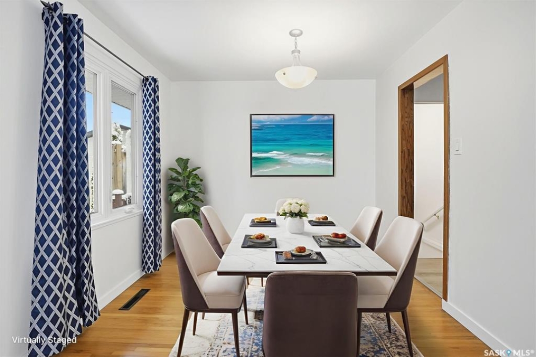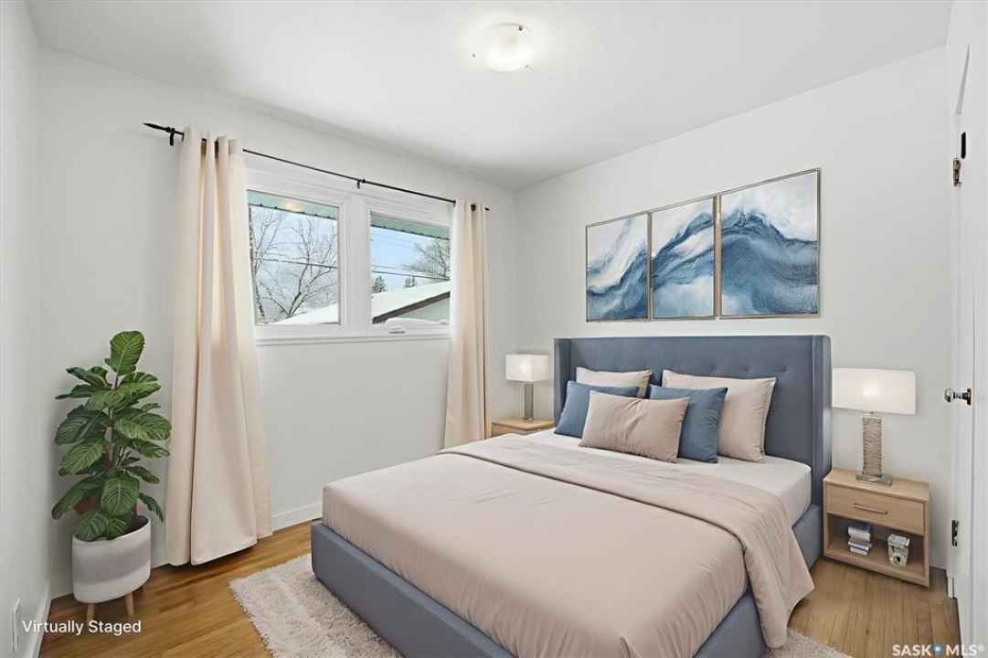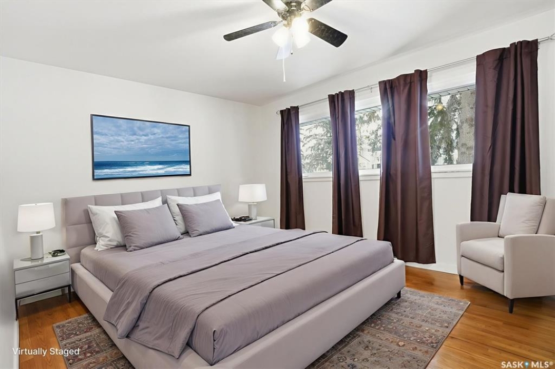Welcome to 2126 William Avenue, a charming 966sqft bungalow in the heart of Queen Elizabeth, offering a blend of modern updates and timeless character. This well-kept home features beautiful original hardwood floors on the main level, complemented by an updated kitchen with modern cabinets, upgraded taps, sink, and fresh plumbing. The main floor also includes two comfortable bedrooms and a recently updated 4-piece bath. The basement, fully developed in 2013, adds two additional bedrooms, a bright family room, and an updated 3-piece bathroom—perfect for guests or growing families. Extensive upgrades throughout the home over recent years include newer windows, exterior paint, soffit, fascia, eaves shingles, sewer line, electrical panel, furnace, water heater, central air conditioning, and a newer washer & dishwasher for added convenience. The home also has a back patio, garden area, shed, 12'x22' detached garage, and a large gate to the rear yard for RV parking and access to the whole yard. Situated in an excellent location close to parks, schools, and all the amenities Queen Elizabeth has to offer, this move-in-ready property delivers comfort, style, and peace of mind.
