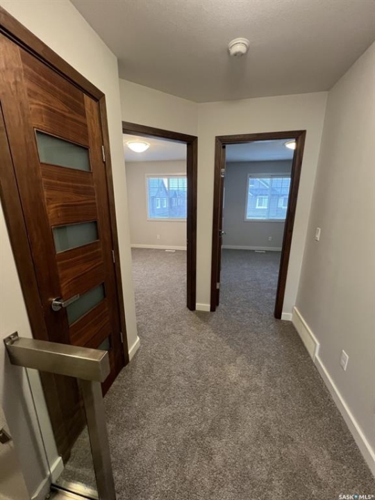 Welcome to this beautifully maintained townhouse offering comfort, upgrades, and an unbeatable location. Inside, the bright and inviting layout showcases an open-concept main floor, modern finishes, and excellent natural light. This property includes 3 bedrooms, 1.5 bathrooms, a spacious open concept kitchen and living area finished with premium stainless steel appliances, quartz counter tops, soft close New-York style cabinetry and new lighting fixtures thoughtfully selected to enhance the space. The main floor features beautiful maple hard wood that has been well maintained. Solid core Walnut interior doors throughout the home provide a strong high quality finish and feel. The east-facing master bedroom captures the morning sunrise through its large windows, creating a warm and peaceful start to each day. It also features a large walk in closet and a Jack-and-Jill style ensuite. Step outside and enjoy a rare, serene setting directly across from a beautiful walking path beside the university fields—a peaceful backdrop for morning strolls, dog walks, or quiet evenings. This home features brand-new never lived on carpet throughout the upstairs and a newer top-of-the-line high efficiency furnace—replacing the standard builder model. This is the perfect blend of comfort, convenience, and thoughtful upgrades. Move-in ready and truly a standout location.