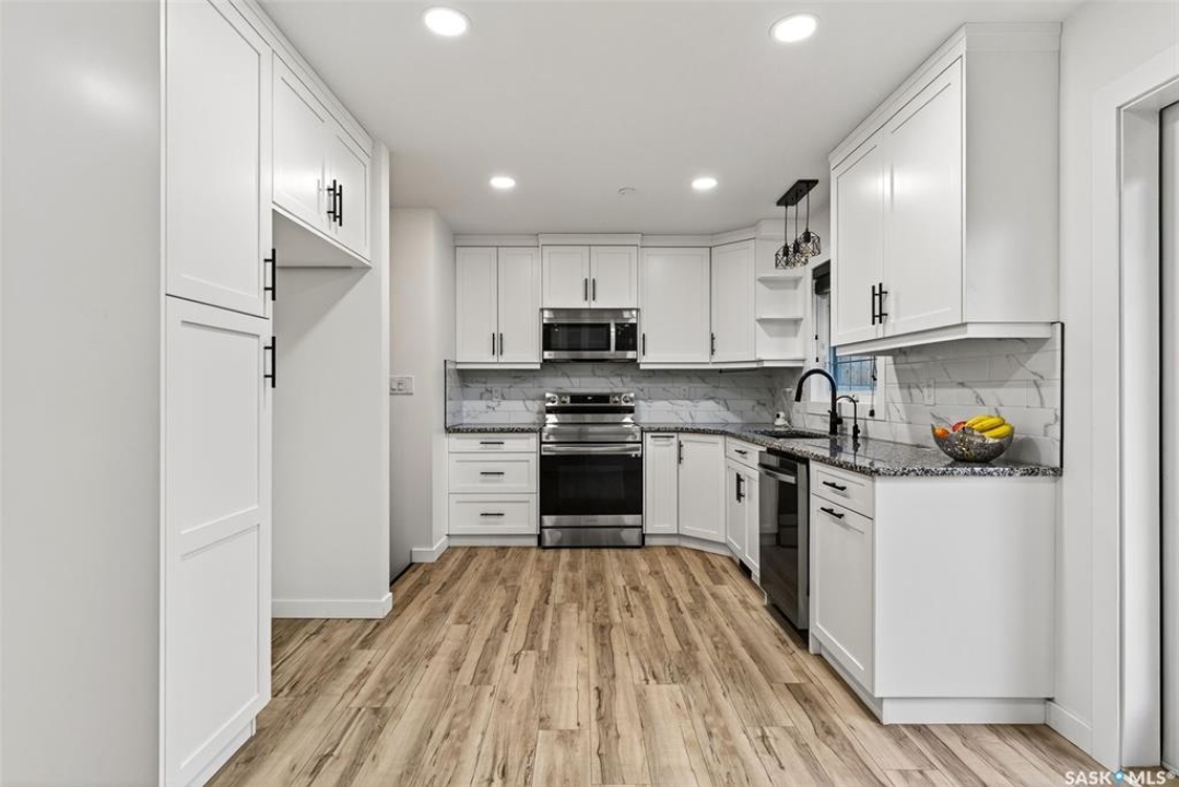 Ring in the 2026 New Year in your gorgeous new home! This extensively renovated family home is move-in ready! Ideally located on a quiet street in a safe sought-after neighbourhood just a block from both public & Catholic schools. With over $150k in recent upgrades, you'll love the modern comfort & style and unbeatable convenience—minutes from all east-end amenities. This home is a must-see! Step inside to your spacious, sunken living room featuring a beautiful wood-burning fireplace. The entire main floor was renovated in 2023-25 including new waterproof, luxury vinyl plank flooring throughout. The bright white kitchen shines with new custom cabinetry & beautiful granite countertops. You'll love the dining area with a custom-built hutch-style feature wall — a perfect spot to showcase your favourite dishes or set up the coffee bar of your dreams. There are three newly renovated bedrooms on the main level including a primary suite with walk-in & 3-piece en suite with heated towel rack & luxury steam shower to die for. All three bathrooms have granite countertops & new smart mirrors, providing customizable steam-free lighting. Downstairs, the third bathroom features a gorgeous jet tub adding a spa-like ambiance to the home. The spacious family room is the perfect hangout space for kids, movie nights or Grey Cup party! A versatile den/office/gym could easily convert into a fourth bedroom and a generous laundry area & abundant storage add everyday functionality. Basement floors were updated & some professionally engineered wall bracing has been done for your peace of mind. The patio doors off the dining area lead to a massive composite deck, sunken 8' hot tub & a beautifully landscaped yard with recent grading, sod & 10' brick patio with firepit. The exterior of the home was also updated in 2025. 3194 Salterio is truly the perfect place for your family to grow! Don't miss your chance to own this beautifully updated home—contact an agent today to book your showing.