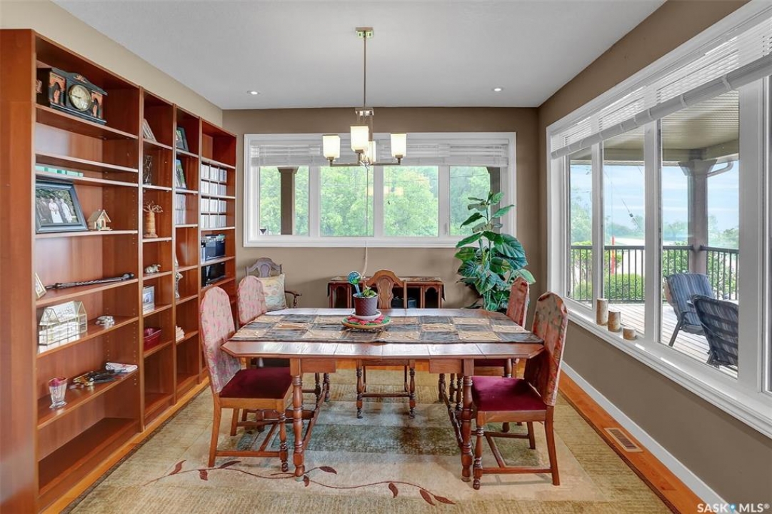 Welcome to 81 Kinsley Place at Mission Lake! WOW! This large walkout delivers incredible, unobstructed views to the lake! This custom, thoughtfully designed home offers an abundance of both luxury and practicality! The main level features 3 good size bedrooms + the primary suite that proudly includes a great 3 pc ensuite, walk in closet, and large windows. The formal dining area is open to the living room with gorgeous hardwood floors. The large kitchen is a chef's dream with nutmeg maple cabinets, large island with a quartz top, S/S appliances (Kenmore Elite freezer/fridge combo), built in pantry with rolling drawers, wine rack, tons of counter space/storage and added pot lights. There is a convenient flex room and 2 pc bath tucked away behind the kitchen. The main bath and ensuite boasts heated flooring. The large laundry room includes the washer and dryer, sink, and more storage capacity. The impressive walkout level showcases an 1800 sq ft suite with a large kitchen with crisp white cabinets, full set of appliances, 3 bedrooms, private laundry room, a full 4 pc bath, and patio doors that lead to a large, private patio space. The exterior of this property includes a retaining wall, swale, garden area, ample parking, and a super impressive covered deck that spans the entire length of the home where you could easily have 75+ people comfortably enjoying the sunrise or the sunsets! There has been many large gatherings and even a few weddings on the property! A large insulated and heated double garage with a workshop completes this property. Other important noteables - steel beam construction, original owners, central vac, central air, air exchanger, original drawings available. A true gem in the land of the living skies!