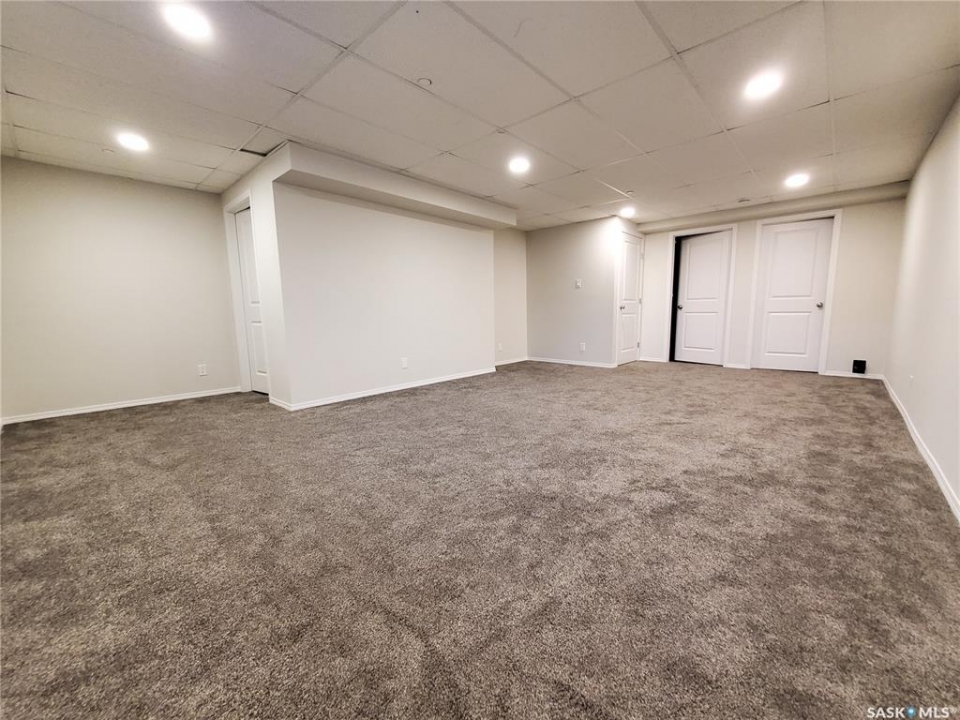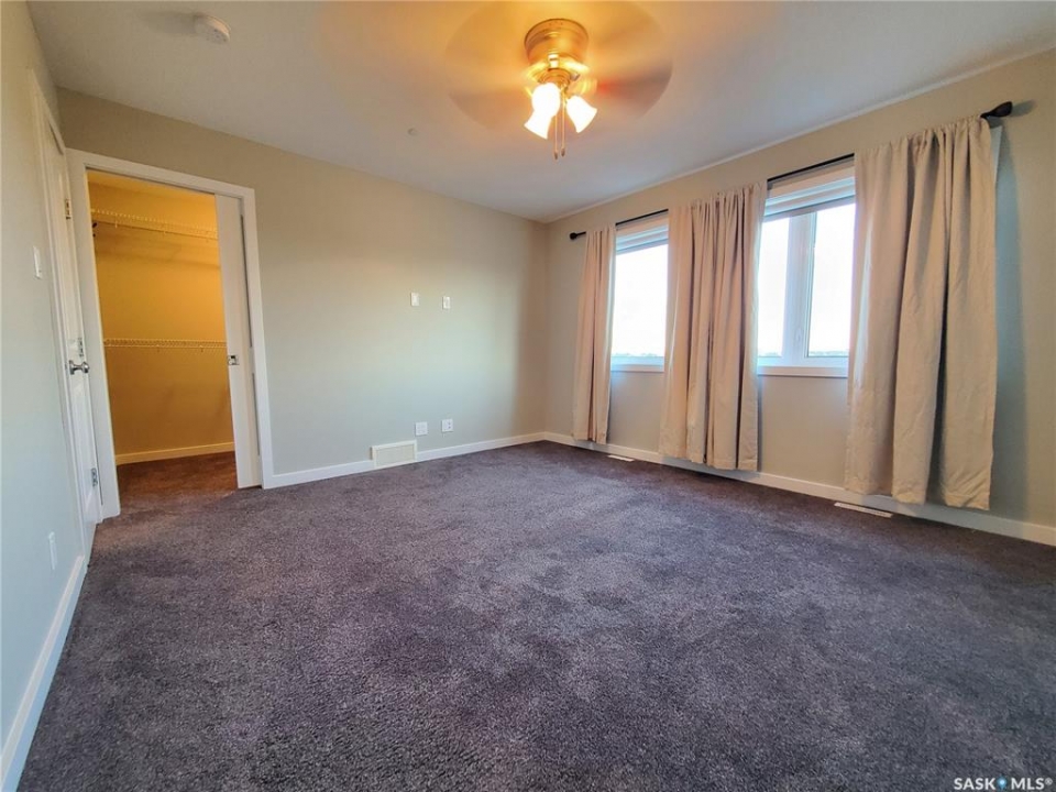 This standout end unit townhome at 553 Douglas Drive, Swift Current, combines quality craftsmanship, a prime Sask Valley location, and a layout designed for everyday ease. The elevated front deck looks out toward Ecole Centennial School, giving you a pleasant view before you even step inside. The main floor offers a smooth, open flow with a welcoming living room leading into a sharp-looking kitchen featuring dark, rich-looking cabinetry, stainless steel appliances, granite counters, a four-seat island, and a built-in desk for quick tasks. The bright dining area opens to a private back deck, fenced yard, and double gravel parking, while the rear entry brings extra storage, a plug-in for your deep freeze, and a handy half bath. Upstairs, you will find two comfortable secondary bedrooms, including one with a walk-in closet, the laundry area, and a full bathroom, followed by a generous primary suite with its own spacious walk-in. The finished basement rec room adds bonus living space with a bathroom already roughed in. The home's mechanicals include a heat recovery unit, a high-efficiency furnace, central air conditioning, underground sprinklers, a fire suppression system, and hard-wired smoke detectors to complete a package that is comfortable, convenient, and safe. If you want a home that performs as well as it looks, this is the one to move on before someone else does.