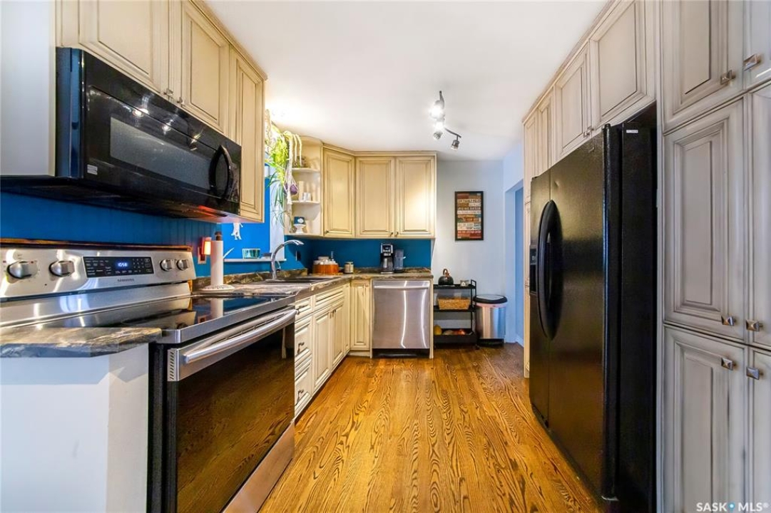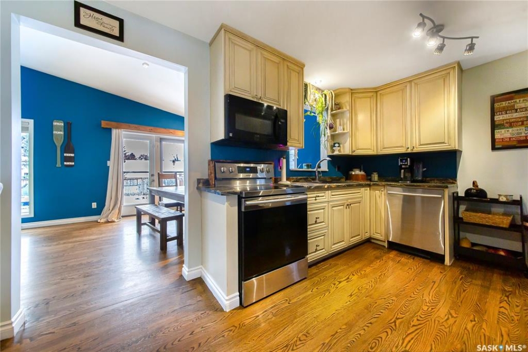EARLY POSSESSION AVAILABLE!!!!!!!!! PUT THIS ONE ON YOUR LIST TO VIEW!!!!!!!!! What an Awesome Home on an Excellent crescent location!!!!!! This one is loaded up with hardwoods, upgraded windows, newer shingles, upgraded bathrooms, a really cool kitchen and a funky eating area with antique colored upgraded cabinets which are accented with black and stainless steel appliances. My favorite room is the professionally built 1999 addition to the back of the house. It's a huge family room/ games room/ dining room and an excellent place to gather or entertain family and friends. It comes with 2 sets of French doors that open up to the oversized backyard and the 31 ft by 12 ft deck. Loads of room for outdoor BBQ's and some outdoor games. There is also a 14 ft by 28 ft deep super single detached garage. The upstairs contains 3 bedrooms and 1 bathroom and the basement has a 4th bedroom and a 2nd bathroom. Some other extras are the high efficient furnace, central air, alarm system and a triple long concrete driveway with room for 3 or 4 vehicles and another one in the garage. Very close to 2 elementary schools and several amenities. Still so much to mention so I encourage you to call an agent and see for yourself!!!!!!!!