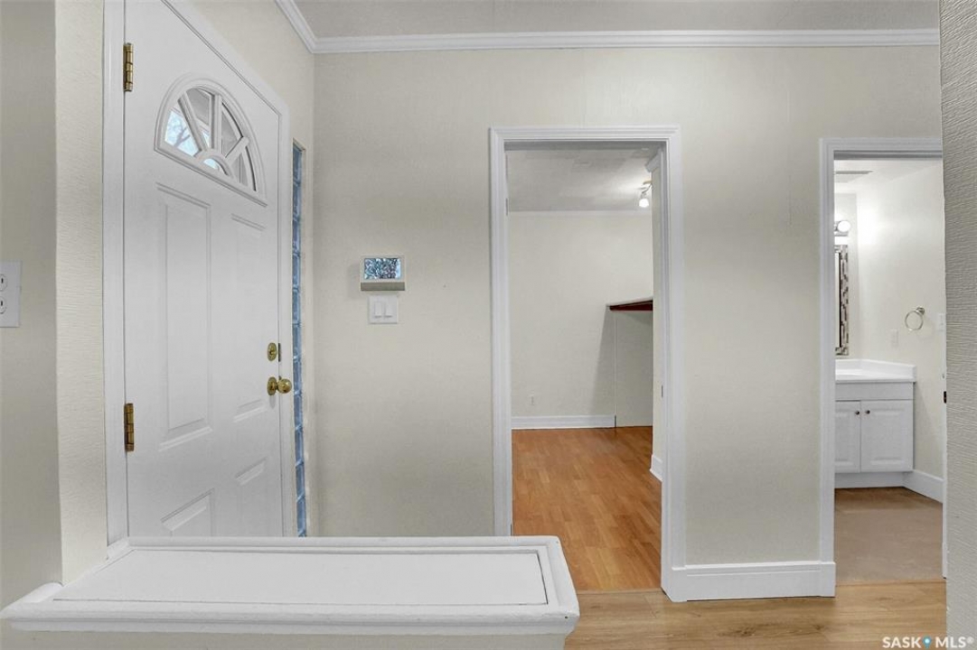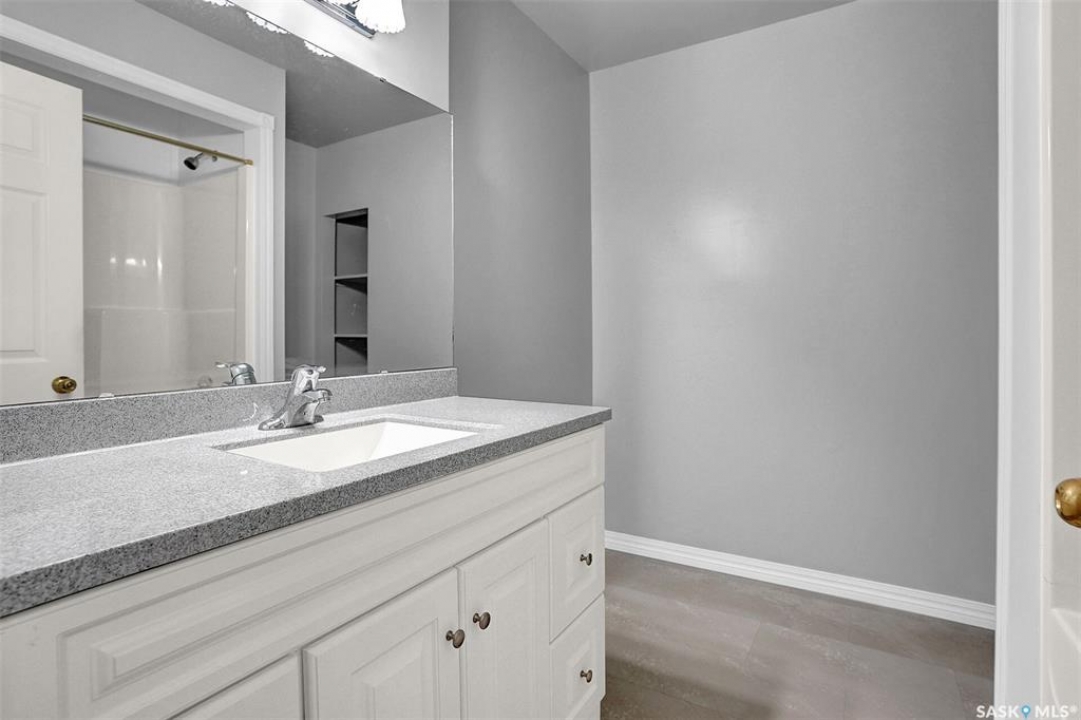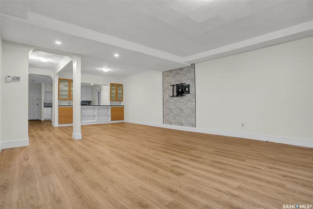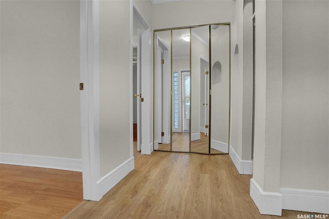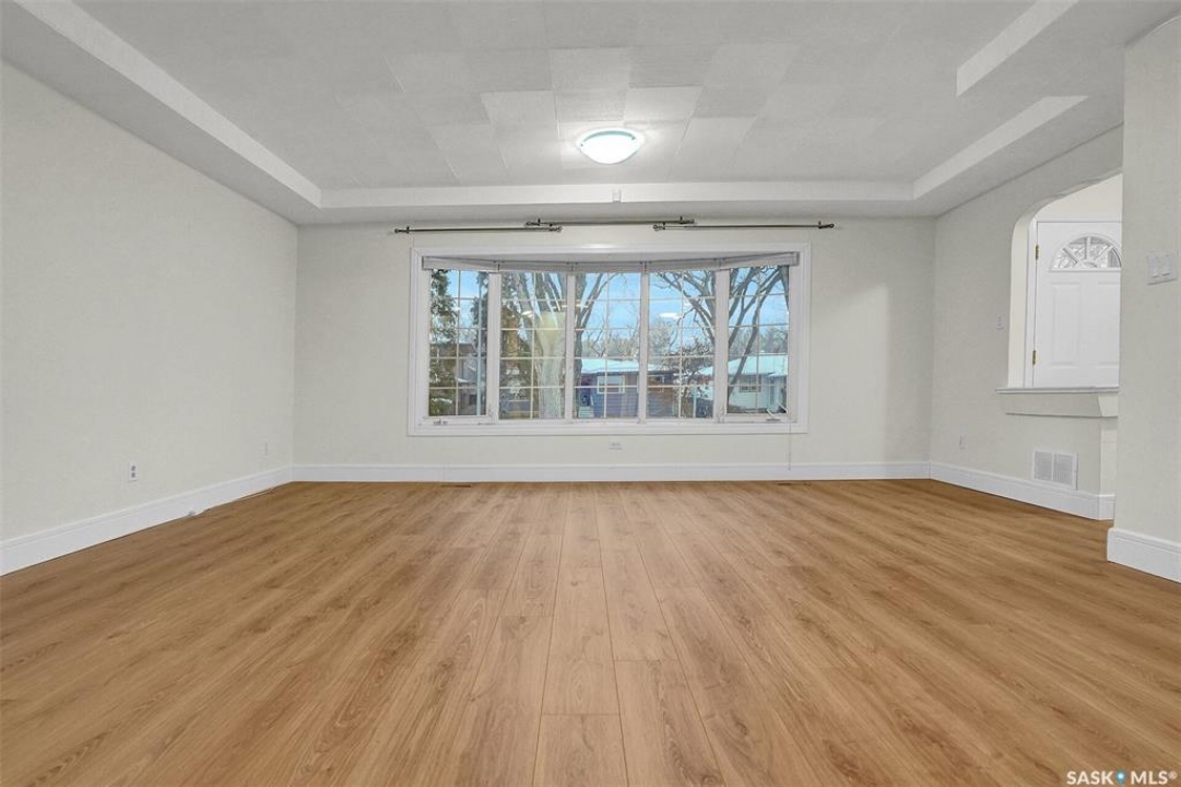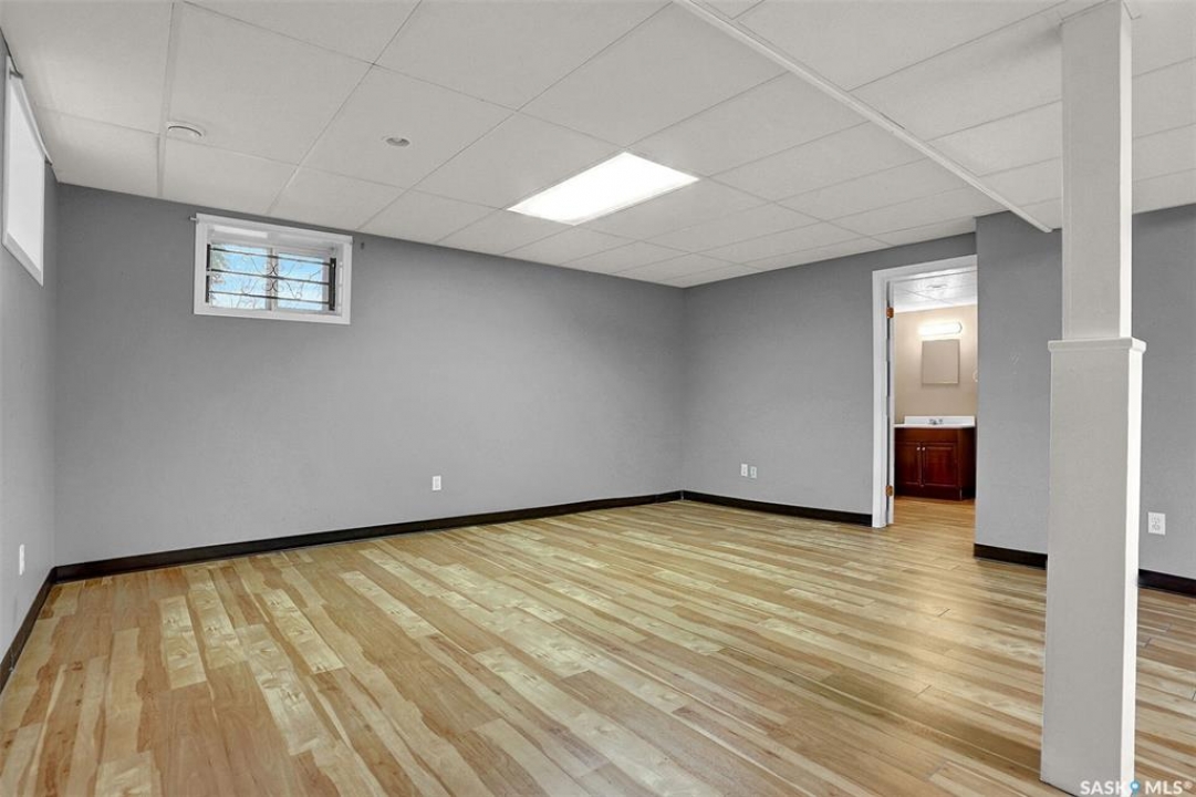 Located in the desireable Lakeview area. Bright, open, spacious, versatile floor plan! Crisp and fresh, ready for new owners. When you step inside there is a charming entry with the character of 1953 then modern updates with laminate flooring, updated windows, bathrooms, kitchen, sunroom and the list goes on and on. Functionality: the front room was a bedroom and the owners added updated plumbing and venting for main floor laundry: the choice is yours'. The front living room with charming bay window extends to the sitting area with TV mount and then there is build in cabinetry for a dining area if you so desire. The custom designed kitchen pops with white cabinetry and tons of natural light. Lots of drawers and counter space plus a centre island. The primary bedroom can accomodate a king size bed plus it has 2 closets and entry to a main floor powder room. The two other bedrooms are a good size. A apcious main bath completes this level. Downstairs you find a room with a closet and window (it may not be standard egress size) that is insulated and drywalled: just needs ciling and flooring. The family room is very large, has 3 windows and there is a 3/4 bath. A sunroom 23.11 x 11.9 (2012) with 2 person hot tub is off the kitchen. Sunroom floor is covered with a waterproof lawyer below the indoor/outdoor carpeting. Gas line for BBQ. The 24 x 24 garage (2006) is insulated and drywalled. Wired for 220V. Attached shelving and flip up work tables are included. Fully fenced back yard with artifical turf (new summer 2025) , rubber tile patio,front deck is 8 x 16. Shingles updated June 2024. Drain lines under basement floor were replaced in the late 1990's. Main sewer line was replaced in the mid 2000's. (not City portion that goes under sidewalk). Permit and plans for the 576 sq addition from 1994 are available. Definetly a home to check out. Offers will be viewed on December 1, 2025 Regina time: ash your real estate professional for details.