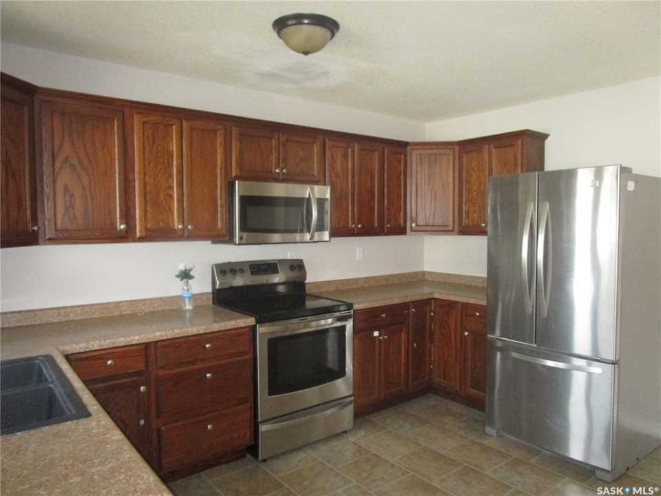 Attractive Raised Bungalow in Coronach, Saskatchewan. Ideally located on a corner lot . Features 28 x 25 foot garage with parking in front.. On the side is a double driveway leading to the fenced back yard . Find privacy and a lovely area for your family and ideal as well for your dog. Stepping into this home you will find a very spacious kitchen with lots of natural light. Counter tops on 3 sides with cabinets above them. Room for a large table in this room.. Updated Dishwasher, Fridge. Stove, Micro wave fan. 3 bedrooms on the main floor , the Primary bedroom features a 3 piece en suite. Main bathroom is completed with a quartz counter with dual sinks and a bathtub with a shower. Living room features room for all your oversized furniture and a big screen. The bay window really dresses up this room. Basement has a suspended ceiling and 2 more bedrooms and a den. The family room for all your entertainment. Laundry room is very spacious as well. Breaker box is 200 amp. The garage has a walk in door that you may enter from the backyard. It is truly a great garage, as you may see in the pictures, with a smooth even cement floor and a large automatic overhead door There is a large shed in the back yard. The windows are all PVC and this Home has been freshly painted . Come have a look and fall in love !