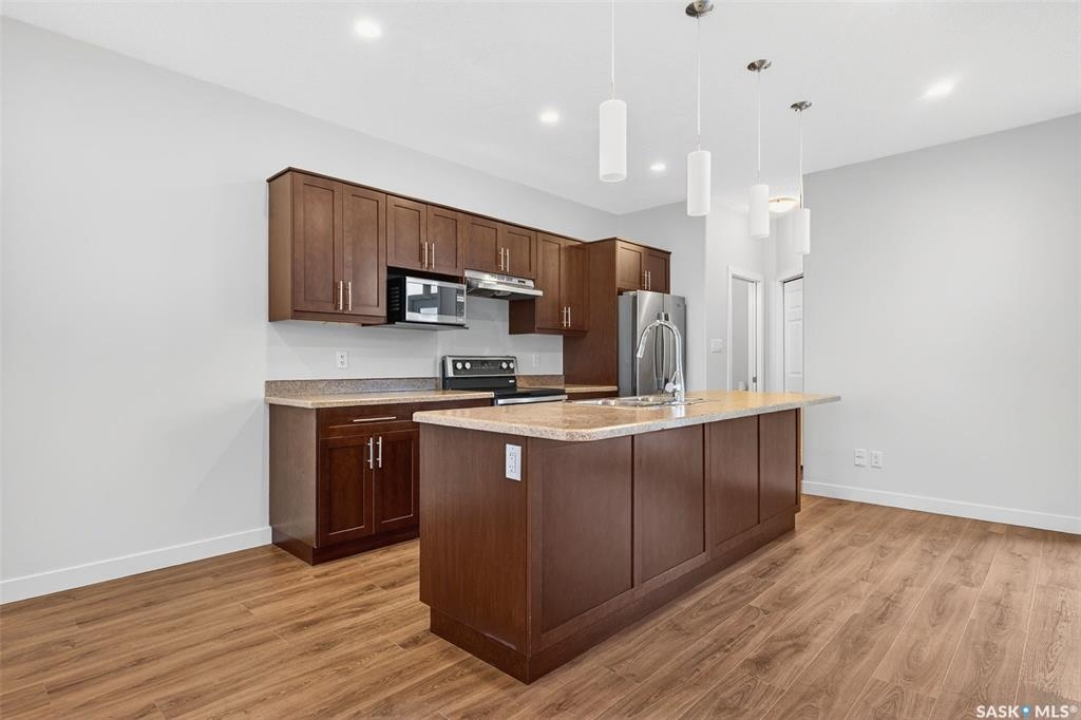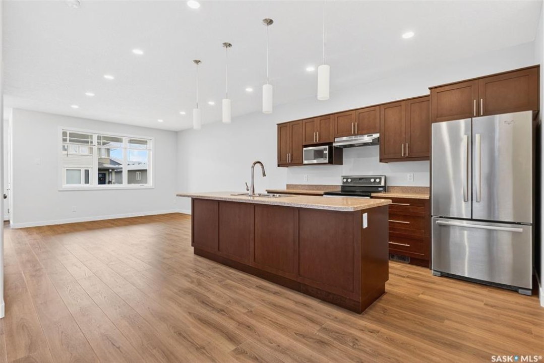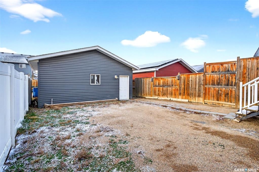 Welcome to 4125 Green Olive Way E, a beautifully maintained two-storey home located in the heart of Regina's sought-after Greens on Gardiner neighbourhood. Built in 2012 and offering 1,468 sq ft of well-designed living space, this property delivers modern comfort, family-friendly function, and excellent curb appeal. The main floor features a bright, open layout with a spacious living room finished in warm laminate flooring and accented by a cozy gas fireplace—perfect for relaxing evenings at home. The kitchen offers great counter space, a central island with an eat-up counter, and a functional layout that flows into the dining area, making everyday meals and entertaining a breeze. A convenient 2-piece bathroom completes the main level. Upstairs you'll find three comfortable bedrooms, including a generous primary suite with a 3-piece ensuite and a walk-in closet. Two additional bedrooms, each finished with soft carpet, share a well-appointed 4-piece bathroom—ideal for children, guests, or a home office setup with 2nd floor laundry for added convenience! The unfinished basement with a separate side entrance provides a blank canvas for your future development plans, offering excellent potential for a future suite (subject to municipal approval). Outside, the property sits on a 3,121 sq ft lot with a fenced backyard, lawn space, and a double detached garage that provides secure parking and extra storage. Located in a vibrant, walkable community close to parks, schools, shopping, restaurants, and all the amenities southeast Regina is known for, this home is an excellent option for families, first-time buyers, or anyone seeking a move-in-ready property in a premium location. Don't miss your chance to make this one yours!