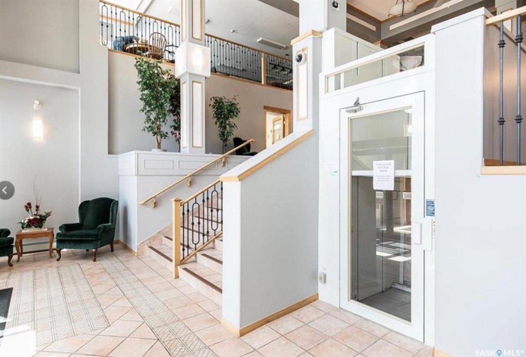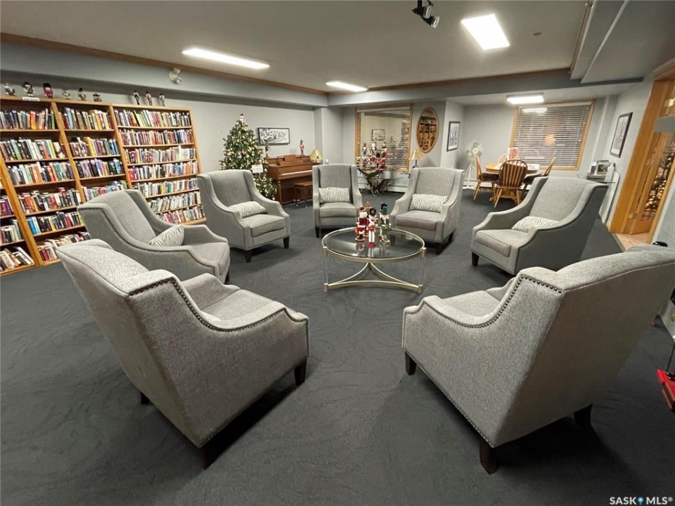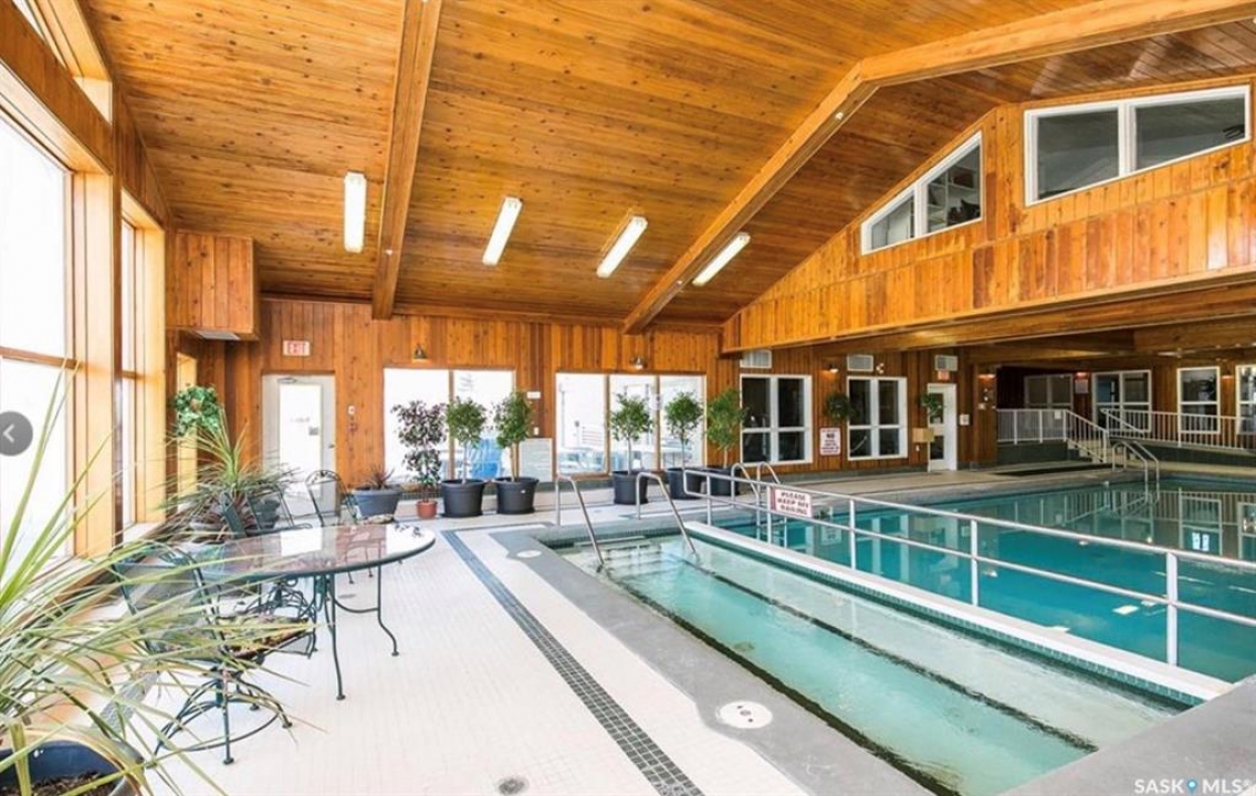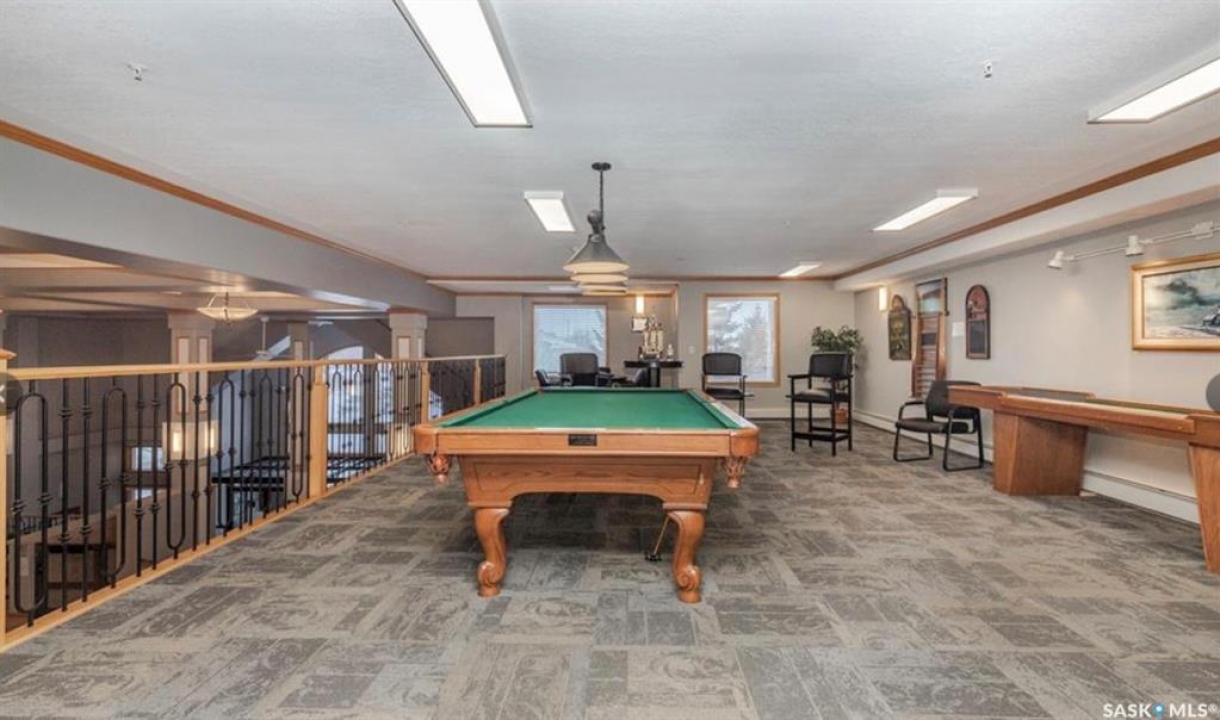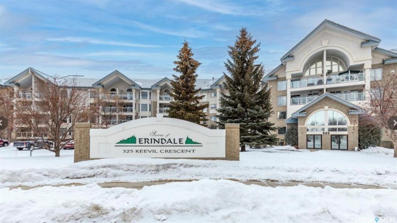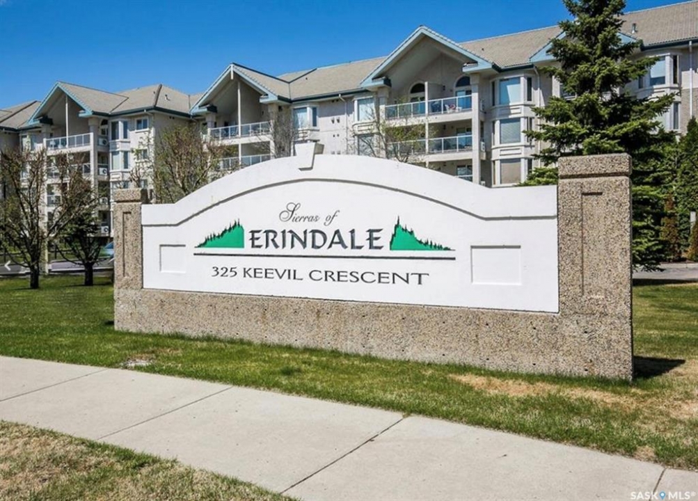 The Sierras of Erindale is a senior condominium complex located in Erindale ideally located close to grocery stores and bussing. This complex is superior to many others in Saskatoon for the amenities that it offers, from a billiard area to a well appointed library, dining banquet facilities, craft room, wood working shop and an indoor swimming pool, not to mention the indoor theatre room. On site gym, guest suites and a car wash. As you enter the grand front foyer, your eyes are drawn to the beautiful oak staircase and above, to the terrace area. Unit 340 is a one bedroom and the den has a glass door. The bedroom is connected to a three-piece bath with dual closets on either side of the entrance to the bath area. The well lit, white heritage cabinet kitchen includes a fridge, stove, and dishwasher. The dining room and living room face south, offering lots of sunlight. From the living room, a door and a phantom screen lead you to a very spacious deck. In addition, there is a laundry room / storage room with full-size washer and dryer. Included with the unit is one parking spot number C 40. This is a very safe complex with great community involvement. One does not even have to go outside to throw out your garbage. Retirement is about connecting with people, a great opportunity at the Sierras of Erindale.