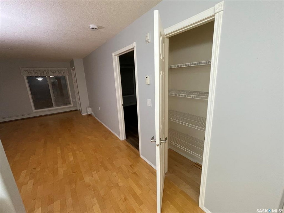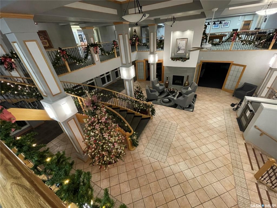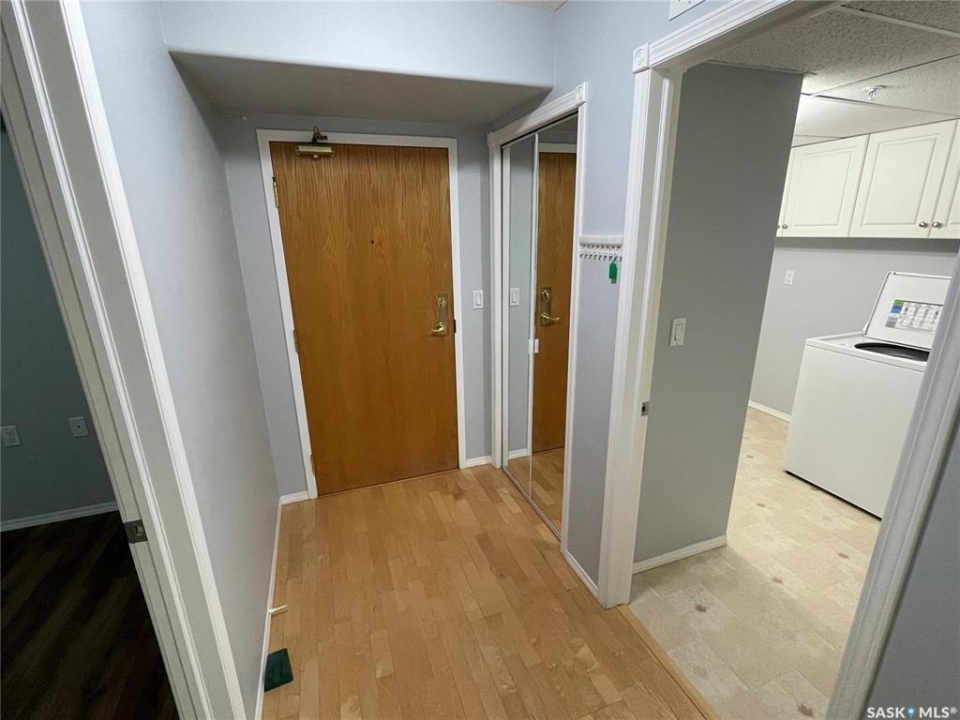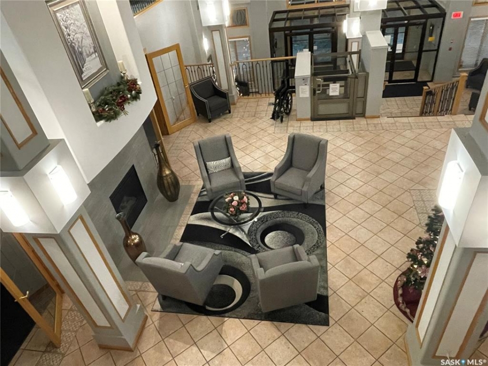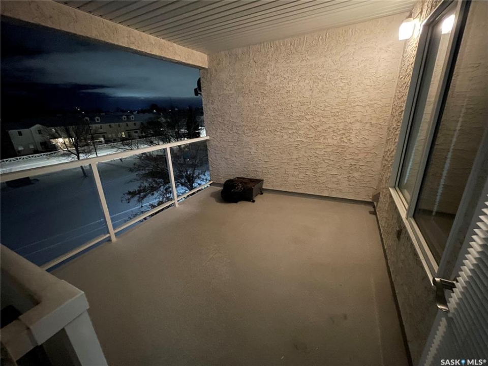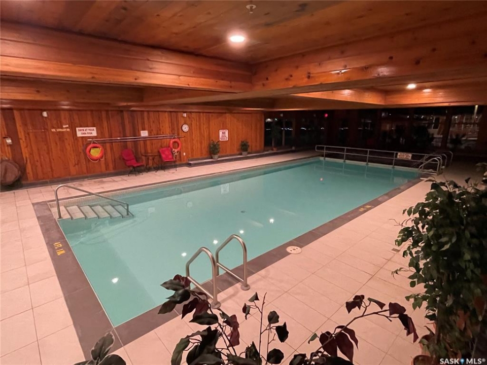 The Sierras of Erindale is a senior condominium complex located in Erindale ideally located close to grocery stores and bussing. This complex is superior to many others in Saskatoon for the amenities that it offers, from a billiard area to a well appointed library, dining banquet facilities, craft room, wood working shop and an indoor swimming pool, not to mention the indoor theatre room. On site gym, guest suites and a car wash. As you enter the grand front foyer, your eyes are drawn to the beautiful oak staircase and above, to the terrace area. Unit 340 is a one bedroom and the den has a glass door. The bedroom is connected to a three-piece bath with dual closets on either side of the entrance to the bath area. The well lit, white heritage cabinet kitchen includes a fridge, stove, and dishwasher. The dining room and living room face south, offering lots of sunlight. From the living room, a door and a phantom screen lead you to a very spacious deck. In addition, there is a laundry room / storage room with full-size washer and dryer. Included with the unit is one parking spot number C 40. This is a very safe complex with great community involvement. One does not even have to go outside to throw out your garbage. Retirement is about connecting with people, a great opportunity at the Sierras of Erindale.