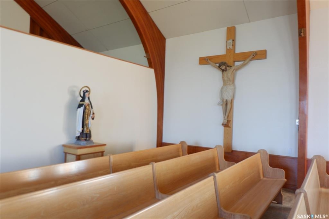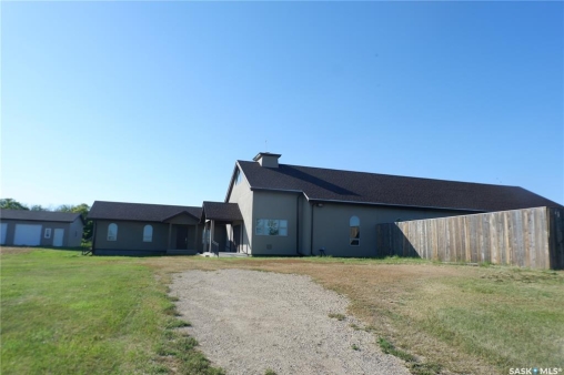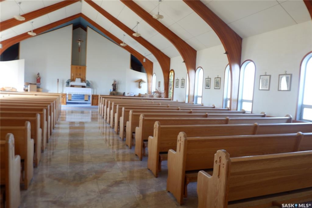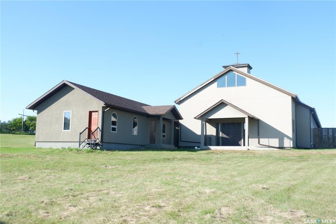 A beacon of faith and community is now available. This very unique property could be yours! This beloved Catholic Church has served as a spiritual home for gerations. This is a fully functionable Catholic Church with 2 attached residences. The Catholic Church was moved to the present location and two adjoining suites were added later. A triple detached garage was constructed and a Manufactured home was moved onto the property. Heating to the Church and residense is Natural Gas Hot water boiler in-floor heat. There is also a large Generator connected to the property. The Church is stunning and you can feel the comfort when you enter through the rounded Custom doors. There is plenty of room for a large gathering with 30 large pews. A full altar and choir area is at the front. There is lots of storage behind the altar and in the back utility room. The front has a den to the one side and access to the living quarters to the left. There is a small loft for storage. The living quarters cons1ist of a 1-bedroom suite with an l-shaped living/dining/kitchen complete with laundry. The second suite has several small room, a litkcen and a large bedroom. Each suite has a full bathroom and there is a bathroom in the entryway to the living areas. The triple detached garage has 2 overhead doors. The manufactored home was added later. It is open design concept, 2 bedrooms, bathroom and laundry. All the buildings are in excelent condition. The land is 60 acres of organic hay. This convenient location is directly on highway #2, 35 kilometers south of Moose Jaw. The owner would love to see a Catholic group continue with the Church in this location. Come check it out today.