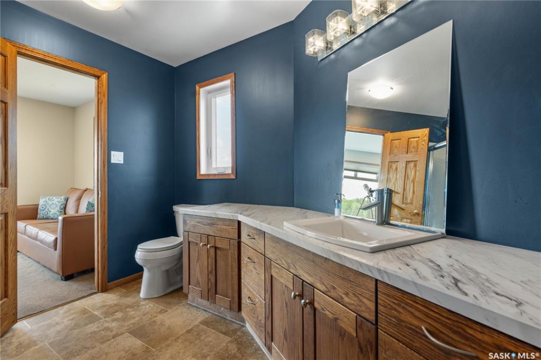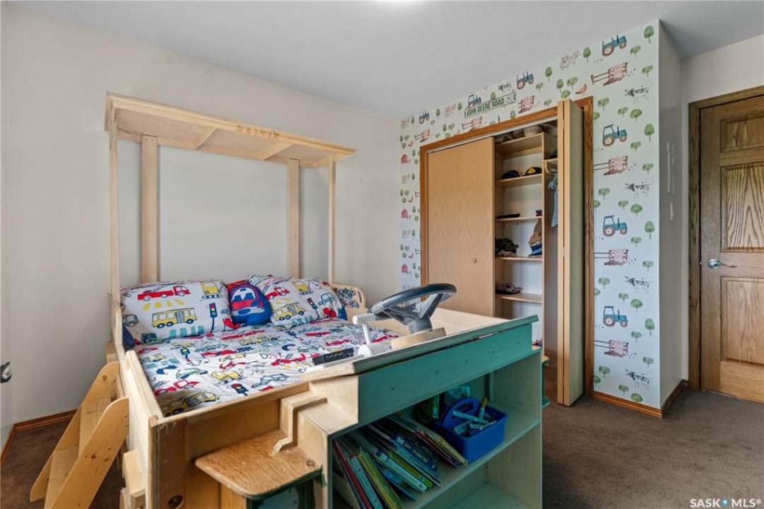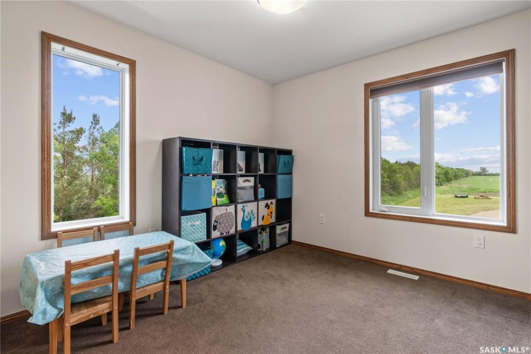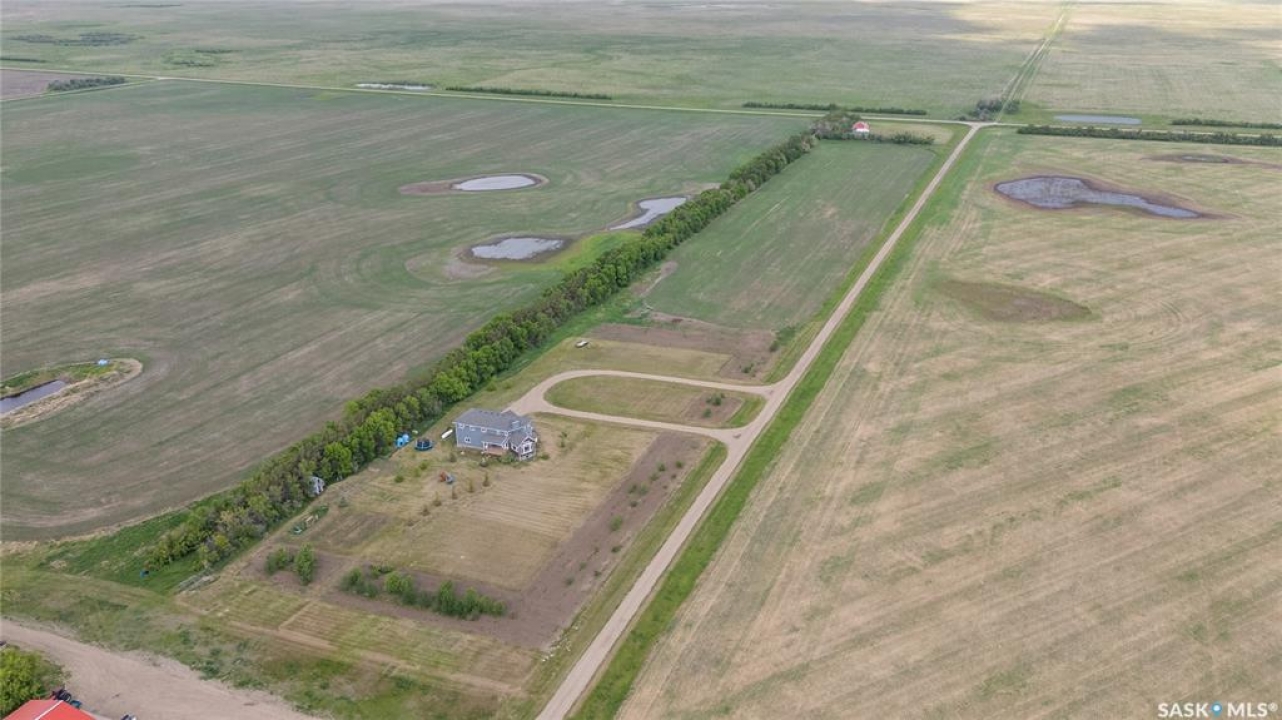 Welcome to your dream acreage! This gorgeous property offers 19.94 acres of meticulously maintained land. Whether you're looking for space, privacy, or a blend of agricultural and residential potential, this has it all. Step into the large, tiled front entry and feel right at home. Main floor showcases a spacious living room with massive windows and a striking stone fireplace, a formal dining area with rich hardwood floors, and a truly impressive kitchen. Designed for entertaining and family living, the kitchen features a large island with a second sink, stainless steel appliances, wall oven, tile backsplash, and abundant cabinetry. A convenient 2-piece bathroom also on the main level. Upstairs, double doors lead into the primary bedroom with a 3-piece ensuite featuring a stand-up shower, lots of counter space, and ample storage. You'll also find 5 more bedrooms, a 4-piece bathroom, a bonus room, a dedicated office, and laundry—all thoughtfully placed on the upper floor for comfort and functionality. The finished basement offers even more living space with a cozy family room, a recreation room currently used as a home gym, an additional 3-piece bathroom, utility room, 9 ft ceilings throughout and luxurious in-floor heating. The heated, insulated double attached garage also features in-floor heat—ideal for year-round use. There are two furnaces for the upstairs and main floor separately. A reverse osmosis system is included for the house tap. Iron filter/water softener system is in use. Property is professionally landscaped and offers an abundance of space for outdoor storage, gardening, or future development. Majority of open acres are currently rented to a local farmer. Beautifully treed backyard with the property line that extends beyond the trees. Bus comes to the front door to the wonderful K-12 school in Imperial! Land is located across from crown land/national wildlife refuge! If thinking of moving the home, sellers have the costs for that so please inquire.