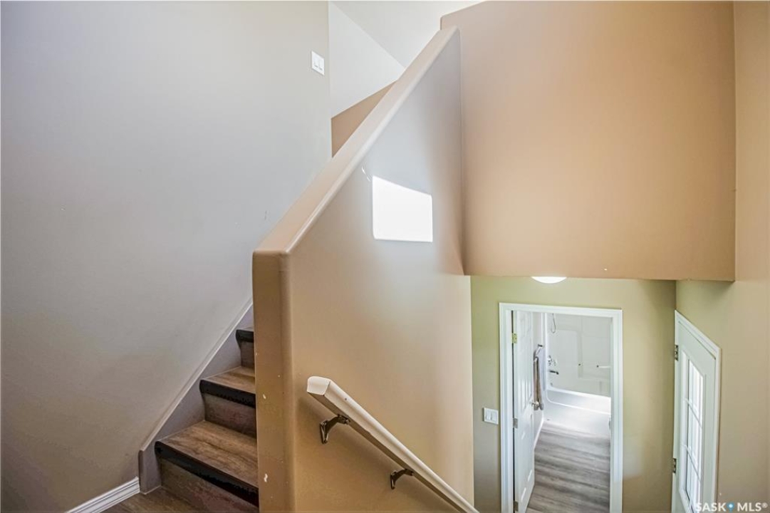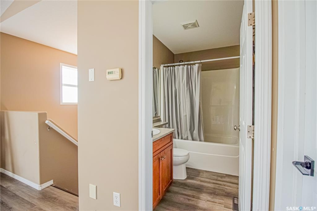 Welcome to this newly painted two-storey townhouse located in the heart of Willowgrove. Offering 1,044 sq. ft., this well-designed home features 2 bedrooms on separate levels for added privacy, 2 full bathrooms, and a single attached garage with direct entry. The main floor includes a spacious primary bedroom with easy access to a 4-piece bathroom and the attached garage. Upstairs, the bright and open living area is enhanced by vaulted ceilings and large windows that bring in plenty of natural light. The kitchen is equipped with maple cabinets, all appliances, and durable SPC flooring throughout. The second level also offers a generous bedroom and a full 4-piece bathroom. The basement is open for future development, allowing you to customize the space to your needs. Additional highlights include central air conditioning and a natural gas BBQ hookup. Conveniently located near schools, parks, shopping, and bus routes—this home offers comfort, functionality, and a great lifestyle in a desirable Neighbourhood