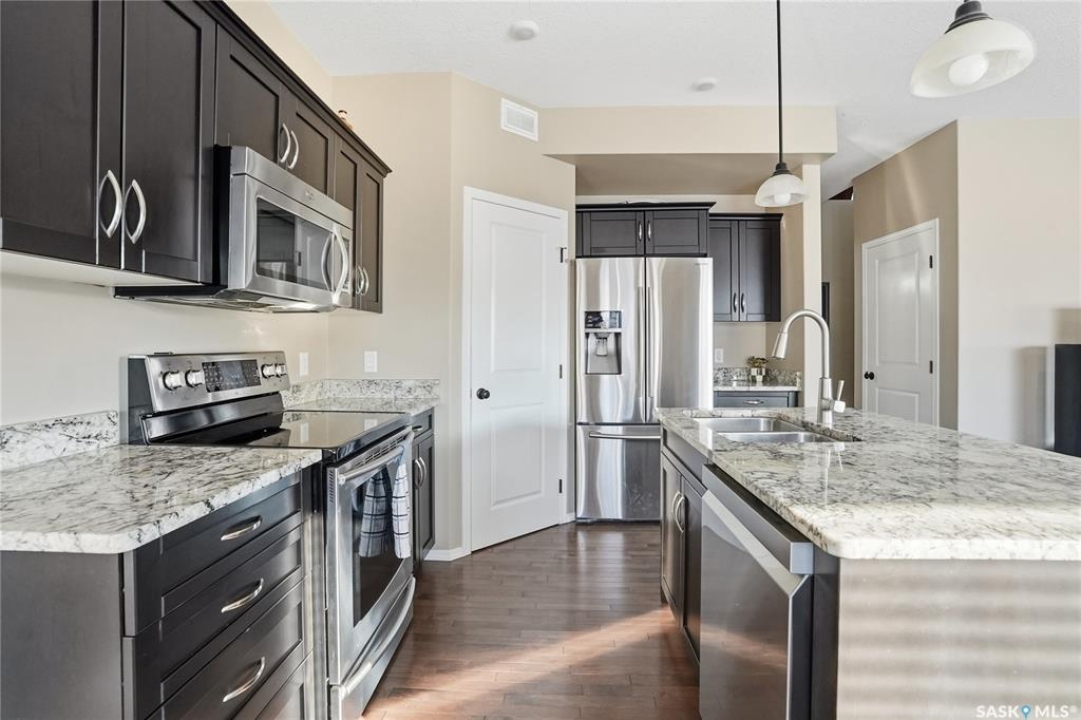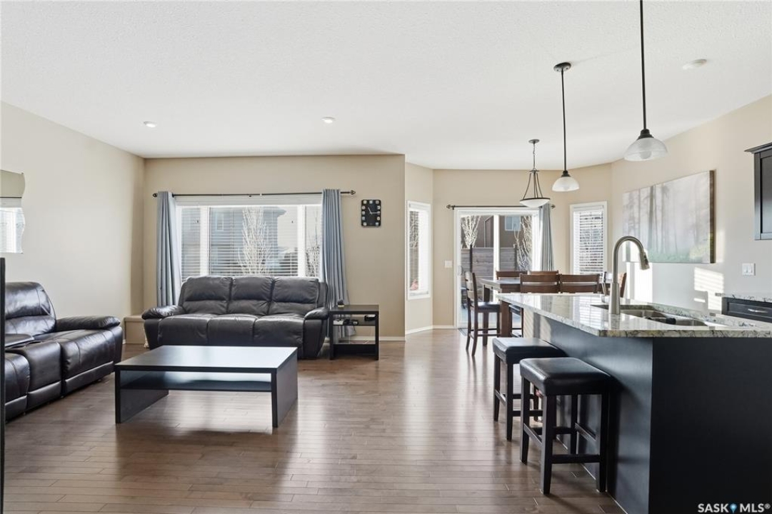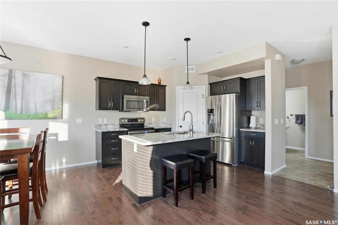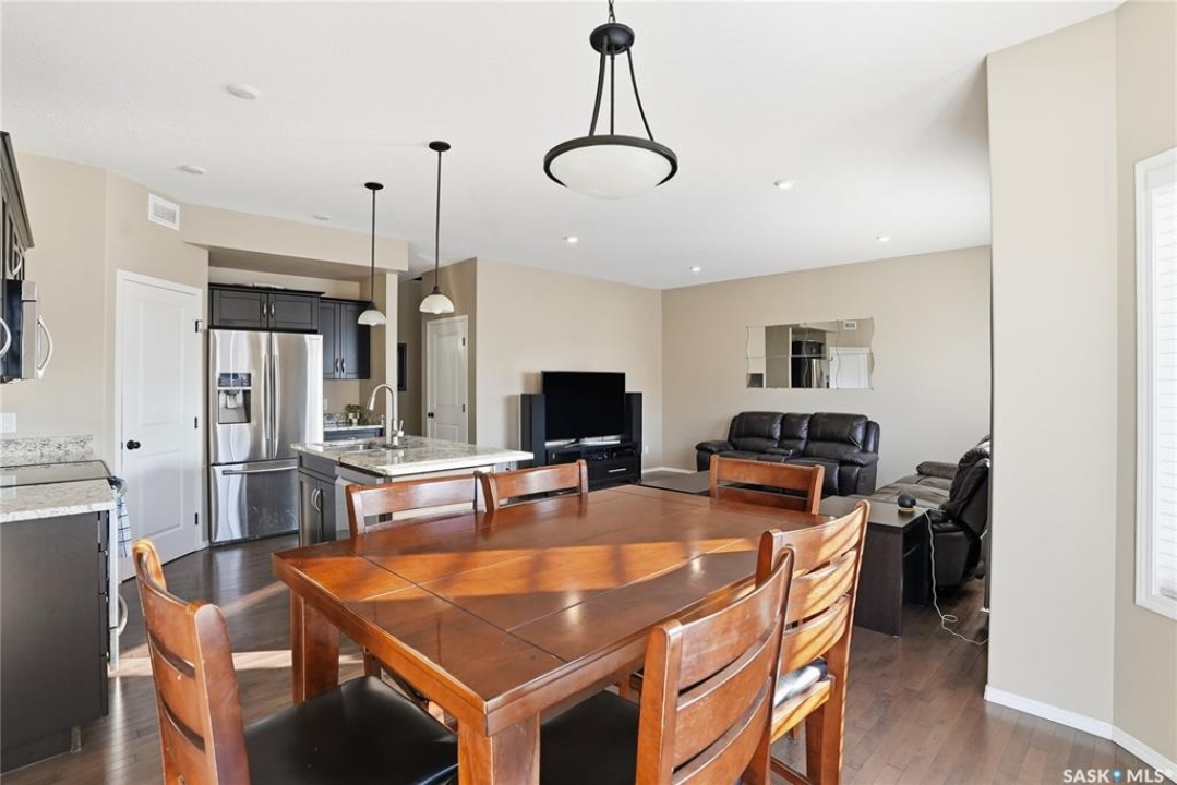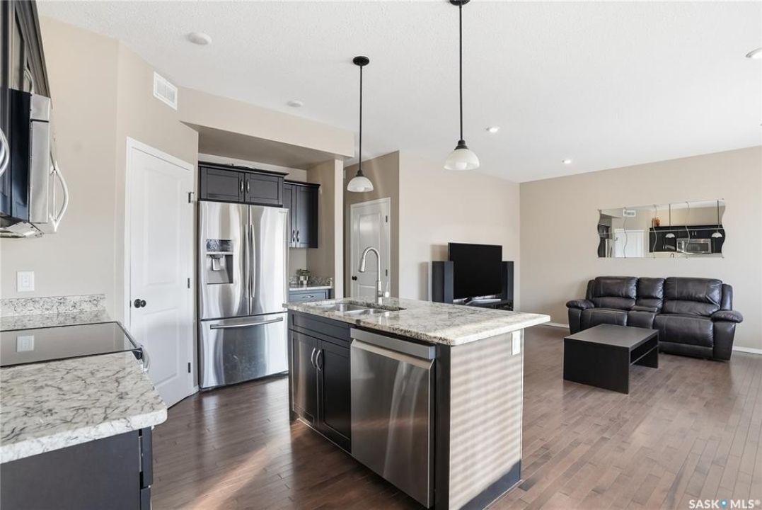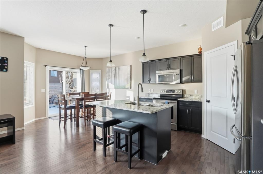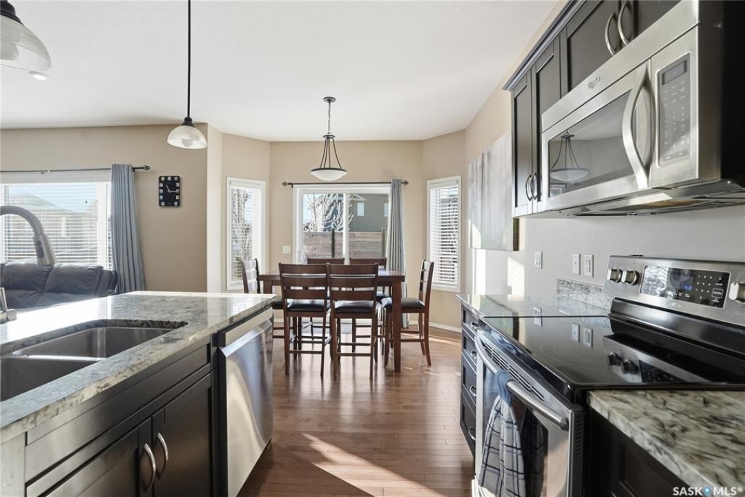 Welcome to this beautiful home tucked away on a quiet cul-de-sac in Hampton Village. The main level offers an inviting open-concept layout highlighted by stunning hardwood floors, 9-ft ceilings, and a triple attached garage. The kitchen is equipped with granite countertops, pantry, pot lighting, an island, a double stainless-steel sink, and matching stainless-steel OTR microwave and dishwasher. The spacious living and dining areas are filled with natural light, complemented by a large picture window in the living room. Patio doors off the dining area provide access to the deck. One of the standout features of this home is the bright bonus room over the garage, showcasing plenty of windows. Additional conveniences include main-floor laundry, a walk-in closet and ensuite off the primary bedroom, and granite vanity tops throughout. Home comes complete with central air!