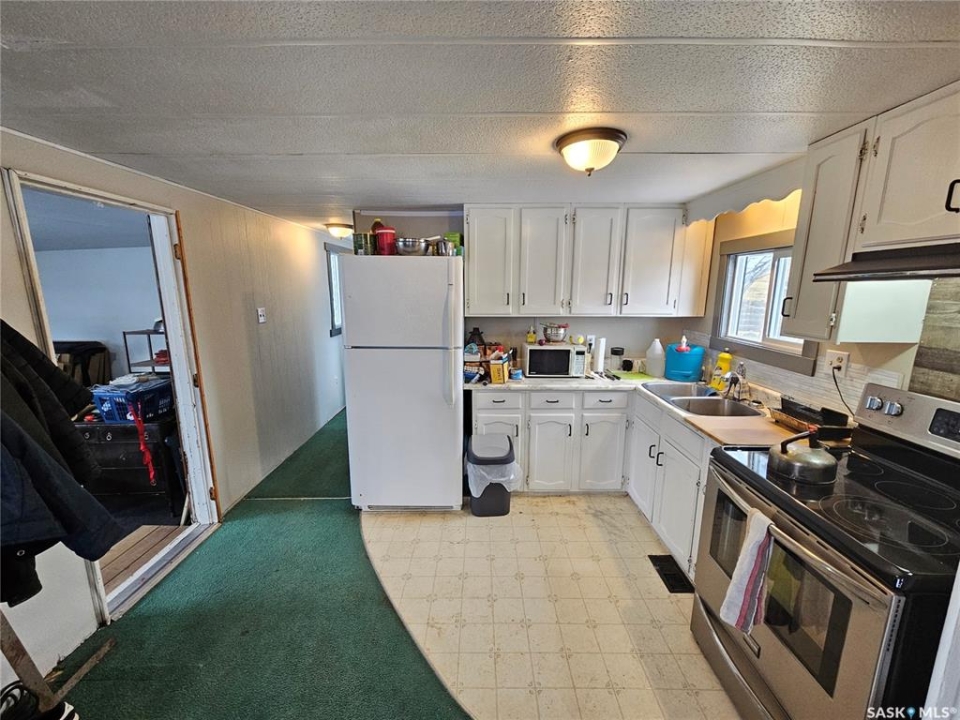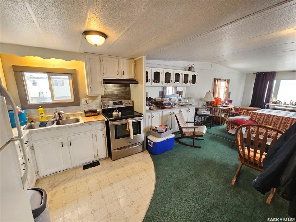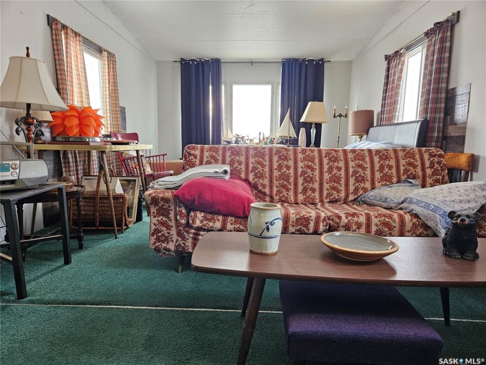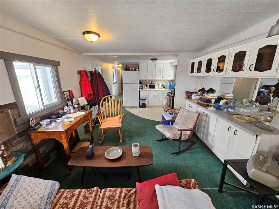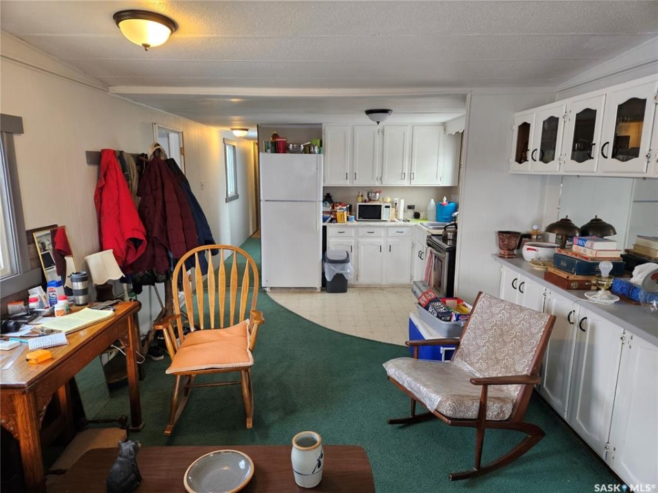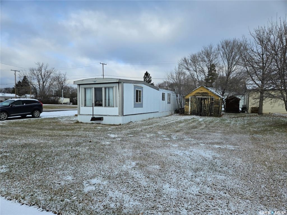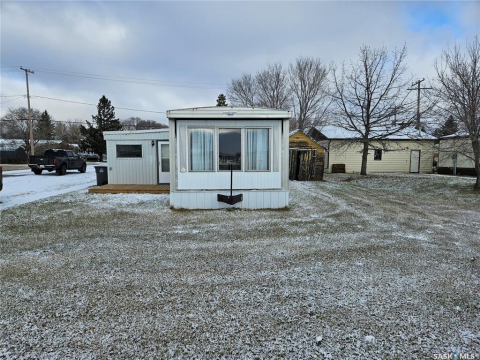 Affordable living in the heart of Arcola! This mobile home sits on a corner lot and features a bright, open-concept kitchen, dining, and living area. A large mudroom addition and convenient side entrance provide extra space and functionality. Home has a durable metal roof and updated windows for improved efficiency and long-term peace of mind. The home offers a comfortable primary bedroom, a spacious second bedroom, a 4-piece bathroom, and a handy hallway laundry nook. Whether you're looking for an affordable place to live, housing for an employee, or a low-maintenance rental property, this home is an excellent opportunity.