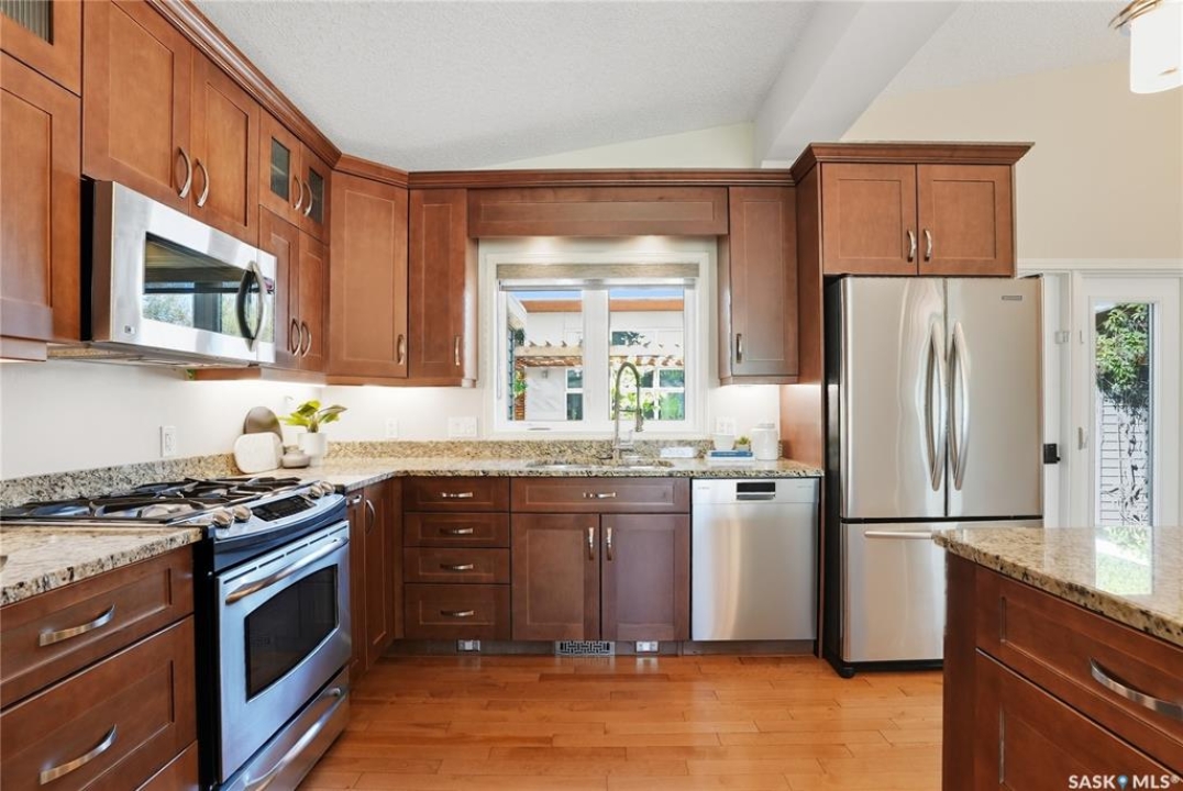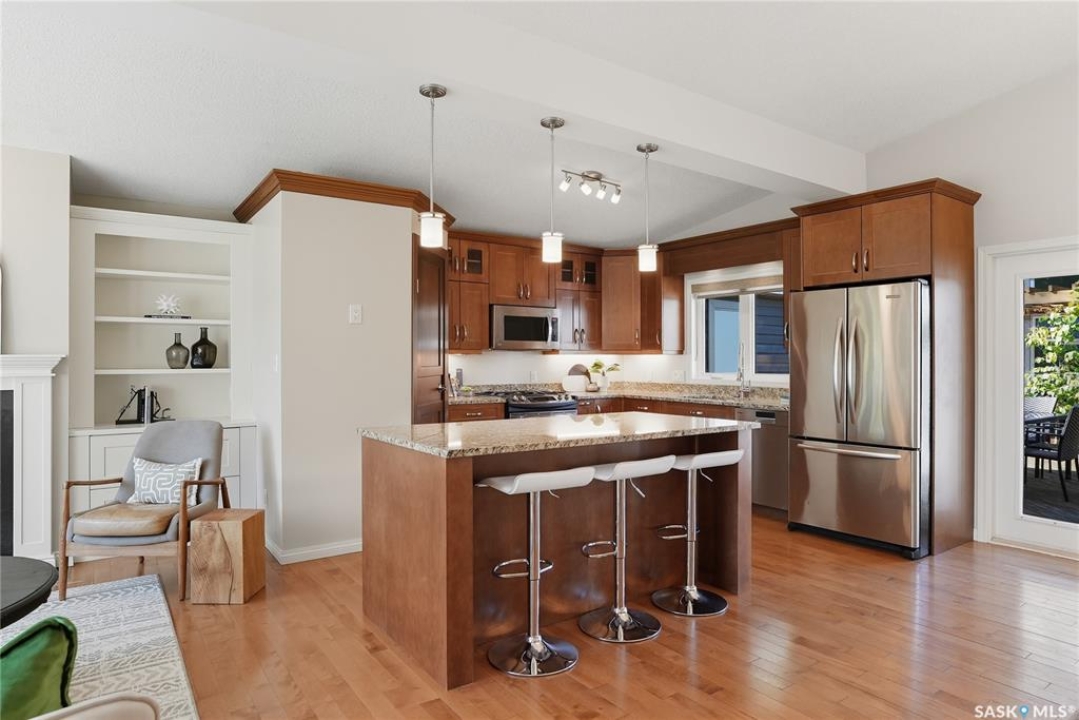Welcome to Greystone Heights! This fully developed 3-bedroom, 2-bathroom home has been professionally renovated inside and out, offering a perfect blend of style, comfort, and function. Every detail has been thoughtfully upgraded, creating a move-in ready property in one of Saskatoon's most desirable neighbourhoods. Step inside to discover modern finishes, a bright open layout, and spaces designed for both family living and entertaining. The updates extend beyond the walls—over $200,000 has been invested in the yard and exterior, including a beautifully designed outdoor office, stone paver walkways, a spacious deck, patio, and pergola. Evening ambiance is elevated with accent lighting throughout the entire yard, making this an outdoor retreat you'll enjoy year-round. Located just minutes from Greystone Heights School, École St. Matthew, and Evan Hardy Collegiate, this home is perfectly situated for families seeking both convenience and quality education options. This is more than an updated home—it's a lifestyle upgrade. Don't miss your opportunity to own one of Greystone's finest.