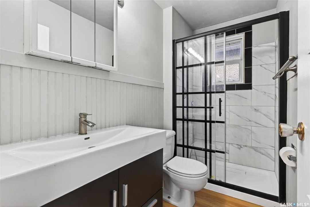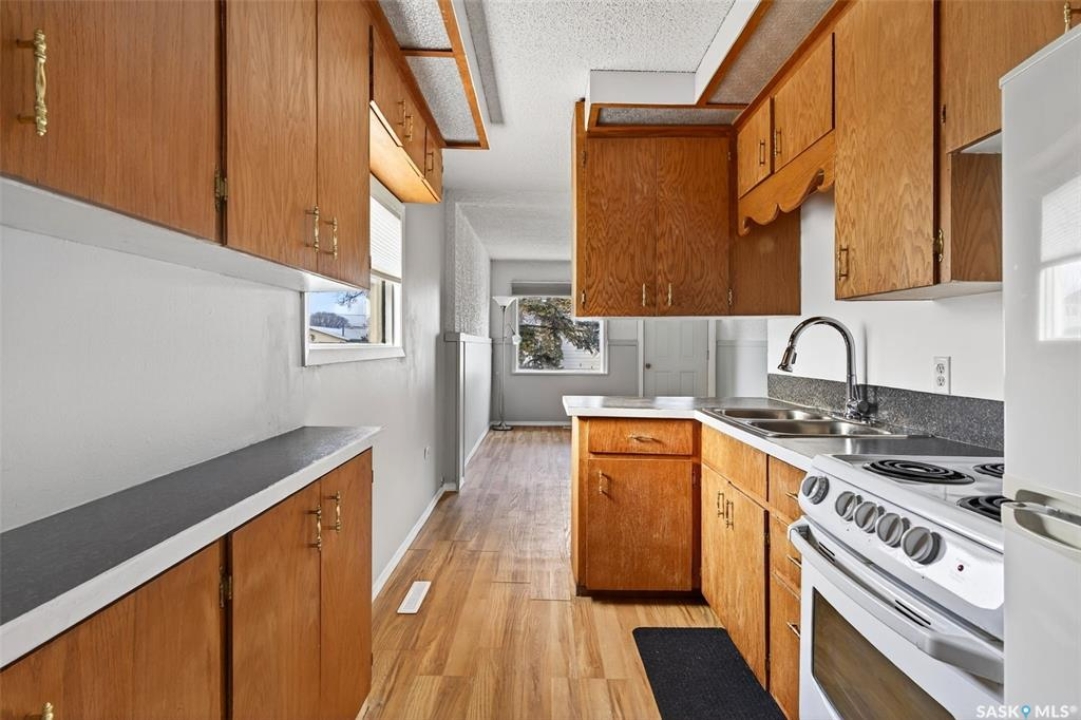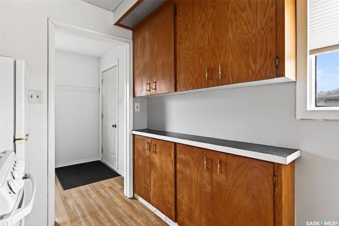 Nicely updated bungalow in Regina's Churchill Downs neighbourhood that would make a great first time home or investment property. Freshly painted, laminate flooring throughout main, renovated bathroom. Basement has great ceiling height, has been reinforced and is open for your development. Good sized corner lot with a parking pad and great space for future garage. Sewer line replaced in 2021, sump pump and back flow valve, shingles in 2017.