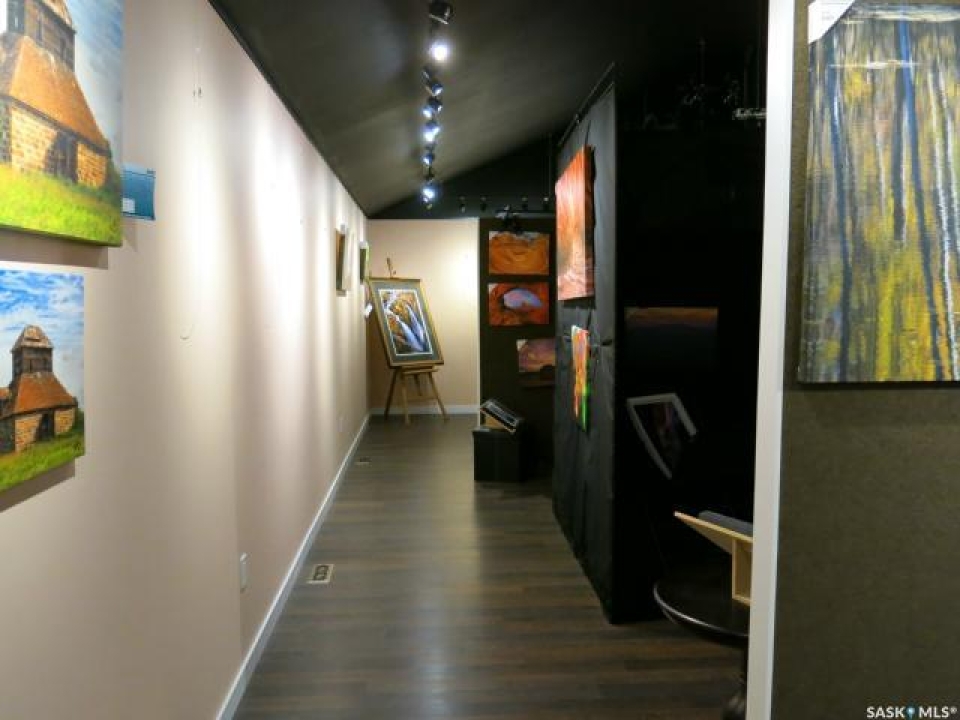 This incredible property is perfect for a small business owner! Well-built and creatively designed! It's currently an art gallery/cafe with living quarters in the basement and features a 24x48 garage with the back half used as a workshop (insulated) and 10x36 storage shed. The front of the building has wheelchair access and a beautiful covered porch. The main level features vaulted ceilings and an open concept and provides you with a kitchen, two bathrooms (one of which is wheelchair accessible), and a large open area that can be used as you please. The basement is where you'll find the beautiful living quarters that provides a spacious kitchen with oak cabinets, travertine countertops, and stainless steel appliances. You'll also find a large living room, 4pc bathroom, spacious master bedroom, an additional bedroom, and office. BONUSES INCLUDE: HE furnace, water heater, water softener, 200 amp, central vac, and central air! This all comes located on 1.09 acres! This property has great highway visibility and endless possibilities!!