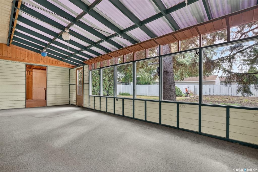 Welcome to this well-maintained and solidly built 1,117 sq ft bungalow located in the southwest area of Moose Jaw. This home offers comfort, functionality, and space for the whole family. The main level features 3 spacious bedrooms, and 1.5 bathrooms, making it ideal for a new or growing family. Large windows leave the living room bright and inviting living a feeling that flows seamlessly throughout. While the lower level boasts a large family room with a corner bar - perfect for entertaining or relaxing—along with a generous utility/laundry area that provides ample storage. The attached 16' x 32' garage offers convenience and plenty of room for parking and projects. Outside, you'll find a fully fenced, mature yard with a glass-enclosed patio area, a dedicated garden space, and additional parking at the back. This property combines practical living with outdoor enjoyment, making it an excellent choice for those seeking a family-friendly home in a desirable location.