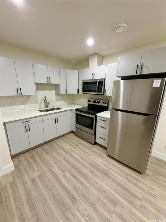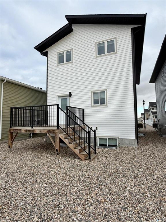 Welcome to 3214 Green Brook Road, a modern 5-bedroom, 4-bathroom home in The Towns offering fantastic space, style, and income potential with its regulation basement suite and separate side entry. Built in 2021 and spanning 1,640 sq ft, this bright and inviting two-storey features an open-concept main floor with large windows, vinyl plank flooring, LED pot lights, and a spacious living and dining area perfect for family living. The contemporary kitchen offers quartz countertops, a large island, tile backsplash, stainless steel appliances, and sleek grey cabinetry. A convenient 2-piece bath completes the main level. Upstairs you'll find three comfortable bedrooms, including a primary suite with a walk-in closet and a 4-piece ensuite with dual sinks, plus an additional 4-piece bath and dedicated second-floor laundry. The fully finished regulation suite provides excellent opportunity for extended family or revenue, complete with its own kitchen, living area, bedroom, 4-piece bath, laundry, and private side entrance. Mechanical includes a high-efficiency furnace, HRV, central air, sump pump, and two water heaters. The exterior offers low-maintenance landscaping with rock and artificial turf in the front, a back deck, and a double concrete parking pad with future garage potential. Located close to parks, schools, shopping, and all southeast Regina amenities, this move-in-ready home is ideal for homeowners or investors seeking modern design and built-in value.