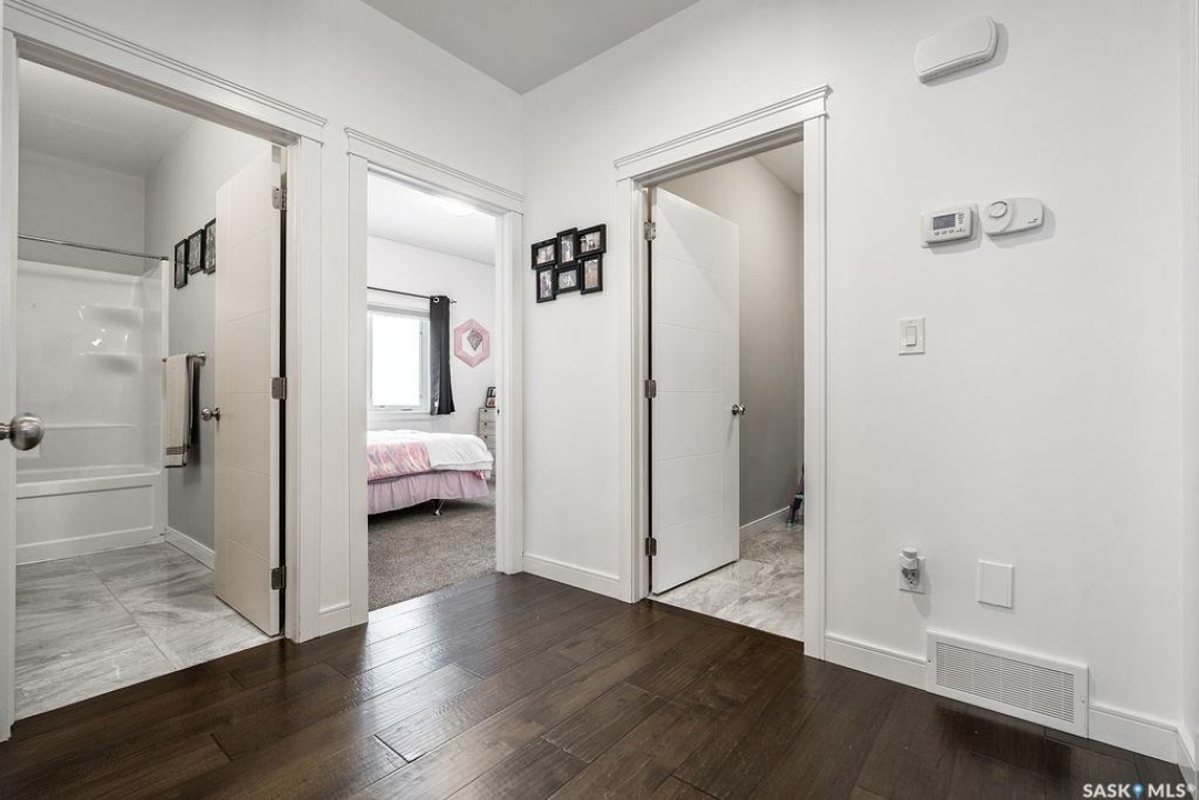 Welcome to 712 Maple Court, A spacious and thoughtfully designed modified bi-level located in one of Warman's most desirable and established neighbourhoods. Tucked away in a quiet cul-de-sac and just steps from the beautiful walking trails that weave throughout the community. This home offers the perfect blend of comfort, convenience, and lifestyle. Featuring 1684 sq ft of well-planned living space, this home boasts 5 generous bedrooms, each with great-sized closets, and 3 full bathrooms, providing plenty of room for family and guests. The oversized floor plan creates an open, airy feel, highlighted by a functional main floor laundry room complete with a sink. The kitchen is equipped with an induction stove top and offers excellent flow for cooking and entertaining. Outside, the property continues to impress. Situated on a lot of over 8,000 sq ft, the fully fenced backyard is designed for relaxation, play, and practicality—featuring garden boxes, a shed, concrete pads, and a dedicated dog run. Car enthusiasts or families needing storage will appreciate the triple car driveway and a 24 × 24 garage, offering ample room for vehicles, tools, and toys. 712 Maple Court is the full package—space, location, and thoughtful features inside and out. A wonderful opportunity to own a beautiful home in a prime Warman location.