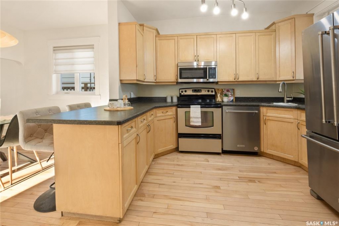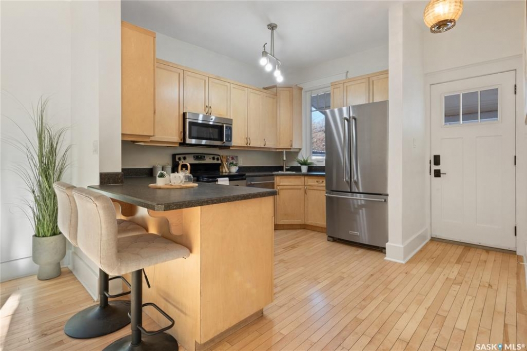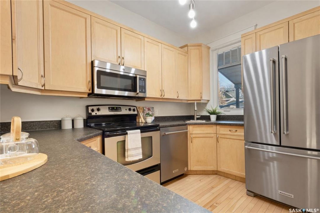 Introducing 700 5th Avenue North, a true City Park classic perched on the corner of King Street and 5th Avenue—a location so convenient it practically flexes. You're mere steps from City Hospital, Kinsmen Park, the riverbank, and all the coffee shops, patios, and conveniences of 2nd Avenue and downtown. If walkability had a mascot, it would live here. The home greets you with an inviting front porch, the kind of spot that makes you want to sip iced tea, read a book, or pretend you're keeping an eye on the neighbourhood (you absolutely are). Inside, you'll find charm paired with upgrades that actually matter—not just the “new throw pillows” kind. Think updated wiring and plumbing (pre-2007) and the big essentials: new windows, roof, and boiler in 2016. That's the unsexy but important stuff done. The interior features new hardwood floors (2023), Hunter Douglas blinds (2016), and a full refresh with new paint throughout (2025). The kitchen checks all the boxes with maple shaker cabinets, a new dishwasher (2023), and a brand new fridge (2025)—ready to display your groceries or your takeout containers, no judgment. A stylish 3-piece bathroom renovated in 2024 brings modern comfort to this character home, and there's a natural gas fireplace (currently disconnected) that's just waiting to be revived for future cozy nights or dramatic storytelling sessions. The yard has been freshly updated with new sod (2025)—a lush, green canvas ready for lawn chairs, picnics, or your dog's questionable life choices. Packed with charm, loaded with upgrades, and sitting in one of Saskatoon's most loved neighbourhoods, this City Park gem offers a lifestyle that's easy to fall for.