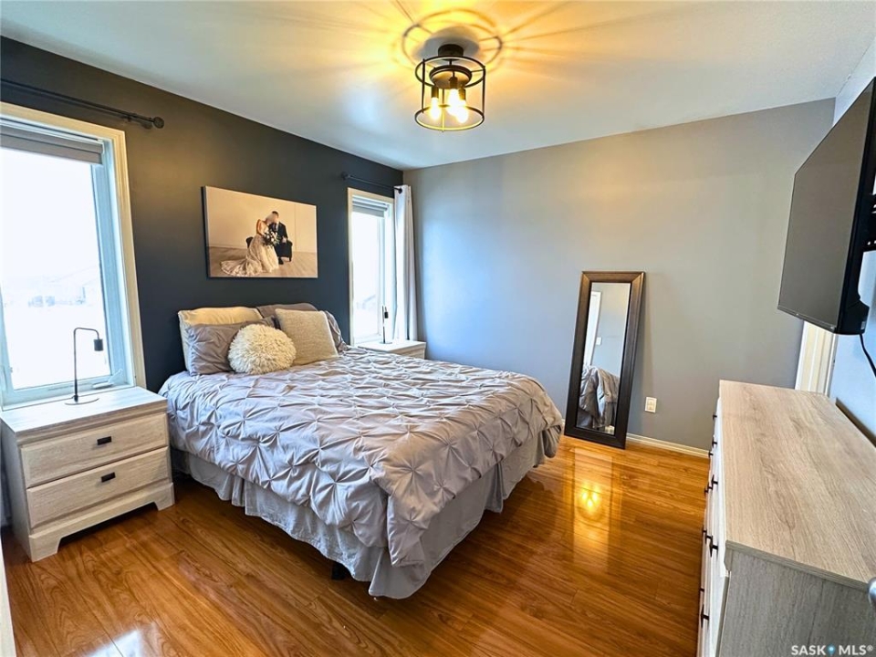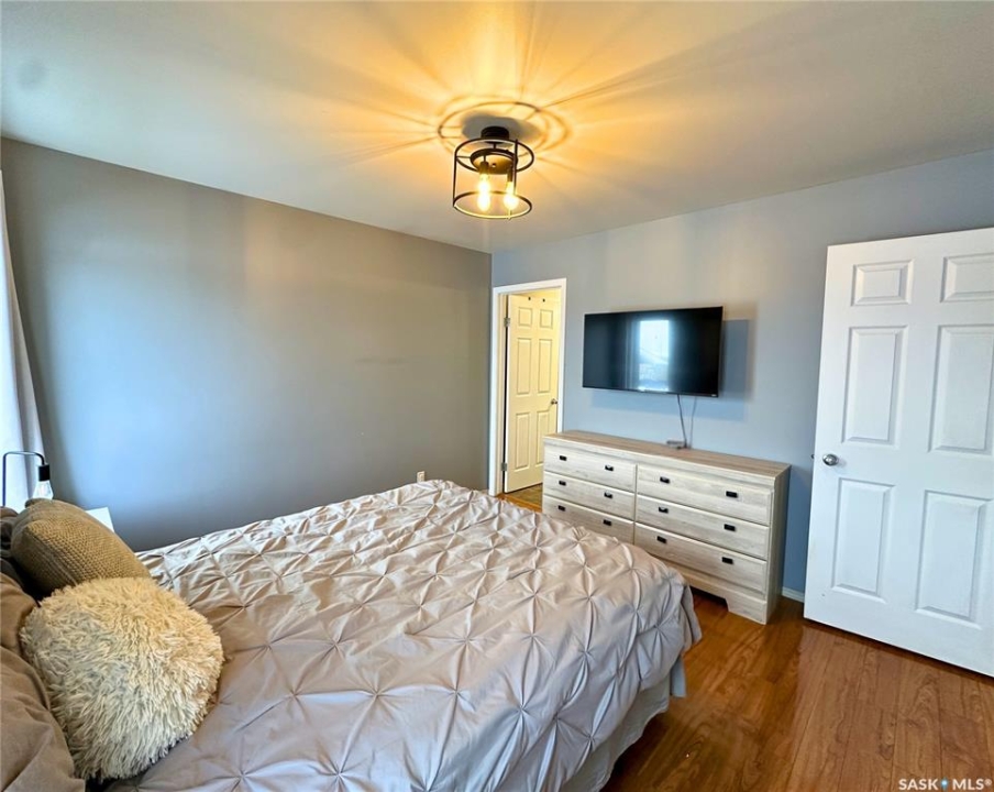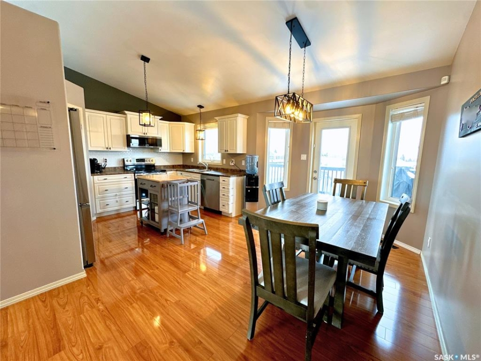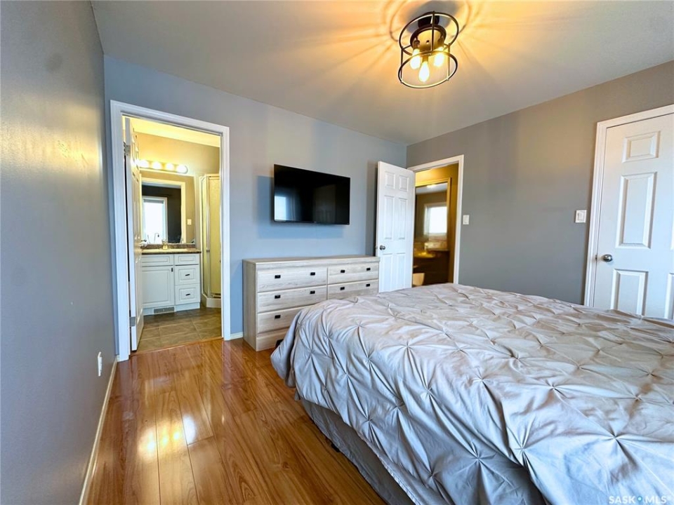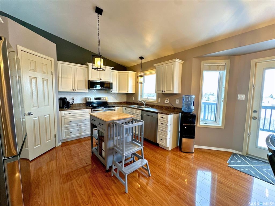 Welcome to a well-loved bi-level home in beautiful Birch Hills, designed with comfort, practicality, and family life in mind. Step into a spacious entryway that immediately sets the tone for how open and inviting this home feels. The main level features an open-concept living room and kitchen, fully refreshed and thoughtfully baby-proofed, making day-to-day life easier for families with little ones. There are three bedrooms on the main floor, including a primary bedroom with its own ensuite and a generous closet. The lower level is completely finished and adds even more space to grow. You'll find a large family room that's perfect for movie nights, a big bathroom, a storage/utility/laundry room, and a fourth bedroom. Off the main entry is direct access to the attached heated two-car garage, offering convenience and comfort all year long. This property sits on a fully fenced lot with no neighbors on either side, along with back-alley access and RV parking. It also includes central air conditioning, an air exchanger, and central vacuum. If you're looking for a home that balances affordability, space, and small-town charm, this one truly has everything a young family could hope for.