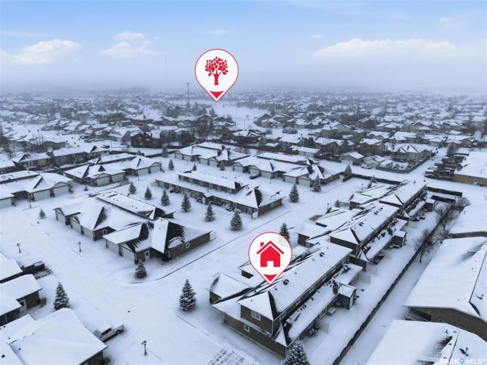Welcome to #31-100 Brooklyn Lane...a 45 unit complex in Warman called Diamond Place. This unit offers 1770 square feet on two levels. Main level has 9 foot ceilings and features a spacious living room with adjacent dining room & kitchen area complete with an island and all appliances included. Kitchen upgrades include cabinets to the ceiling, stainless steel appliances and granite countertops. The Primary bedroom is on the main floor and offers a good sized walk-in closet and 3 piece ensuite, plus there is a den area and a 2 piece bath laundry combo area. The 2nd level also features 9 foot ceilings and offers another bedroom plus a family room area and a full 4 piece bath. There is a 20 x 22 double attached garage with direct entry. Visitor parking is located immediately South of this unit and is perfect to park your RV to load and unload with a 48 hour time limit. The condo fees set at $600 per month include heat (slab on main plus high velocity air on 2nd floor) water, sewer, reserve fund, common insurance, snow removal, exterior maintenance and garbage. Call your agent today to view this Original Owner Property!