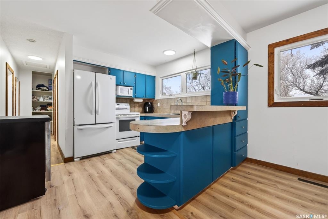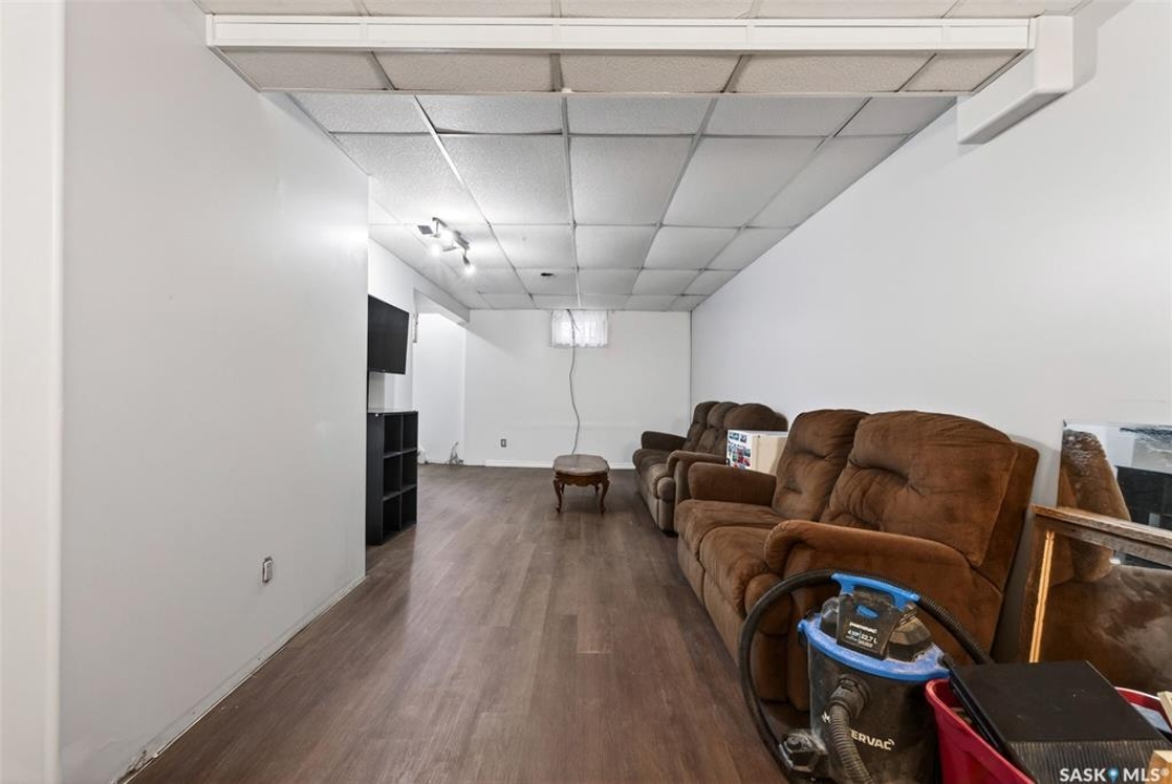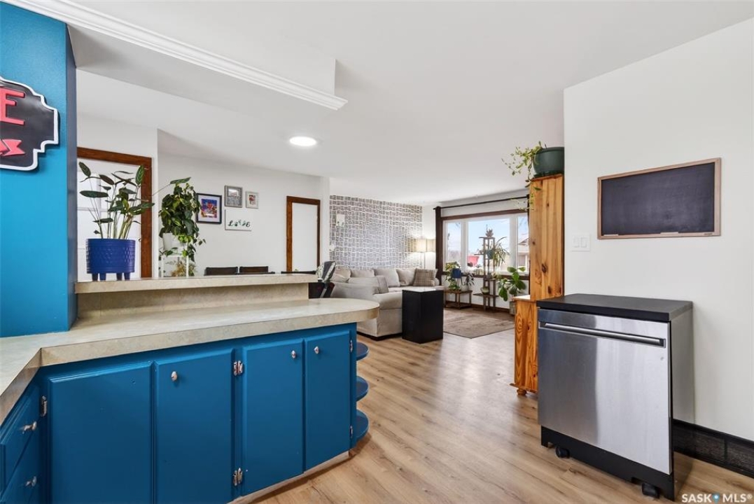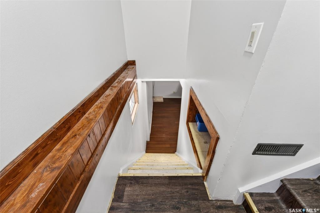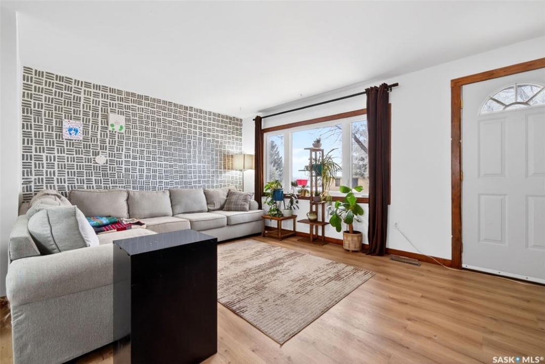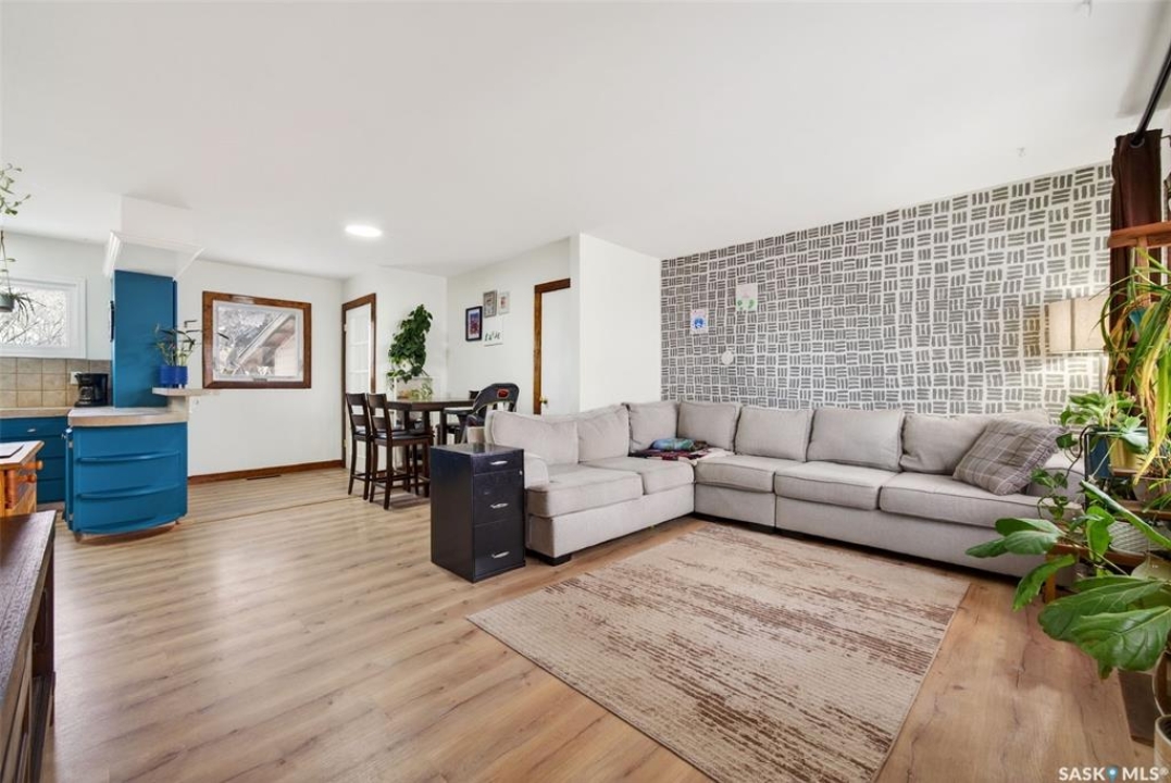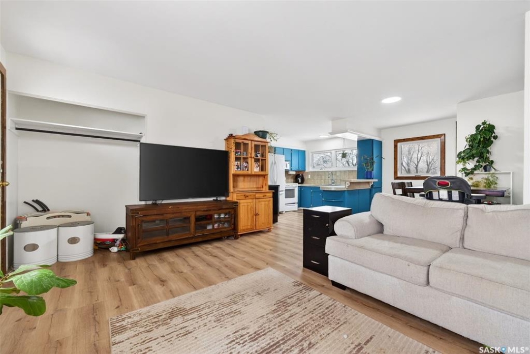 Tucked away in the quiet village of Drinkwater, this spacious 4-bedroom family home sits on four lots on the south side of the highway, with only a handful of neighbouring homes for a true small-community feel. Kids (and kids at heart) will love the nearby park and ball diamond, and there's loads of room on the property for a large garden, RVs, and all your toys. As you enter, you're greeted by a large enclosed, finished porch with plenty of space for coats, boots, and storage. Inside, the home offers an inviting open-concept kitchen, dining, and living room-perfect for everyday family life and entertaining. Down the hall are three good-sized bedrooms, a linen closet, and a 4-piece bath that has been updated with moisture/mold-resistant materials. The lower level features a cozy rec room, 4th bedroom, 3-piece bath, utility room with laundry, and extra storage. Major updates include newer shingles, PVC windows, new septic line, tank, and pump-out, an upgraded 200-amp electrical panel with underground service, two sump pumps, updated light fixtures, and PEX water lines. The high-efficient furnace and central A/C (approx. 1 year old), plus freshly graveled driveway, mean the big-ticket items are already taken care of-just add your finishing touches. Well-treed and sheltered, the yard feels like a private retreat. Drinkwater is just 20 minutes to Moose Jaw, 25 minutes to Regina, and 10 minutes to Belle Plaine and the Mosaic mine, with K-12 schooling within 15 minutes. A peaceful, friendly community-ideal for raising a family or enjoying a quiet retirement, where kids can roam, explore, and enjoy the outdoors!