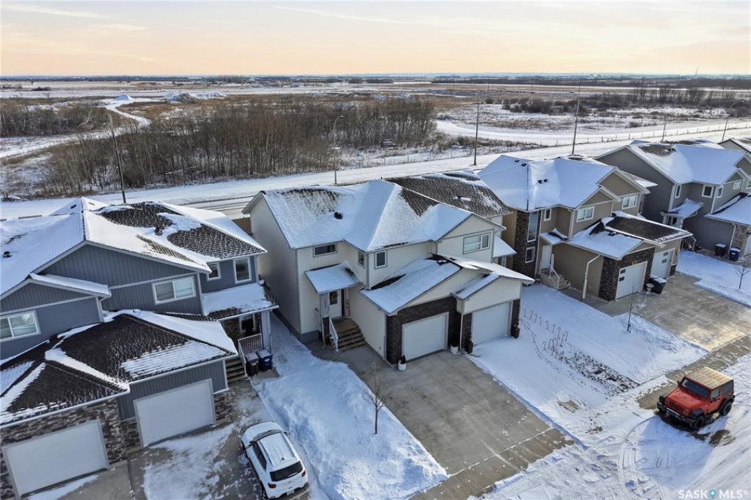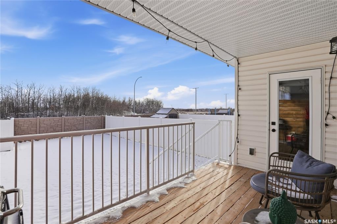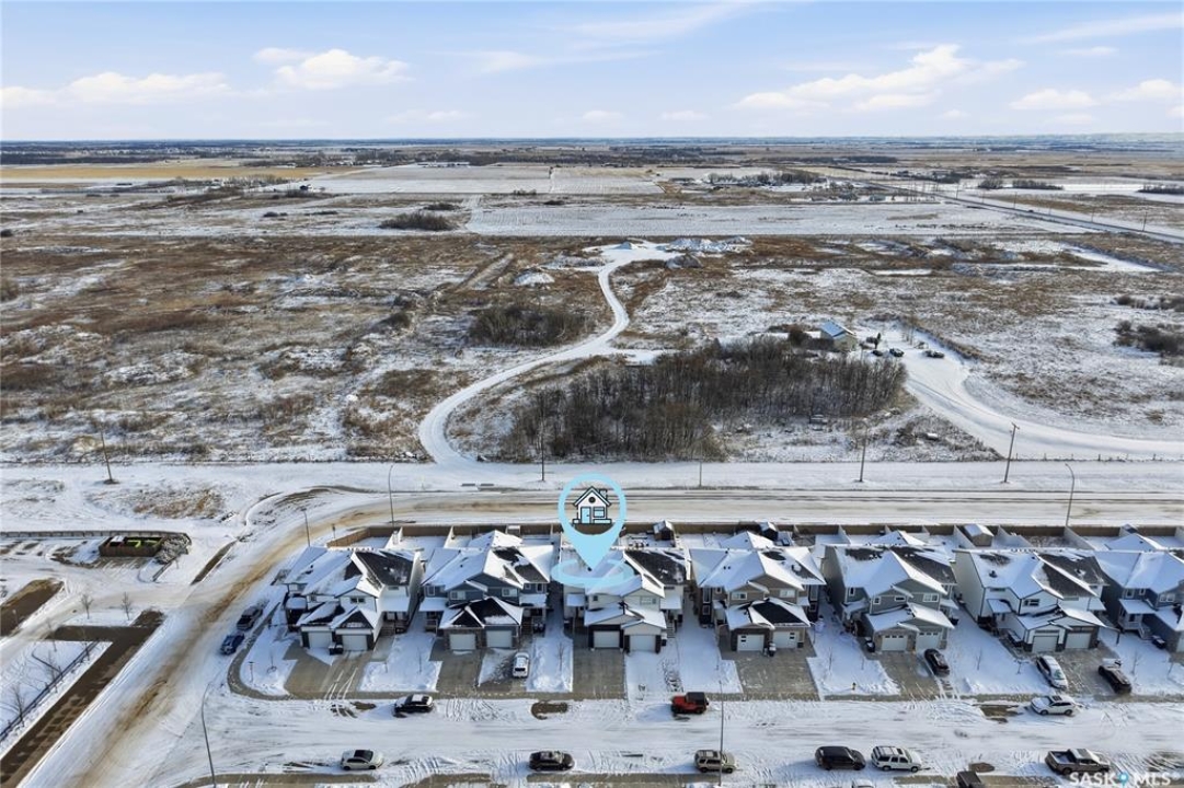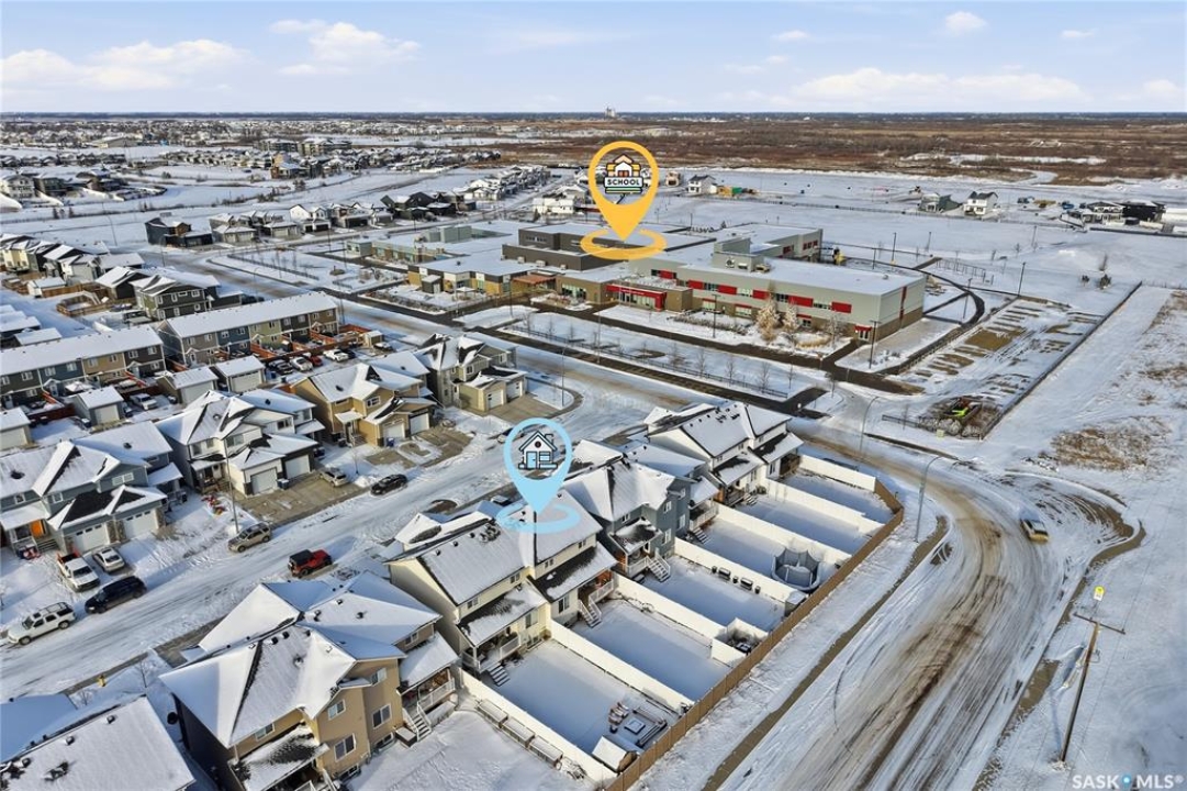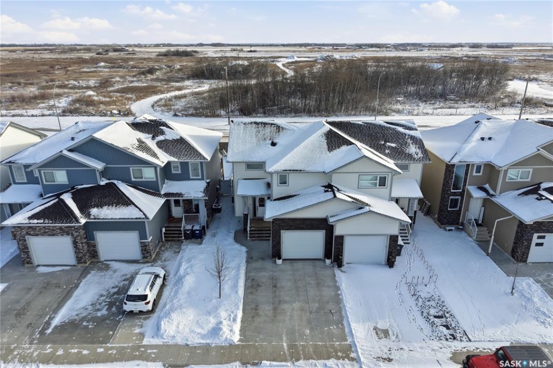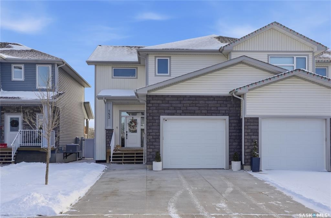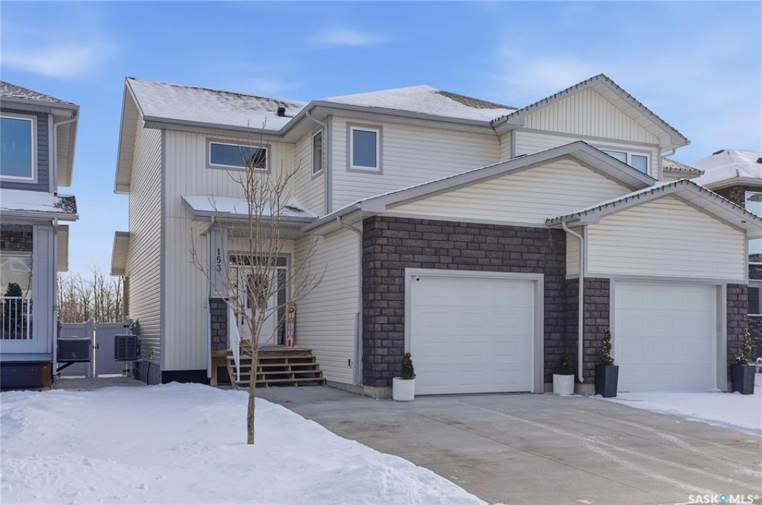 Welcome to a beautifully finished 3-bedroom, 3-bath half duplex located in the highly desirable Lake Vista neighbourhood of Martensville. This is the perfect family home in an incredible location — just half a block from the brand new school. Watch your children walk to school right from your front step. Inside, this smart-home-equipped property offers thoughtful upgrades and a modern layout. The centre of the home is an impressive kitchen featuring quartz countertops, quality cabinetry, stainless steel appliances, and a functional island ideal for both cooking and entertaining. The main floor provides bright living spaces, easy traffic flow, and access to the backyard. Upstairs, enjoy a dedicated laundry room, a large primary bedroom, and a spacious walk-in closet to keep your space clutter-free. The massive primary suite includes a luxurious 5-piece ensuite, complete with double vanity and separate shower—your own private retreat. Two additional bedrooms and a second full bathroom complete the upper level. Outside, the home offers a double-wide upgraded driveway and a beautifully landscaped yard. The rear yard backs greenspace, giving you peaceful views and added privacy—no neighbours staring directly into your backyard. Situated in one of Martensville's newest, most family-oriented communities, 153 Echo Lane delivers convenience, comfort, and long-term value. A unique chance to live steps from the school in a turnkey home—this one is a must-see.