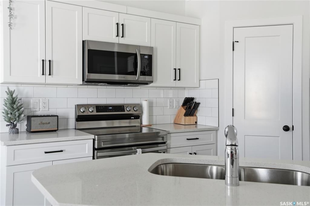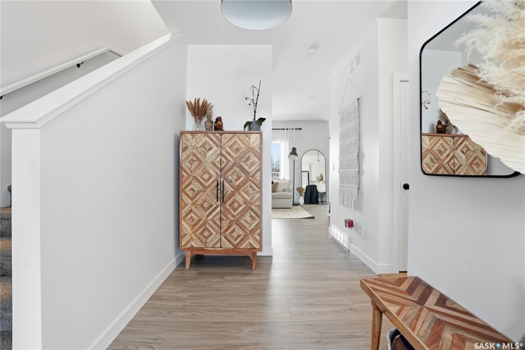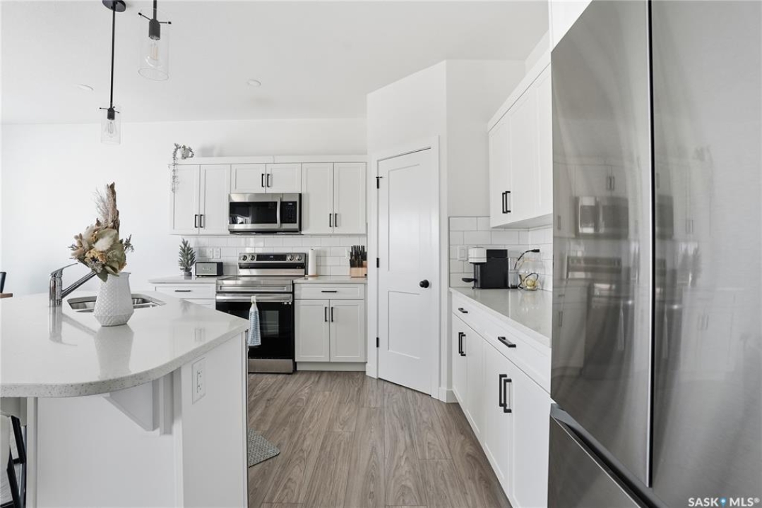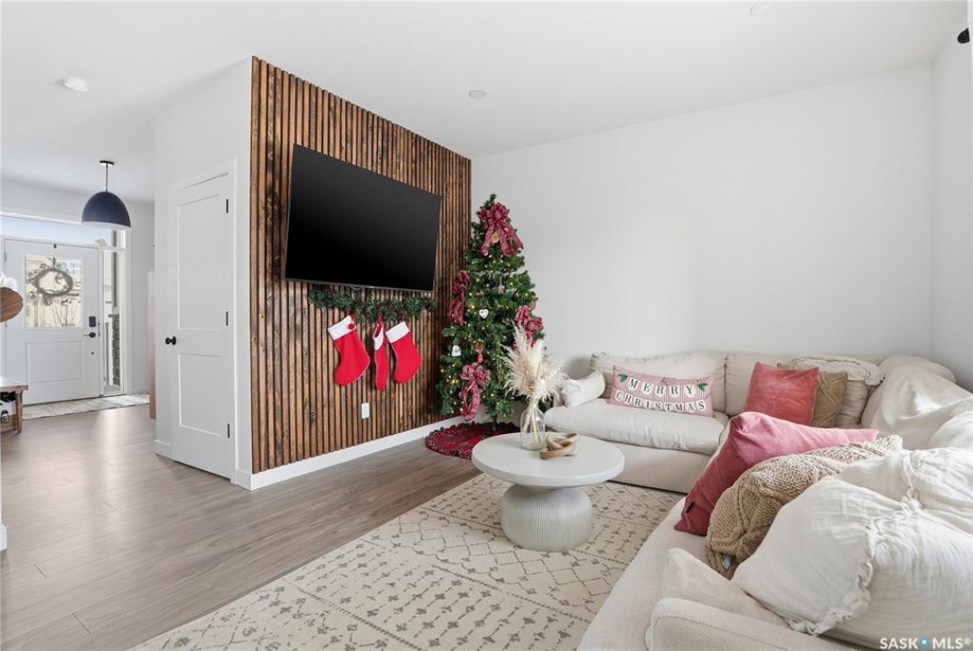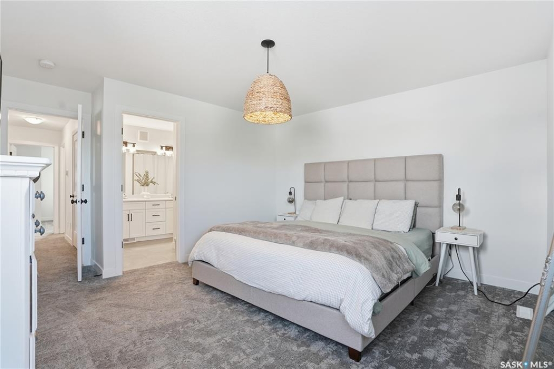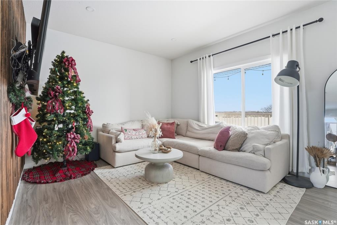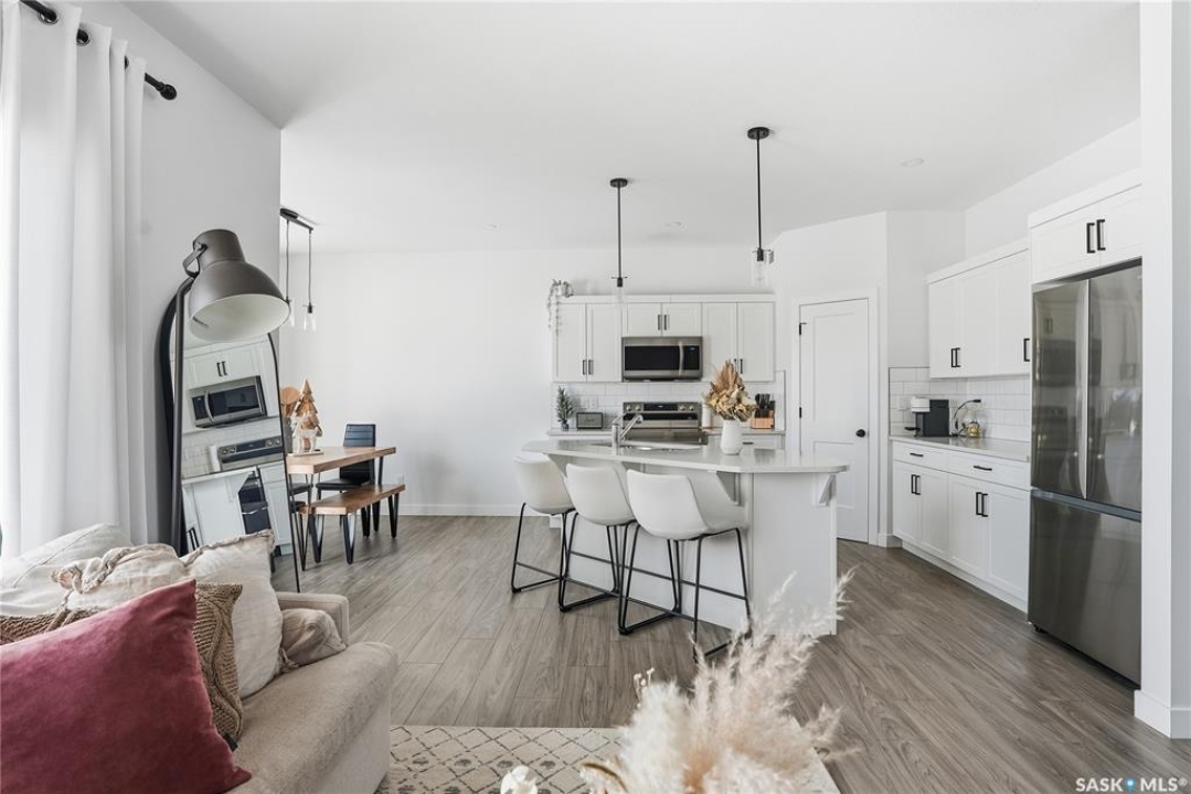 Welcome to a beautifully finished 3-bedroom, 3-bath half duplex located in the highly desirable Lake Vista neighbourhood of Martensville. This is the perfect family home in an incredible location — just half a block from the brand new school. Watch your children walk to school right from your front step. Inside, this smart-home-equipped property offers thoughtful upgrades and a modern layout. The centre of the home is an impressive kitchen featuring quartz countertops, quality cabinetry, stainless steel appliances, and a functional island ideal for both cooking and entertaining. The main floor provides bright living spaces, easy traffic flow, and access to the backyard. Upstairs, enjoy a dedicated laundry room, a large primary bedroom, and a spacious walk-in closet to keep your space clutter-free. The massive primary suite includes a luxurious 5-piece ensuite, complete with double vanity and separate shower—your own private retreat. Two additional bedrooms and a second full bathroom complete the upper level. Outside, the home offers a double-wide upgraded driveway and a beautifully landscaped yard. The rear yard backs greenspace, giving you peaceful views and added privacy—no neighbours staring directly into your backyard. Situated in one of Martensville's newest, most family-oriented communities, 153 Echo Lane delivers convenience, comfort, and long-term value. A unique chance to live steps from the school in a turnkey home—this one is a must-see.