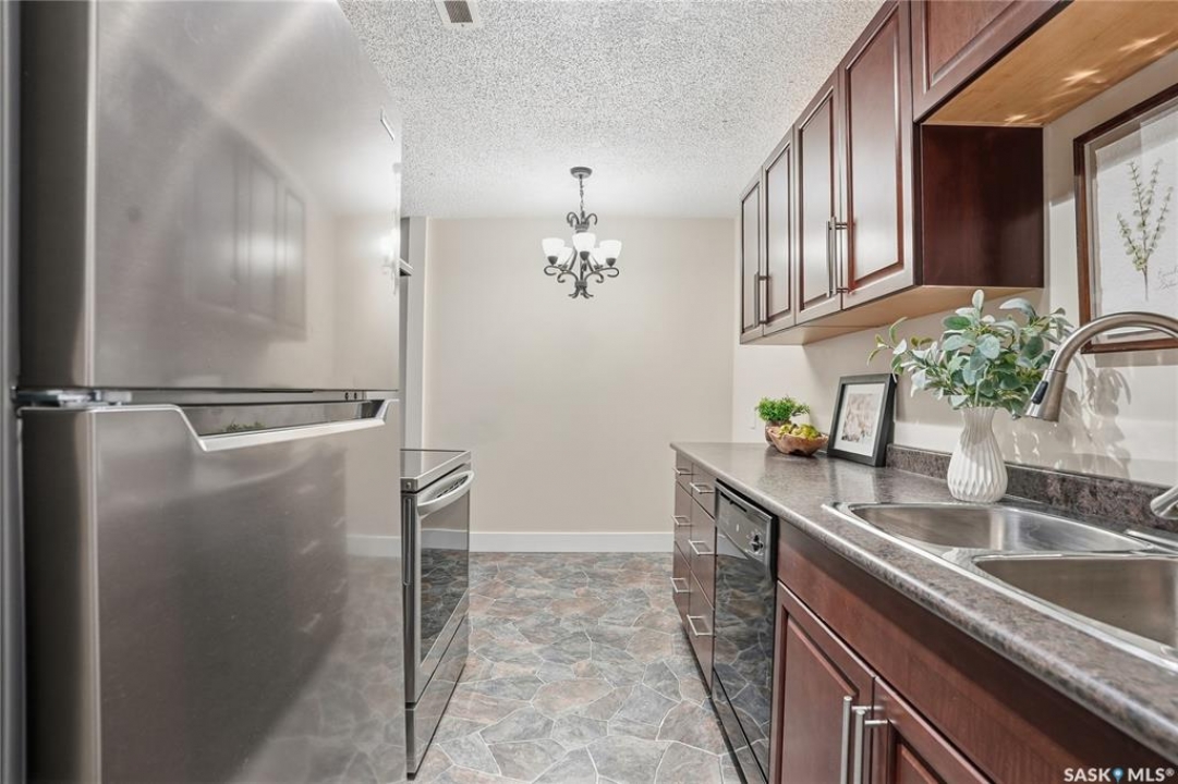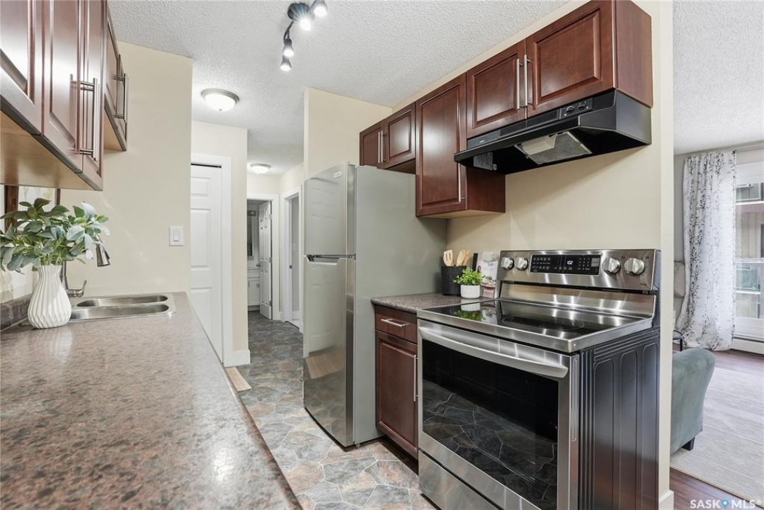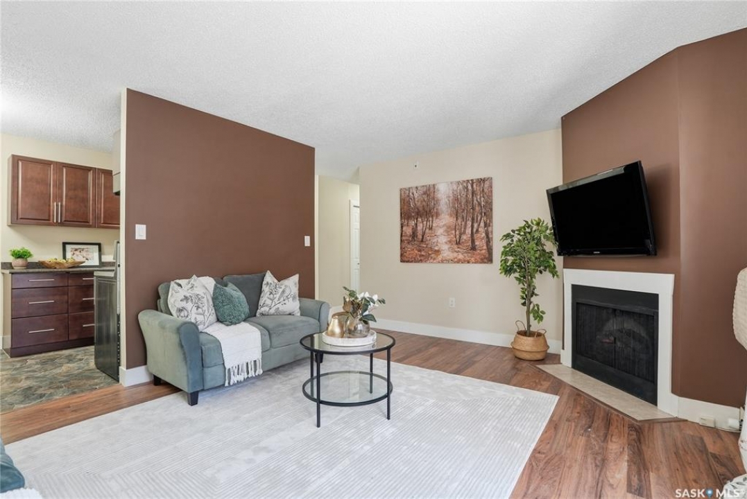 Welcome to #15-274 Pinehouse Drive in Lawson Heights, Saskatoon. This charming and beautifully updated 1-bedroom condo in Lawson Heights, perfectly positioned just steps from the river and the Meewasin trails has it all. Whether you're a first-time buyer, downsizing, or looking for a lifestyle upgrade, this bright and inviting home checks all the boxes. Inside, you'll find a spacious living room featuring a cozy electric fireplace—the perfect spot to unwind after a walk along the river. A new bedroom window and sliding patio door fill the space with natural light. The patio doors lead out to an East-facing covered balcony, ideal for morning coffee or quiet evenings outdoors. The sleek galley kitchen offers extended cabinetry, ample counter space, a brand new fridge and stove, and a handy hood fan. The home continues to provide with an updated four-piece bathroom, a new washer and dryer, and a linen closet for extra storage. Stay comfortable year-round with a newer wall air conditioning unit. This pet-friendly building (with restrictions) includes one electrified parking stall, and you'll love being close to grocery stores, shops, and everyday amenities. If you've been waiting for the perfect blend of comfort, convenience, and location—this is it.