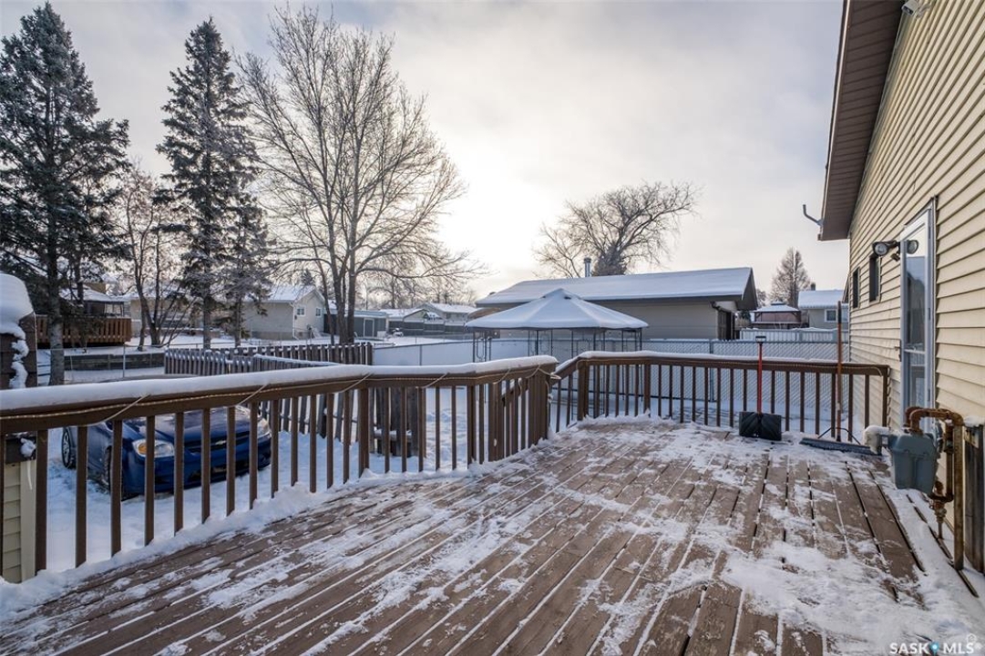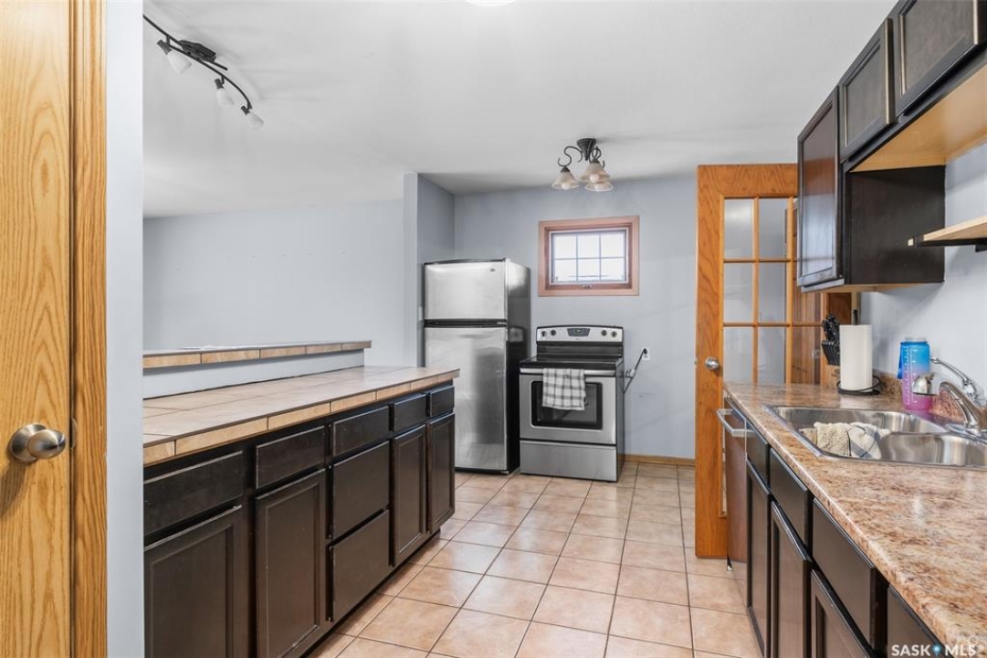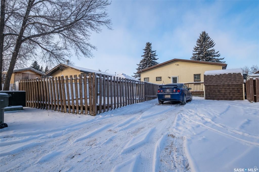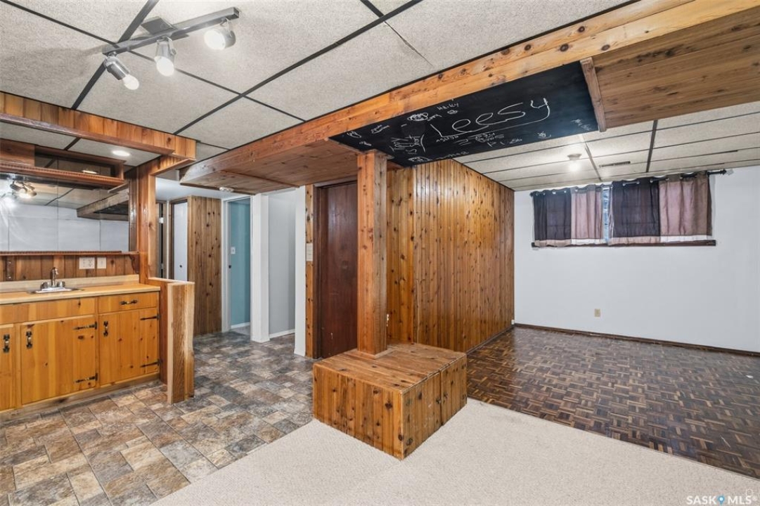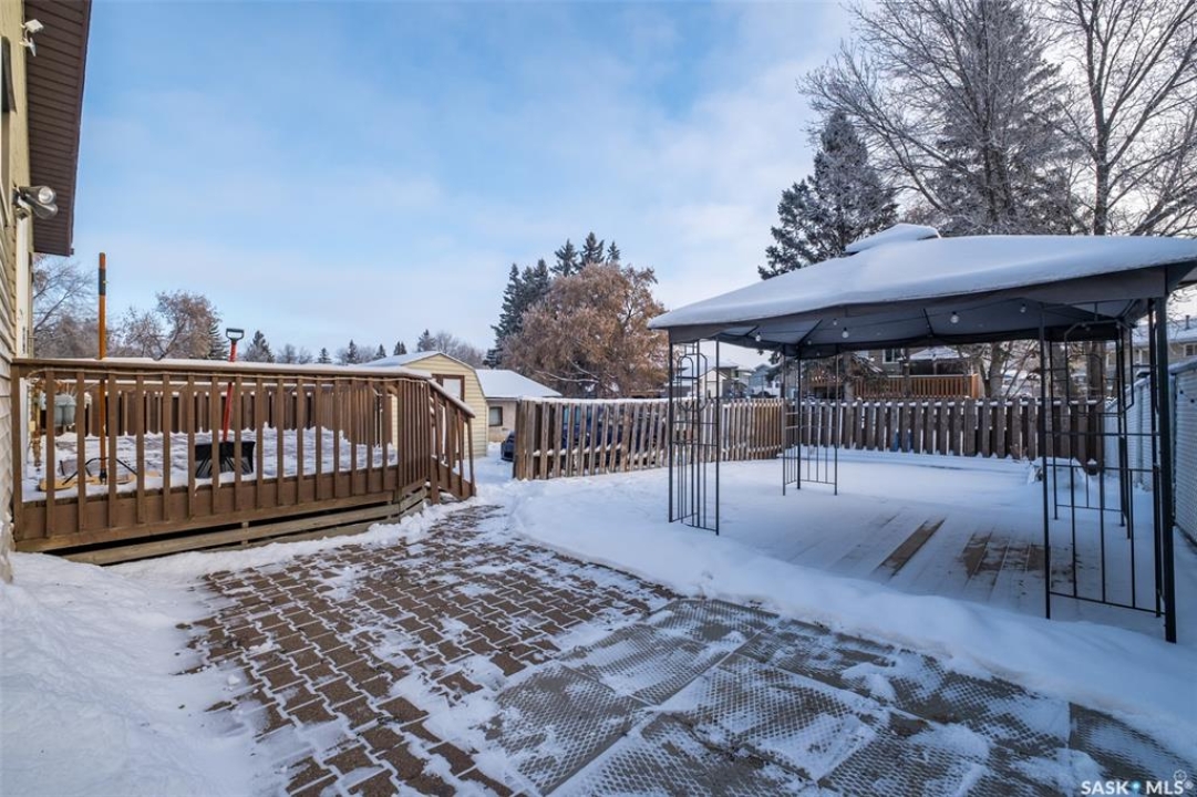 This 4 bedroom and 2 bathroom home is a fantastic opportunity in Riverview and delivers a bright, comfortable layout with multiple family spaces to enjoy. The main floor welcomes you with a sunlit living room that opens into the spacious kitchen featuring a peninsula with bar seating and sleek stainless steel appliances. From the kitchen, french doors lead into a cozy family room highlighted by beautiful parquet flooring that creates a warm and inviting space. Down the hall you will find three comfortable bedrooms, including a unique primary suite that connects directly to an adjoining bedroom which is ideal for a nursery, home office or an impressive walk in closet. The modern 4 piece bathroom features a stylish vanity and tiled tub surround, completing the main level. The fully developed basement adds even more living space, offering a large family room with a wet bar, a 4th bedroom, a 3 piece bathroom and a combined laundry/utility room. Enjoy two spacious deck areas including one with a gazebo that provides the perfect setting for outdoor relaxation. The yard is mostly fenced for added privacy and a large parking area off the back alley offers convenient off street parking. Located just minutes from Cornerstone shopping, the Rotary Trail, W.J. Berezowsky School, St. John Community School and Saskatchewan Polytechnic, this well situated home offers comfort, convenience and great value. Don't miss the chance to make it yours. Book your showing today!