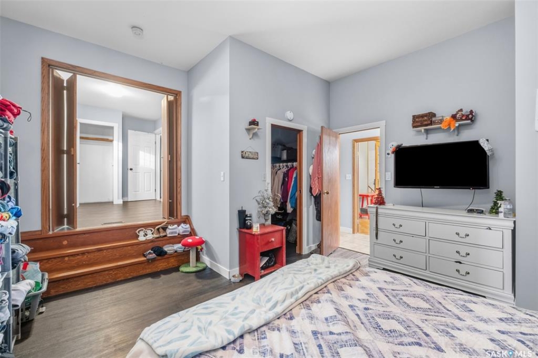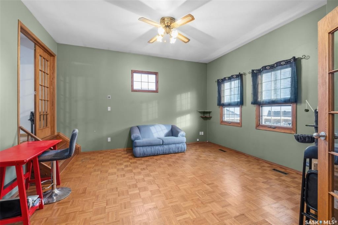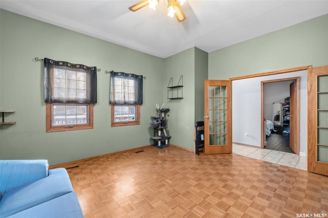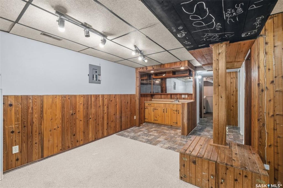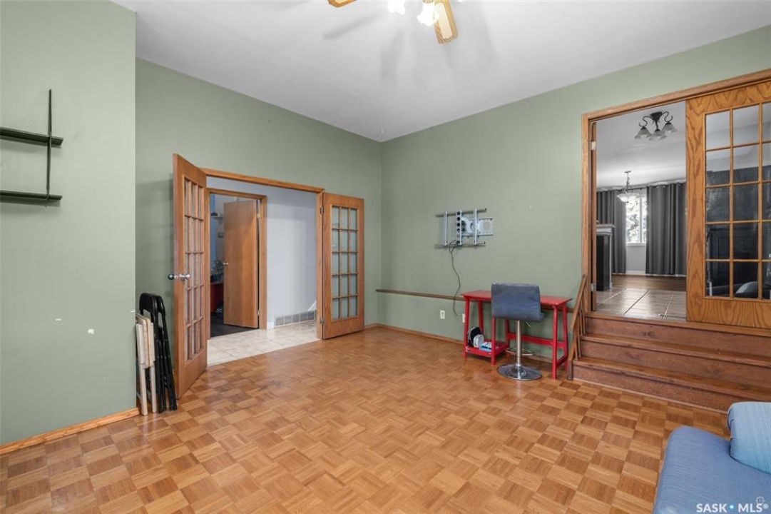 This 4 bedroom and 2 bathroom home is a fantastic opportunity in Riverview and delivers a bright, comfortable layout with multiple family spaces to enjoy. The main floor welcomes you with a sunlit living room that opens into the spacious kitchen featuring a peninsula with bar seating and sleek stainless steel appliances. From the kitchen, french doors lead into a cozy family room highlighted by beautiful parquet flooring that creates a warm and inviting space. Down the hall you will find three comfortable bedrooms, including a unique primary suite that connects directly to an adjoining bedroom which is ideal for a nursery, home office or an impressive walk in closet. The modern 4 piece bathroom features a stylish vanity and tiled tub surround, completing the main level. The fully developed basement adds even more living space, offering a large family room with a wet bar, a 4th bedroom, a 3 piece bathroom and a combined laundry/utility room. Enjoy two spacious deck areas including one with a gazebo that provides the perfect setting for outdoor relaxation. The yard is mostly fenced for added privacy and a large parking area off the back alley offers convenient off street parking. Located just minutes from Cornerstone shopping, the Rotary Trail, W.J. Berezowsky School, St. John Community School and Saskatchewan Polytechnic, this well situated home offers comfort, convenience and great value. Don't miss the chance to make it yours. Book your showing today!