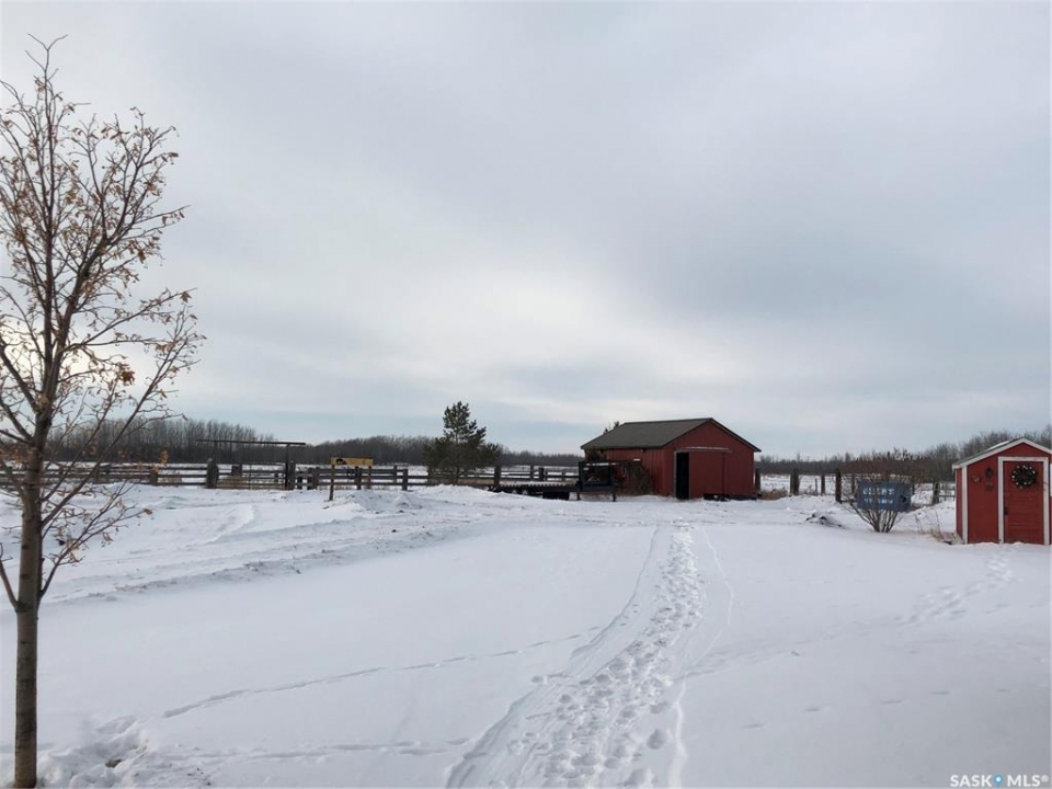 Prime Location 70.5 Acre Acreage Just Minutes from Saskatoon! Enjoy the perfect balance of rural tranquility and urban convenience with this exceptional property ideally located only 15 minutes from Saskatoon and close to Dalmeny, Martensville, and Warman. Acreage is fenced and divided into several separate pastures, thoughtfully designed for livestock or equestrian pursuits. The setup includes corrals with water, a round pen, a riding arena, shelter, and a two stall barn. Five versatile outbuildings provide ample storage and workspace, including a tack room, lawnmower shed, chicken coop, and multiple storage sheds perfect for all your equipment, animals, and hobbies. The charming 1 �-storey home blends vintage character with modern stability. Originally built in the 1950s and relocated onto a new basement in 1999, recently updated brand-new doors. Single attached garage provides direct access to house. Inside, you'll find comfortable living spaces, main floor offers a convenient laundry/mudroom, a large kitchen with abundant cupboard and cabinet space complete with custom-built shelving inside the cupboards, 2 piece bathroom. plus a bright dining room, comfortable living room, and a dedicated office. Upstairs is an open loft area ready for your creative vision, along with one cozy bedroom. Downstairs you will find three additional bedrooms, a three-piece bathroom, a comfortable living area, and a cold storage for all your canning needs. Outdoors, the beautiful yard features a mature fruit orchard with cherries, apples, chokecherries, gooseberries, black currants, saskatoon berries, and plums a peaceful retreat after a day of work or riding. Services include power, natural gas, and phone, ensuring both comfort and convenience. Whether you're looking for a working farm, an equestrian haven, or simply the privacy of wide-open spaces, this property offers endless possibilities all in a prime location close to the city. Call a Realtor today for your private viewing.