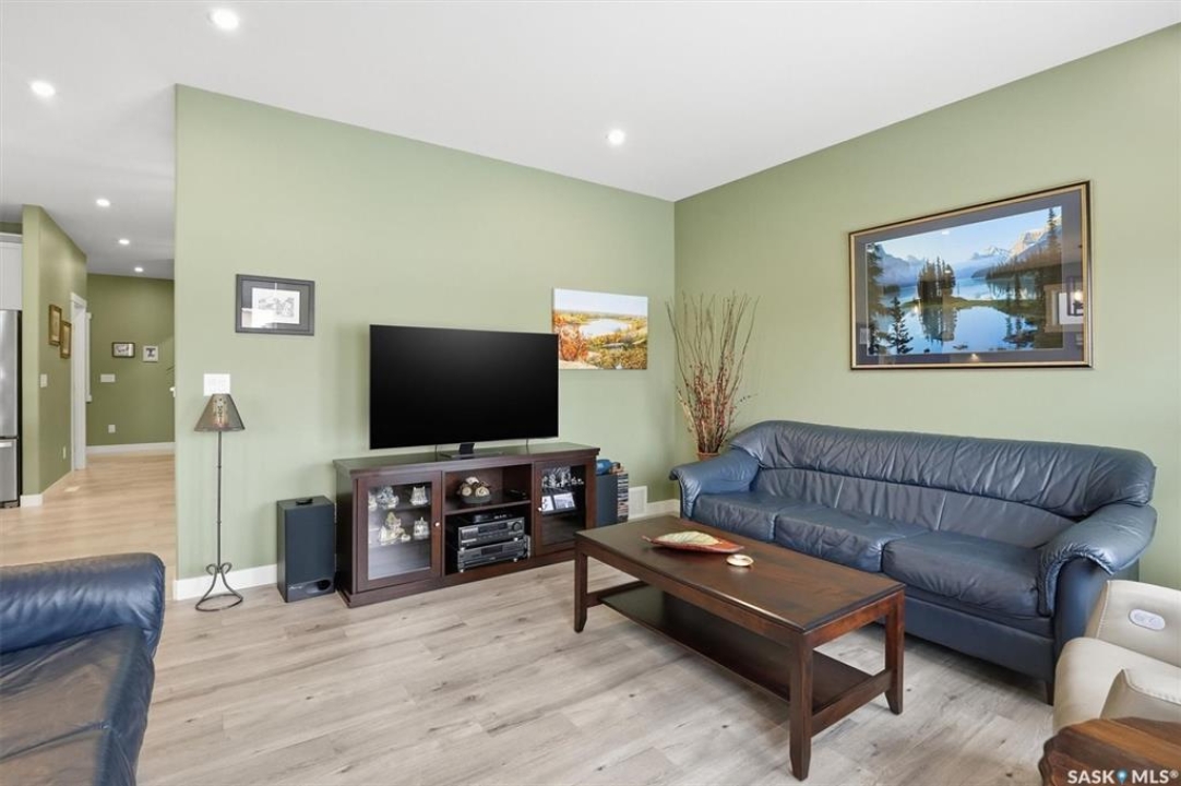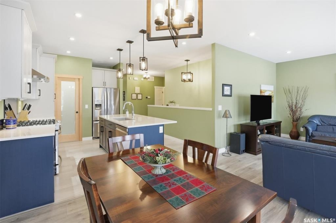 Welcome to 132 Forsey Ave — a beautifully designed two-bedroom bungalow by Selkirk Homes, blending comfort, style, and effortless main-floor living. The spacious front foyer greets you with a warm, inviting feel from the moment you arrive. At the heart of the home is a stunning kitchen crafted for everyday living and entertaining, featuring abundant cabinetry, quartz countertops, stainless steel appliances including a gas stove, a generous island with an undermount sink, and a built-in pantry—perfect for cooking or gathering with friends and family. The living and dining areas are bright and welcoming with large windows, and from the dining room you can step onto the partially covered composite deck for seamless indoor-outdoor living. The layout includes a well-sized secondary bedroom and a generous primary suite with two closets and a beautifully finished ensuite with a double vanity and walk-in shower. There's also optional main-floor laundry for added convenience. Durable luxury vinyl and laminate flooring run throughout the main level. The partially finished basement offers excellent potential for future development, including space for two additional bedrooms—ideal for growing families, guests, or hobbies. Outside, enjoy the concrete triple driveway, partially finished double garage with natural gas rough-in, and fully landscaped yard. The front yard is xeriscape for low maintenance, while the backyard provides a peaceful retreat backing walking paths and green space. Located in desirable Aspen Ridge—close to parks, trails, and amenities—this move-in-ready bungalow has been exceptionally maintained and is ready for its next owner. Contact your realtor today to book a private showing.