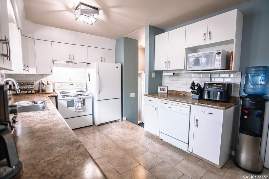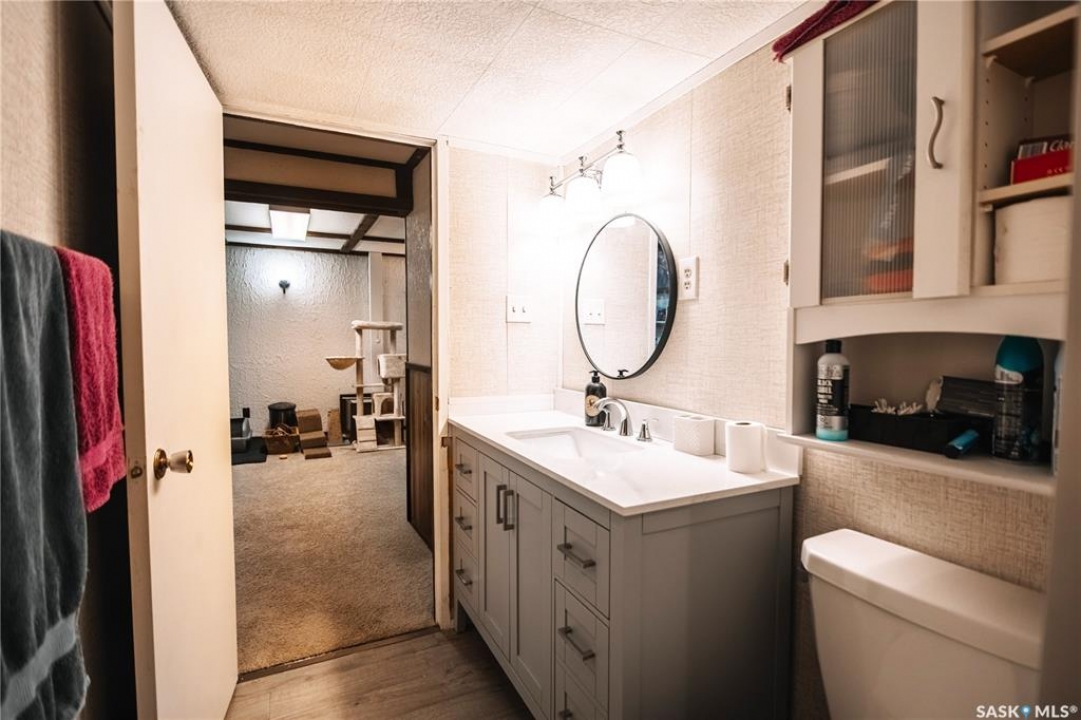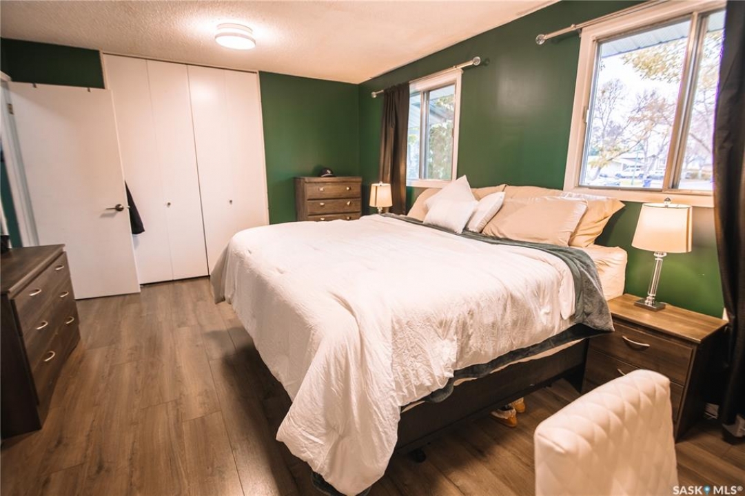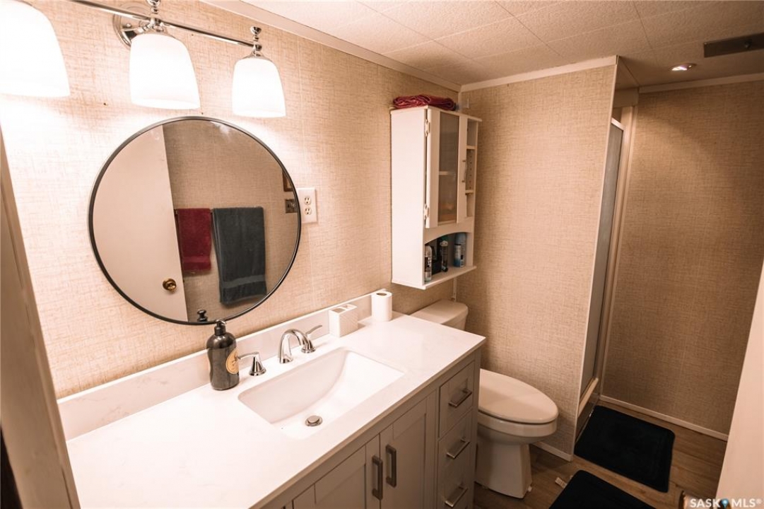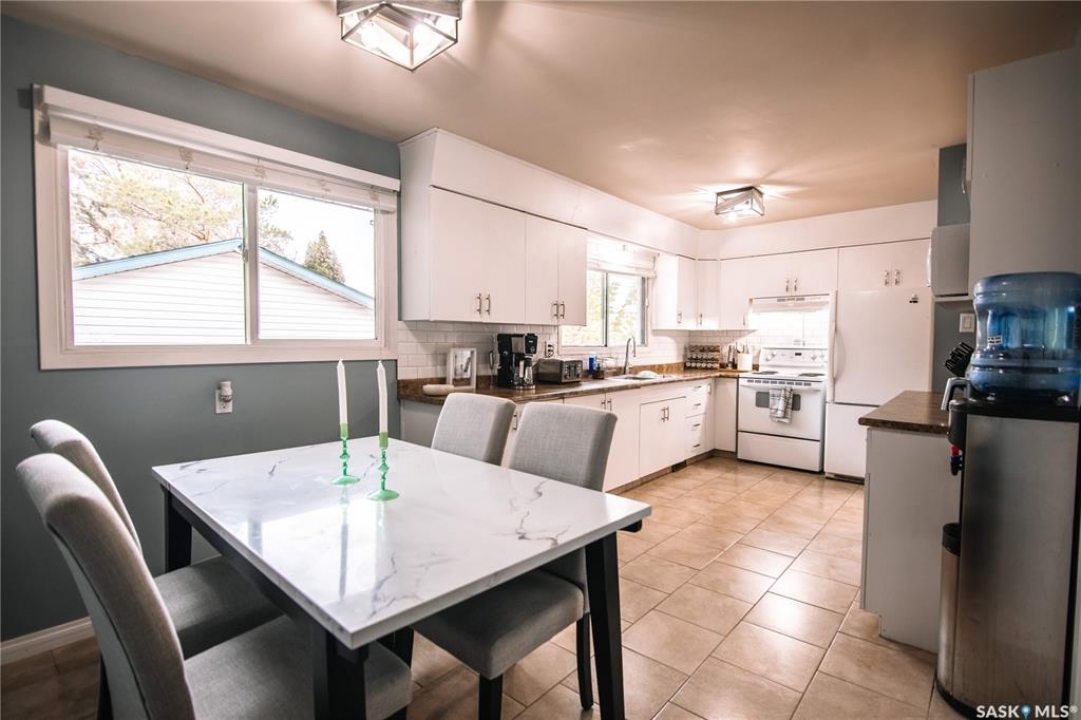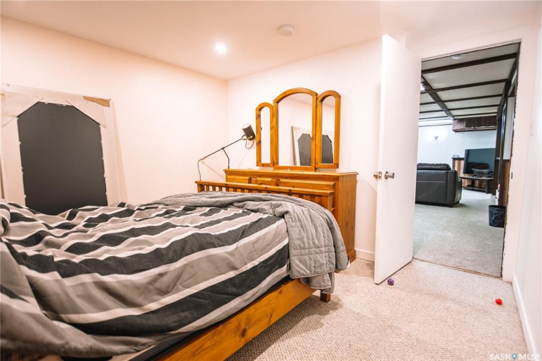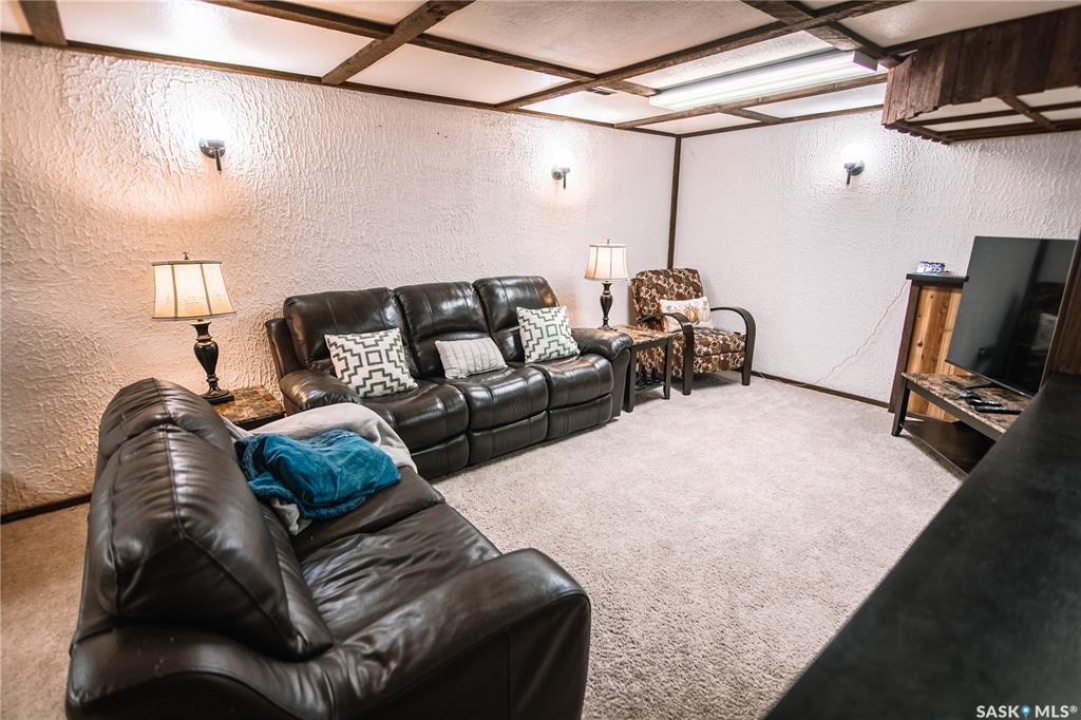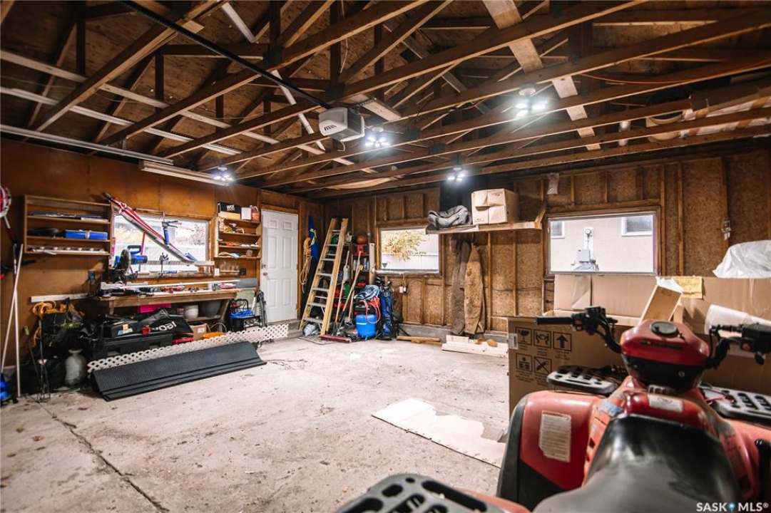 This beautifully maintained 1040 sq ft bungalow shows exceptionally well and offers a perfect blend of comfort, functionality, and thoughtful updates throughout. The main floor features a bright and spacious living room filled with natural light. The kitchen is both practical and inviting, showcasing painted white cabinets, a large walk-in pantry, and an eating area with a newer PVC window. The generous primary bedroom was originally two bedrooms and could easily be converted back if desired. A well-sized second bedroom and an upgraded four-piece bathroom complete the main level. The fully developed basement is equally impressive, featuring a large L-shaped rec room with a wet bar, full-size fridge, and built-in bookcases — perfect for entertaining or relaxing. You'll also find a three-piece bathroom complete with a cedar-lined dry heat sauna, an additional bedroom, a laundry area and a separate mechanical room. Outside, enjoy a fully fenced and beautifully landscaped yard with a patio, mature trees, and shrubs. There's a 22x24 double detached garage with lane access and a convenient single front driveway, providing ample parking options. Other notable updates include: New high-efficiency furnace and central air conditioning, new flooring and vanity in the downstairs bathroom, upgraded tub surround, flooring, and exhaust fan in the upstairs bathroom, roof with fiberglass shingles and newer garage door opener. Conveniently located within walking distance to both public and separate schools, close to shopping, parks, and all amenities, this home truly stands out for its care and condition.
