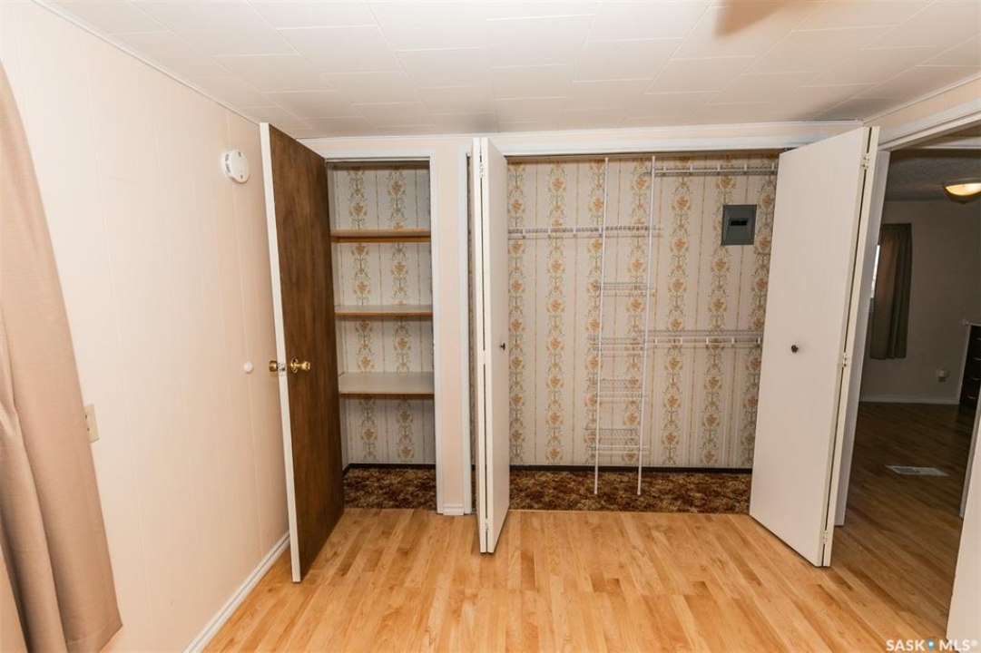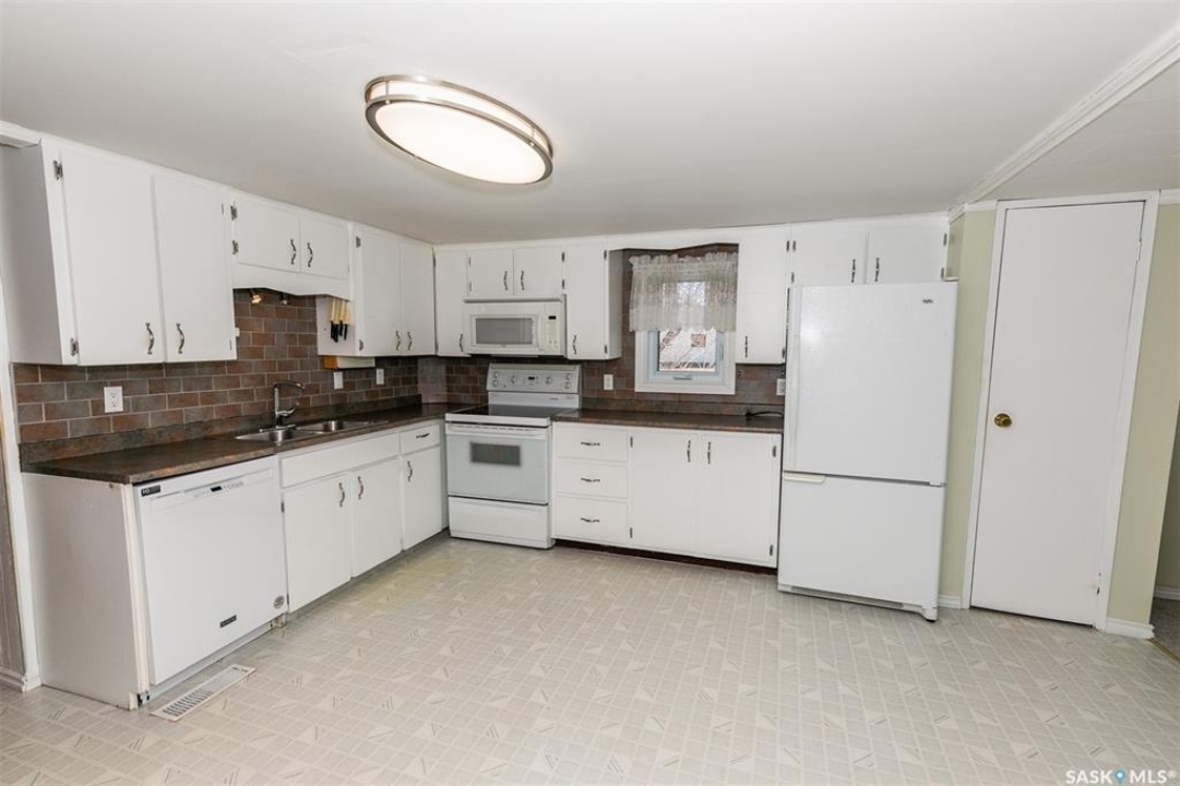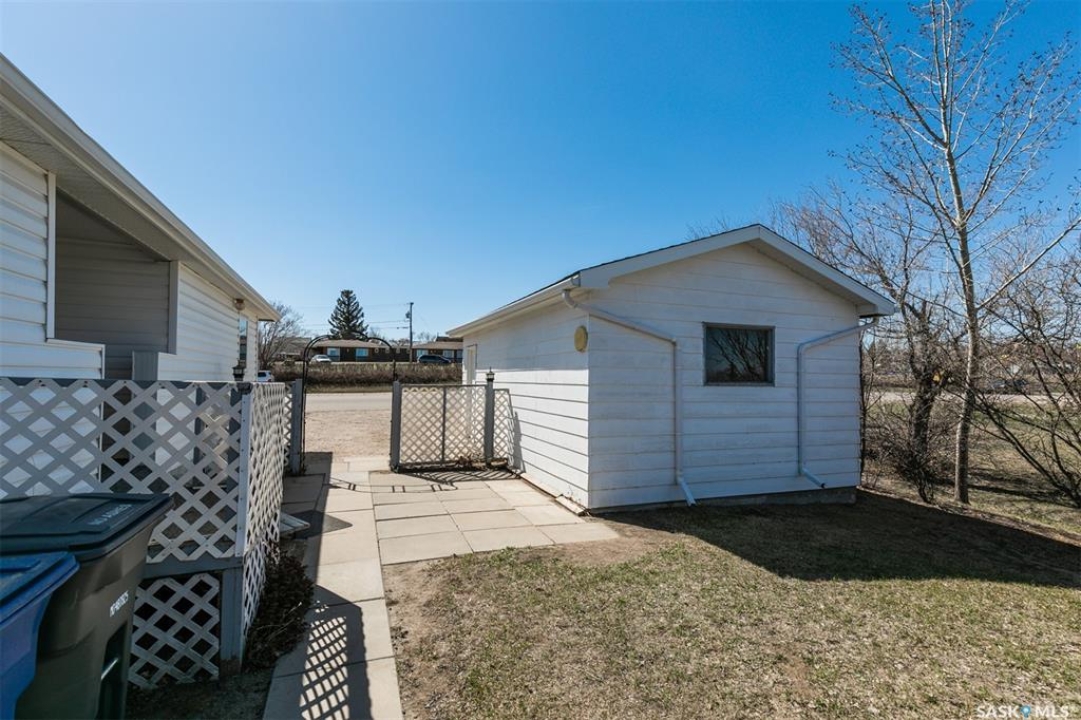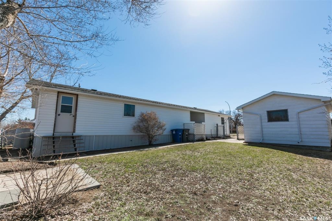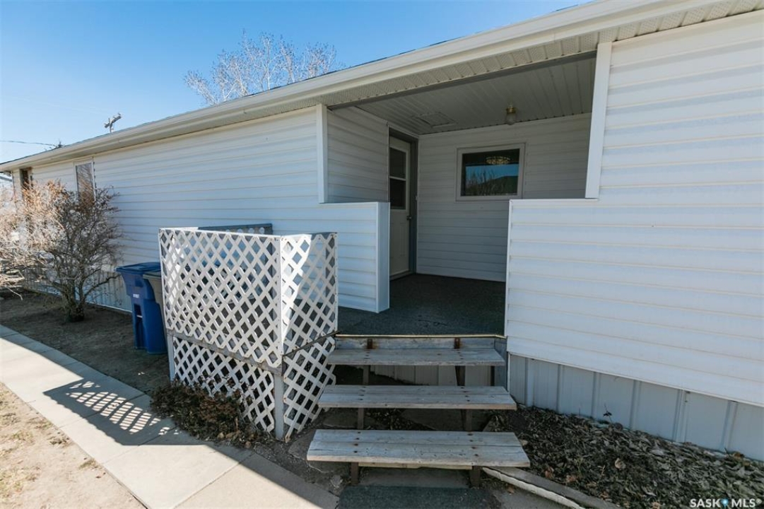 Who doesn't like a spacious front porch entrance? This 1218 sq. ft. double wide manufactured home has one that you will love, with room for a freezer, extra fridge and plenty of pantry and coat/boot space. 2 bedrooms, one office that has been used as a 3rd bedroom in the past, a lovely 4 pc. bath. Spacious kitchen / dining are with plenty of cabinets and room for a dining table, a bright living area, and laundry complete the main level. The laundry room offers more storage and cupboards. Cute yard, partially fenced and a few trees and shrubs for added privacy. A covered front small deck. A single detached garage and a single driveway which offers you off street parking. Constructed in 1965 with additions in 1977. Shingles replaced in approx. 2016. Water heater was recently replaced. Crawl space was recently insulated and water lines heat taped. Windows were replaced in approx. 1986. Detached garage was added in 1997. The garage door opener does not work. Bonus- there is not a pavement levy at this location. Close to amenities. Available for a quick possession.