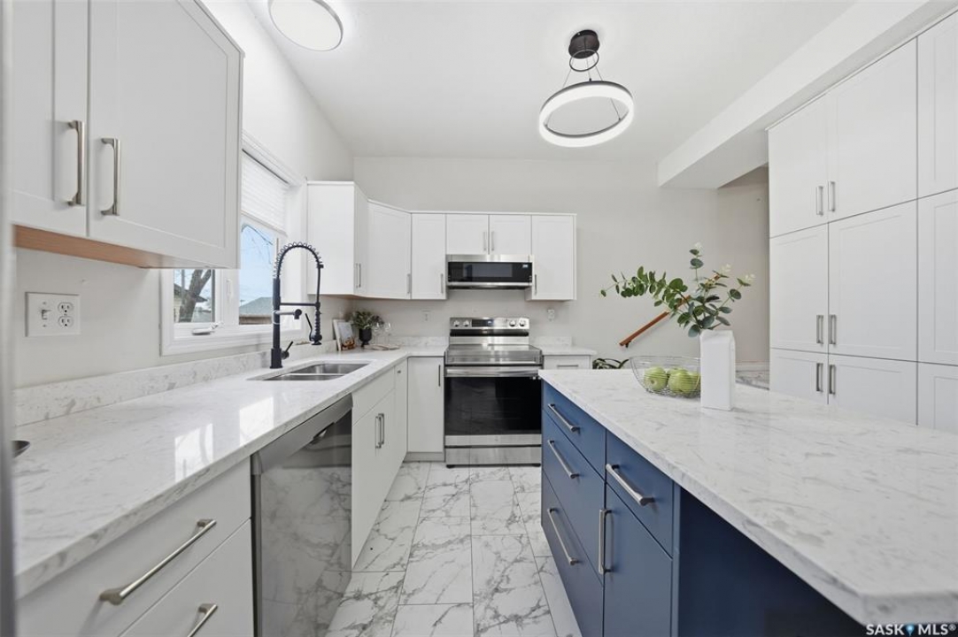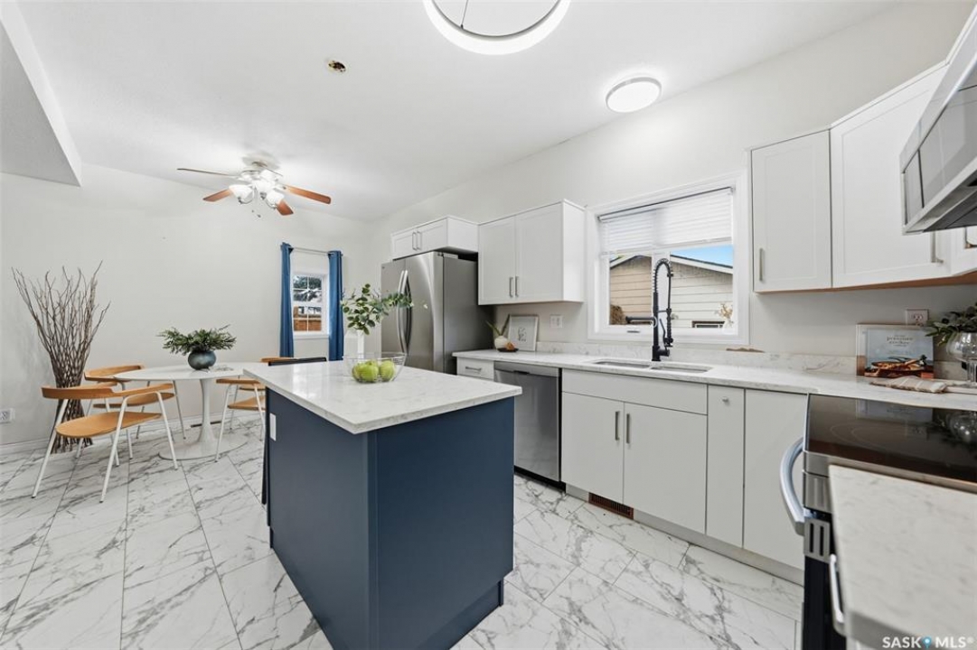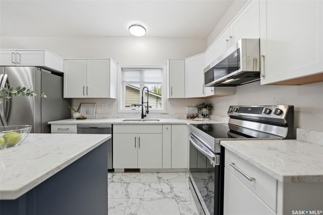Welcome to 1512 7th Avenue N – North Park Charm with Modern Style! This beautifully updated 1,217 sq ft home offers a fantastic layout and a long list of upgrades in one of Saskatoon's most desirable neighbourhoods. Step into the gorgeous new kitchen with a centre island, modern cabinetry, and appliances that are just 1 year old — perfectly designed for cooking and entertaining. Featuring three bedrooms plus a walk-through den on the main floor, this home provides flexible space for family, guests, or a home office. You'll also appreciate the convenience of main floor laundry and two refreshed bathrooms. Peace-of-mind improvements include all new rented mechanical, newer flooring, and updated windows throughout portions of the home. The backyard offers a huge perk — no neighbours directly behind, as it backs onto the school and open green space. A double detached garage adds secure parking and storage. Virtual tour available. Modern updates, a functional layout, and a prime North Park location — this home is truly a standout and ready for its next owners! Be sure to check out the virtual tour!