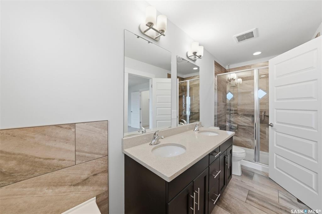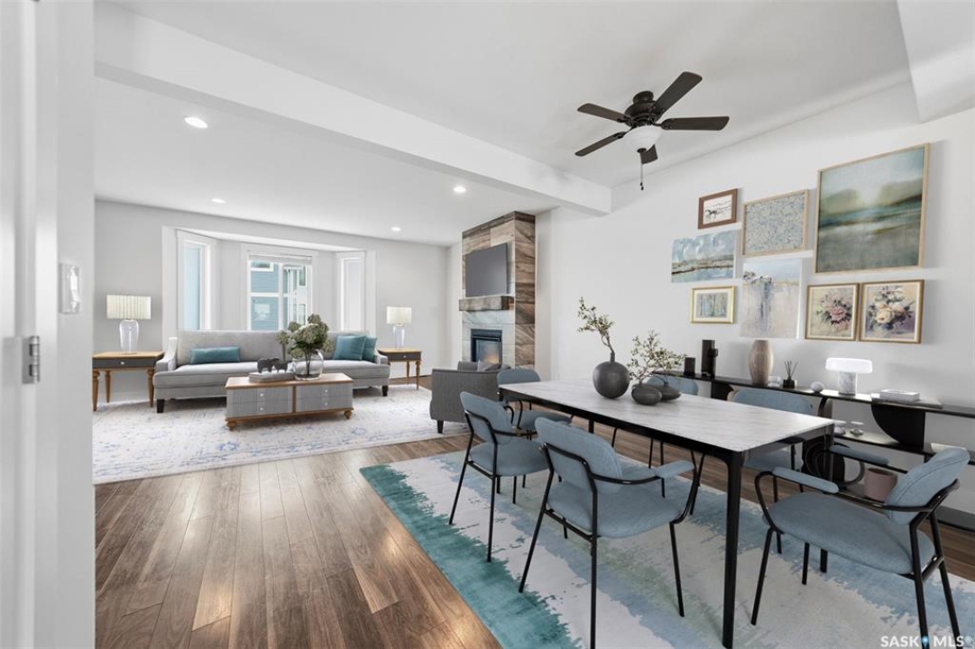 Welcome to this bright and spacious home featuring 9-ft ceilings and recent updates that make it show exceptionally well. The main floor offers an open great-room design with a chef-style kitchen that includes a walk-in pantry, soft-close cabinets, quartz countertops, a tiled backsplash, and stainless steel appliances, flowing into a cozy living area with a natural gas fireplace. There is a two piece powder rom on the main living area as well. Upstairs are three bedrooms and two bathrooms, including a primary suite with a walk-in closet and relaxing ensuite, plus convenient nearby laundry. The heated tandem garage provides extra parking and storage, while outside, the fenced backyard, patio, and upper balcony back directly onto a beautiful green-space park with walking paths. All appliances are included, and the location is close to schools, trails, amenities, and the Legends Golf Course, offering comfort, style, and convenience in one.