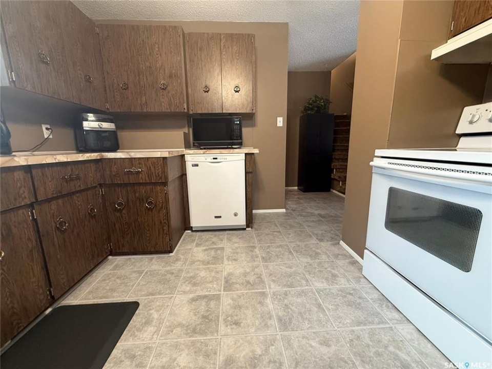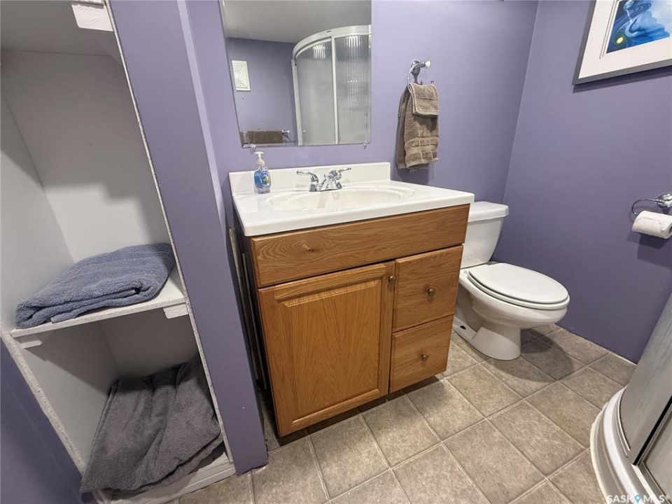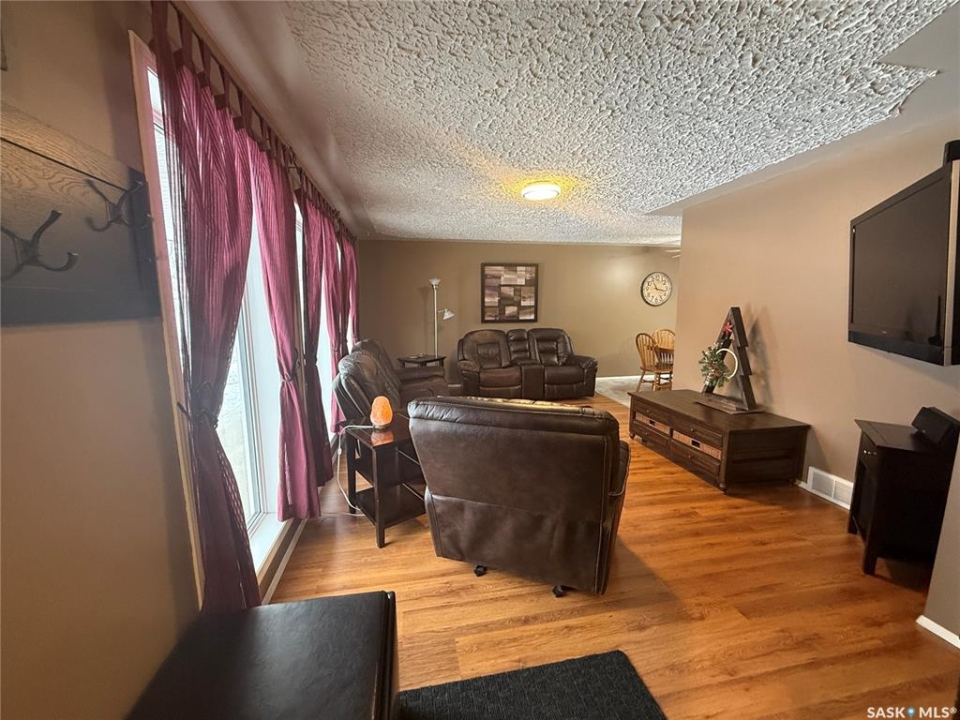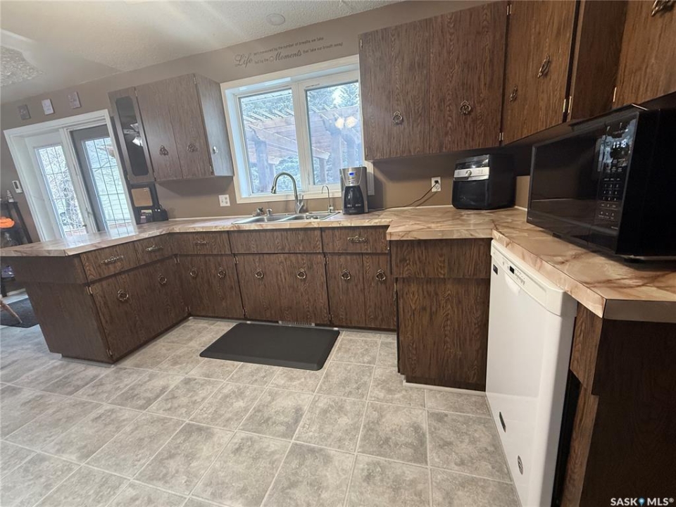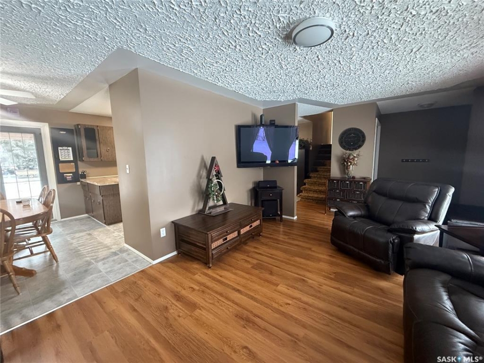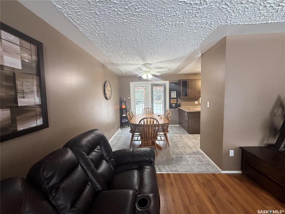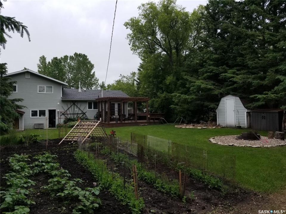 Welcome to this well-maintained and spacious home in Annaheim, SK, situated on a generous 60' x 150' lot. This property offers 3 bedrooms and 2 bathrooms. The main level features a welcoming foyer with a retractable screen, allowing you to enjoy fresh air and natural light. From there, you enter a bright and inviting living room that flows seamlessly into the dining area, which offers garden doors leading to a massive deck complete with built-in seating and a pergola—perfect for outdoor entertaining. The kitchen provides an abundance of cabinetry, includes all appliances, and features a freshwater filtration system under the sink. The second level offers three generously sized bedrooms and a combined 4-piece bath/laundry room, providing added comfort and convenience. The basement includes a spacious family room, a 3-piece bathroom, and a furnace/storage room for additional functionality. An attached double garage easily accommodates two vehicles and offers ample storage space, including access to extra storage beneath the front porch. The expansive yard is beautifully landscaped and includes three storage sheds (one previously used as a playhouse), a garden area, a firepit area with firewood that will stay, perennials, and mature trees overlooking greenspace. Lots of updates over the years, with the most recent being shingles in July/23 and a septic pump in Feb/25. This property is ideal for anyone seeking space, comfort, and a well-cared-for home in a charming, family-friendly community, which has a K-12 school in the heart of the trades industry—perfect for BHP mine workers and employees of Doepker Industries. Contact your local REALTOR to schedule a showing today!