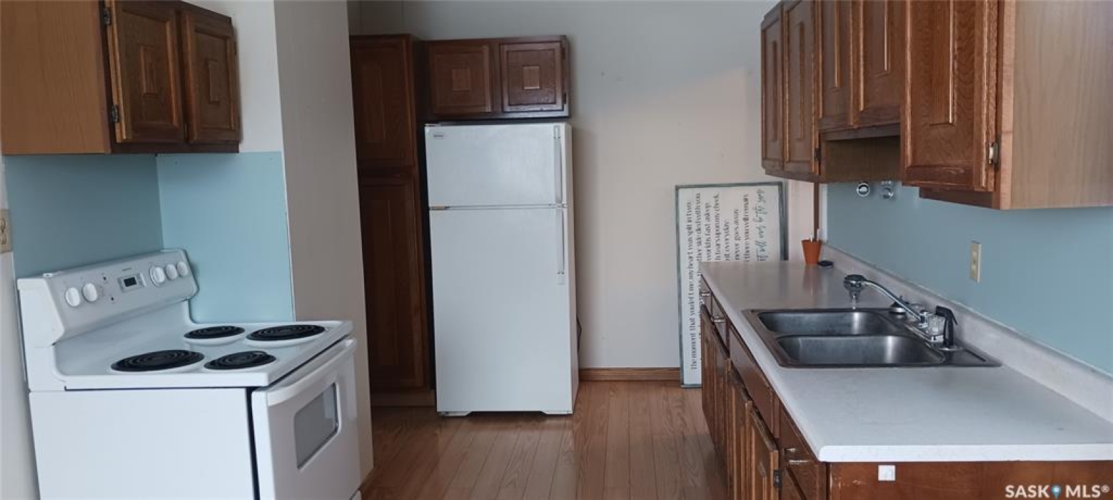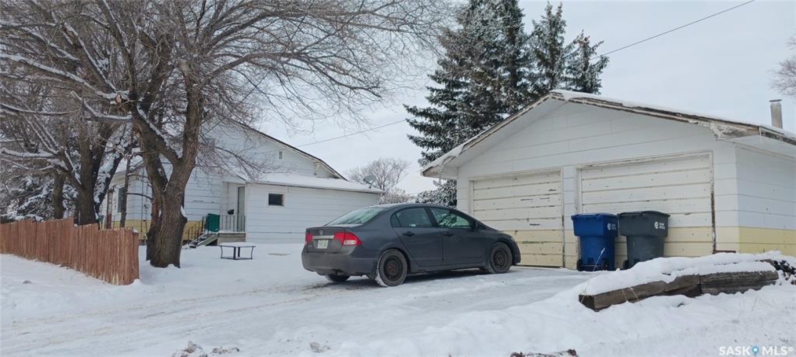 Situated in the Town of Coronach, this well-maintained family residence offers a desirable location. The main floor features a spacious area with two bedrooms and a full bathroom. The kitchen is equipped with oak cabinetry, and all windows have been upgraded. A heated porch provides main floor laundry facilities and a storage room. The upper level contains two additional bedrooms. While the basement remains unfinished, it houses the furnace, water softener, and water heater. The property boasts a tastefully landscaped yard and includes a heated double detached garage with new shingles. This home provides generous living space and has been carefully maintained. All appliances and most furnishings are included in the offering
