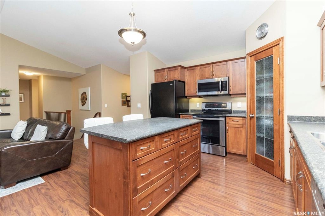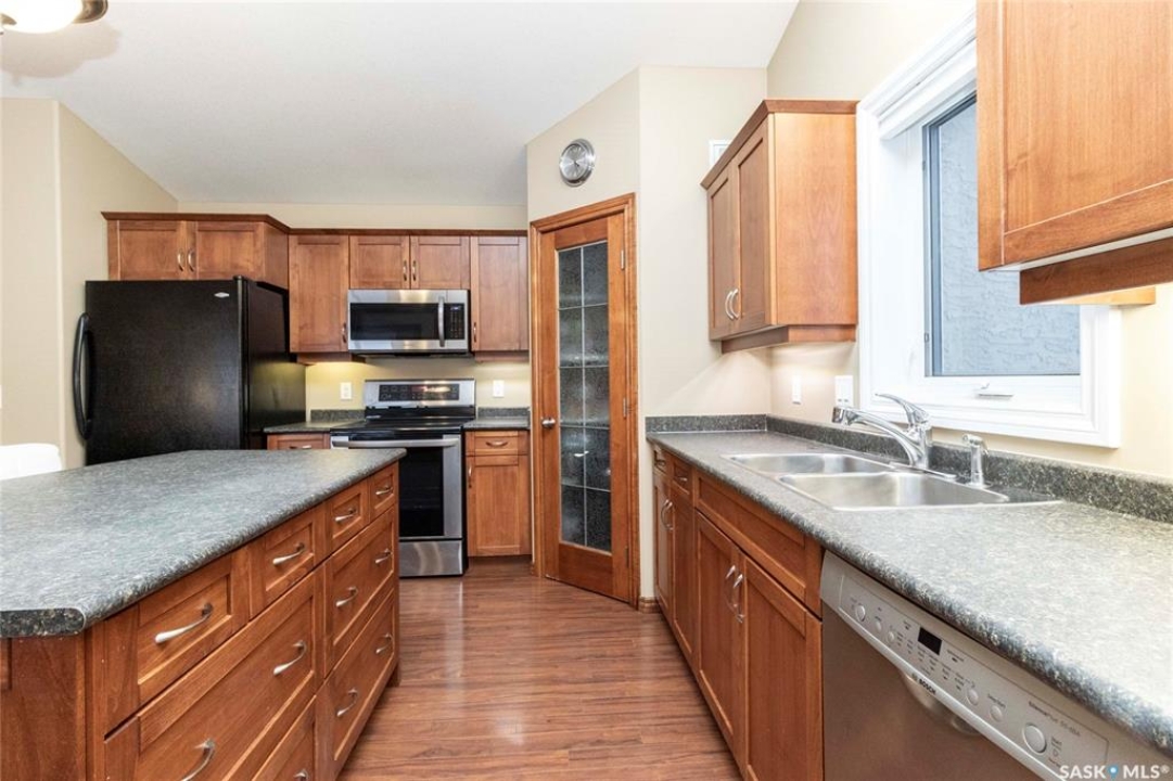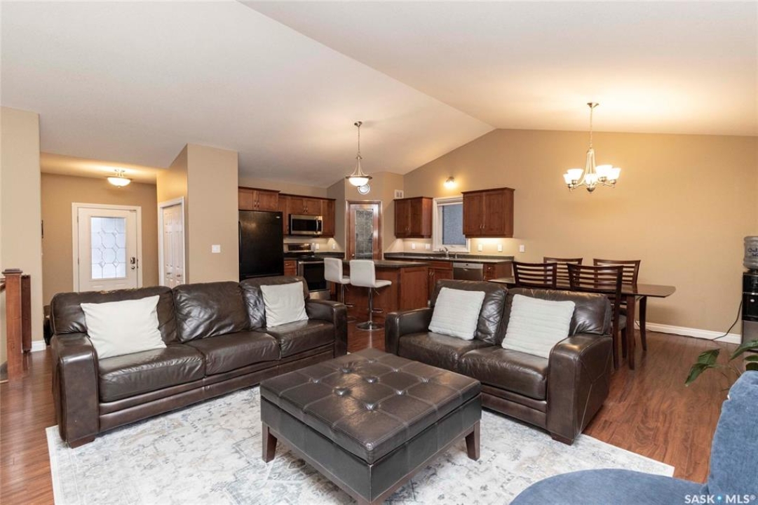 Welcome to this beautifully maintained raised bungalow, perfectly situated in the highly desirable Willowgrove neighbourhood. From the moment you arrive, the home's charming appeal sets the tone for the warm, inviting spaces that follow. Step inside to an impressive open-concept main floor where vaulted ceilings sweep overhead, creating an airy, expansive atmosphere ideal for both everyday family living and entertaining. Original owners have lovingly cared for and thoughtfully designed this home with comfort and functionality in mind. The heart of the home brings together the living room, kitchen, and dining area in one seamless flow. The kitchen shines with a corner pantry, abundant wood cabinetry, and a generous island—perfect for meal prep or casual conversations. From the dining room, head out to a fantastic two-tiered deck overlooking the spacious backyard, complete with mature trees, shrubs, a storage shed, and an access gate for storing your extras—whether that's a trailer, boat, or whatever your lifestyle requires. The main level also features a primary bedroom with a walk-in closet and 3-piece ensuite. Two additional bedrooms and a full 4-piece bathroom complete this floor. Downstairs, the large family room offers endless flexibility—room for movie nights, a games area, or both. You'll also find another bedroom with its own walk-in closet, a 4-piece bathroom, and plentiful storage spaces. A double attached garage adds even more value, boasting a bonus 6.4' x 9' area for tools, hobbies, or extra gear, plus direct access to the backyard through a convenient man door. Some recent updates bring peace of mind, including new shingles (2025) and a furnace and hot water tank (2022). Some features include UG sprinklers front & back, Central AC, Central Vacuum (no power nozzle), And with nearby parks, walking paths, schools, shopping, and transit, this location delivers the best of Willowgrove living. This beauty won't last!