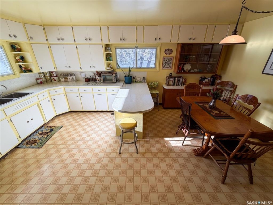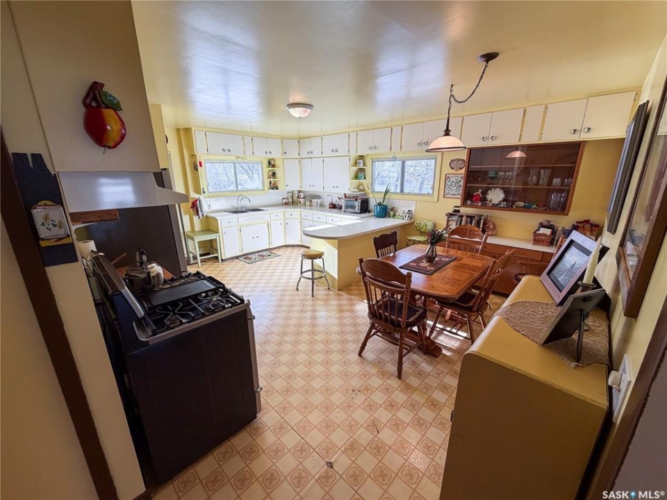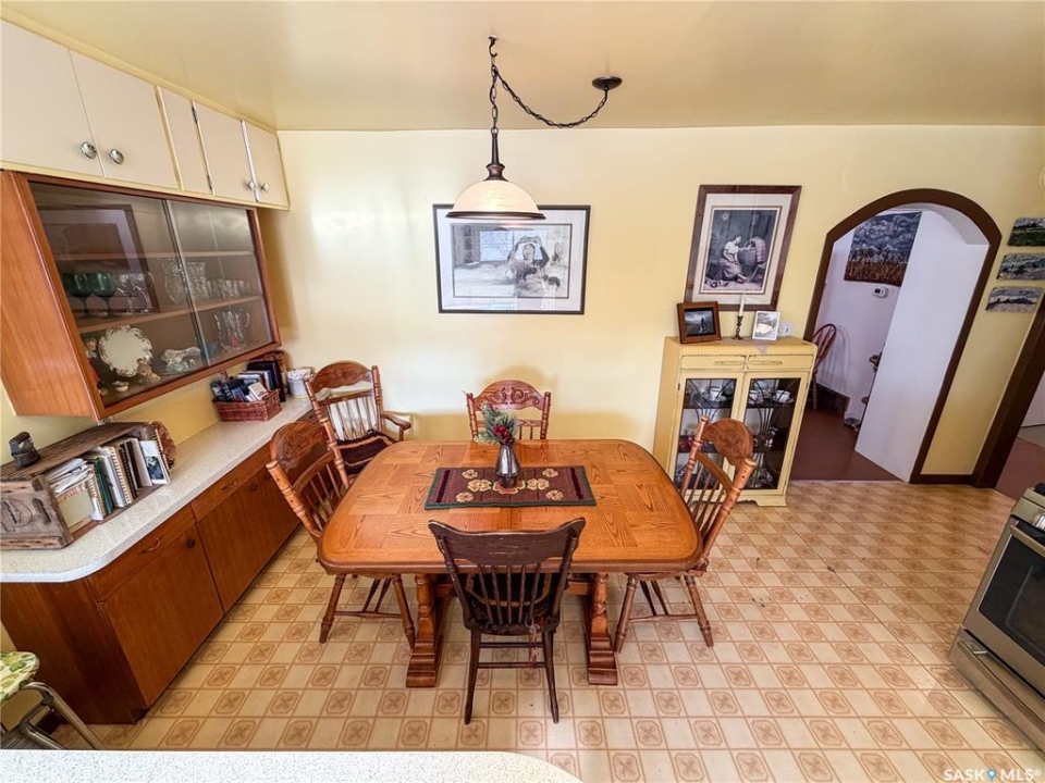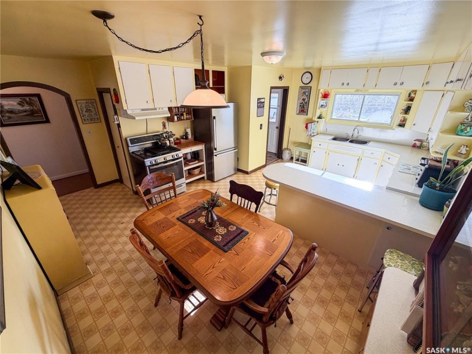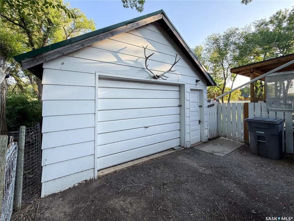 Welcome to 610 Railway Street in Eastend — a charming 4-bedroom, 2-bathroom bungalow with stunning backyard views and a lifestyle rooted in peace, space, and small-town charm. Set on a generous 15,000 sq. ft. lot with no back neighbours, this 1,070 sq. ft. home offers direct access to walking trails and scenic views of the old railway line — a rare combination that gives you both privacy and natural beauty right out your back door. With a single detached garage and two separate driveways—one on each side of the home—you'll have more than enough space for parking, guests, or extra vehicles. Step inside to a sun-soaked main floor living room with plenty of natural light, setting the tone for a warm and welcoming layout. To the right, you'll find the kitchen and dining area, complete with a built-in china cabinet and stainless steel appliances, including a gas stove (2017) and fridge (2021). The cabinetry offers abundant storage, and the dining space is ideal for everyday meals or hosting loved ones. The main floor also includes two well-sized bedrooms and a 4-piece bathroom, making for a practical and cozy layout. Downstairs, the fully developed basement adds two additional bedrooms, a renovated 3-piece bathroom (2022), and a spacious family room with a newly installed gas fireplace (2024) — perfect for keeping warm and comfortable even during power outage. You'll also find a high-efficiency furnace (2017), newer water heater (approx. 2020), cold storage, large storage room, and laundry area with washer & dryer (2018) — ticking all the boxes for practical daily living. The backyard is a dream for gardeners, pet lovers, and families alike. With a newer veranda(2023), raised garden beds (2023), a storage shed, and firepit, this outdoor space offers tons of room to relax, play, or grow your own food. Gated access from both sides of the property and a gate at the back make the yard as functional as it is beautiful. Updated metal roof on home & garage in 2023.