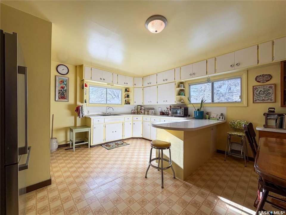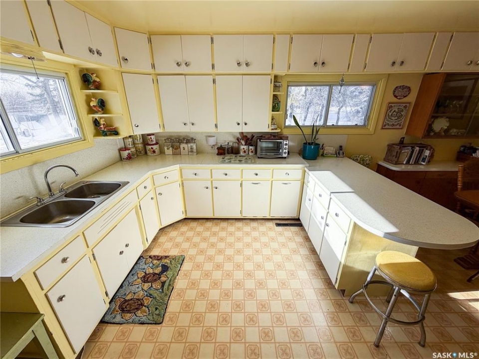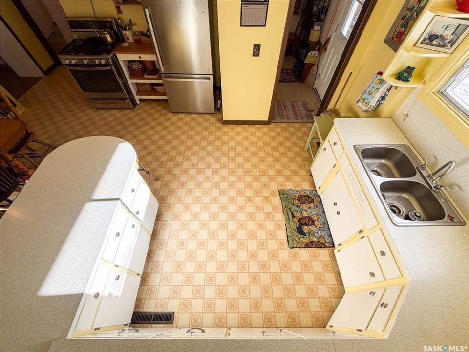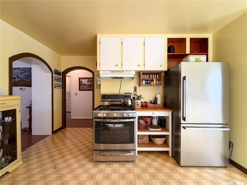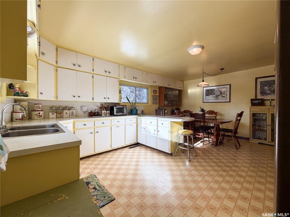 Welcome to 610 Railway Street in Eastend — a charming 4-bedroom, 2-bathroom bungalow with stunning backyard views and a lifestyle rooted in peace, space, and small-town charm. Set on a generous 15,000 sq. ft. lot with no back neighbours, this 1,070 sq. ft. home offers direct access to walking trails and scenic views of the old railway line — a rare combination that gives you both privacy and natural beauty right out your back door. With a single detached garage and two separate driveways—one on each side of the home—you'll have more than enough space for parking, guests, or extra vehicles. Step inside to a sun-soaked main floor living room with plenty of natural light, setting the tone for a warm and welcoming layout. To the right, you'll find the kitchen and dining area, complete with a built-in china cabinet and stainless steel appliances, including a gas stove (2017) and fridge (2021). The cabinetry offers abundant storage, and the dining space is ideal for everyday meals or hosting loved ones. The main floor also includes two well-sized bedrooms and a 4-piece bathroom, making for a practical and cozy layout. Downstairs, the fully developed basement adds two additional bedrooms, a renovated 3-piece bathroom (2022), and a spacious family room with a newly installed gas fireplace (2024) — perfect for keeping warm and comfortable even during power outage. You'll also find a high-efficiency furnace (2017), newer water heater (approx. 2020), cold storage, large storage room, and laundry area with washer & dryer (2018) — ticking all the boxes for practical daily living. The backyard is a dream for gardeners, pet lovers, and families alike. With a newer veranda(2023), raised garden beds (2023), a storage shed, and firepit, this outdoor space offers tons of room to relax, play, or grow your own food. Gated access from both sides of the property and a gate at the back make the yard as functional as it is beautiful. Updated metal roof on home & garage in 2023.