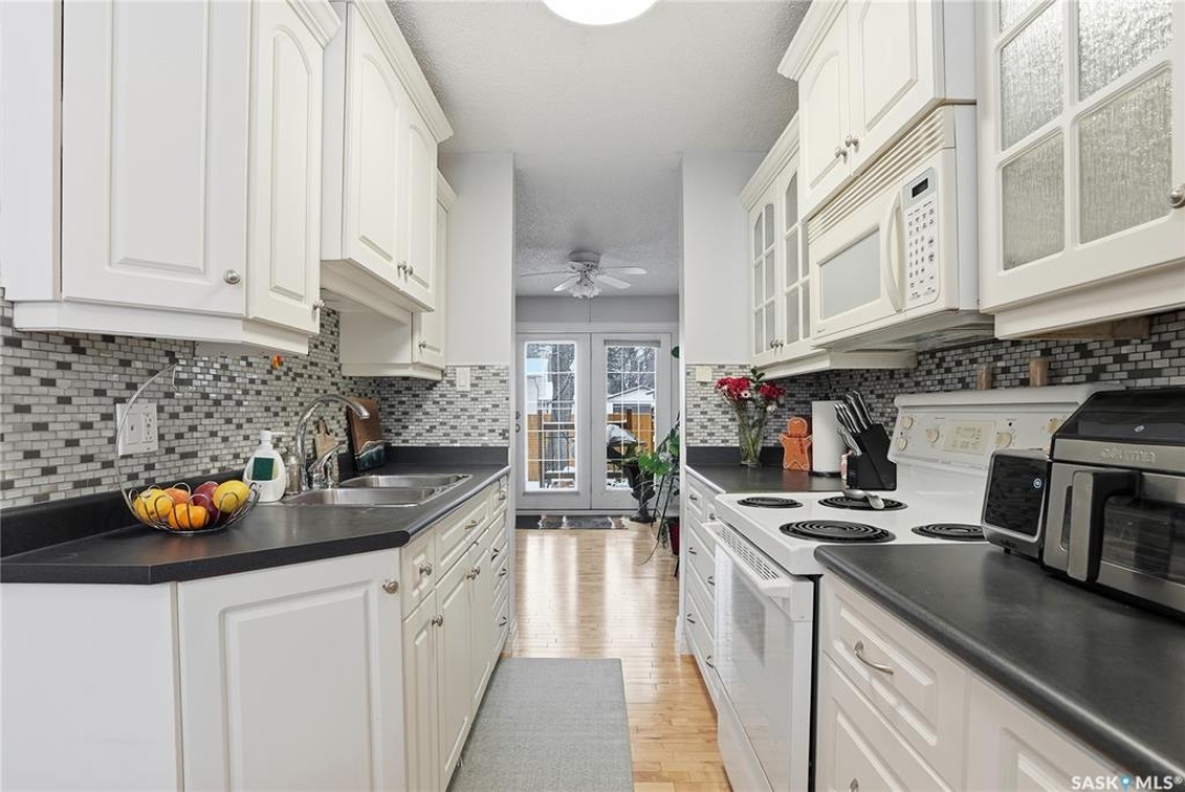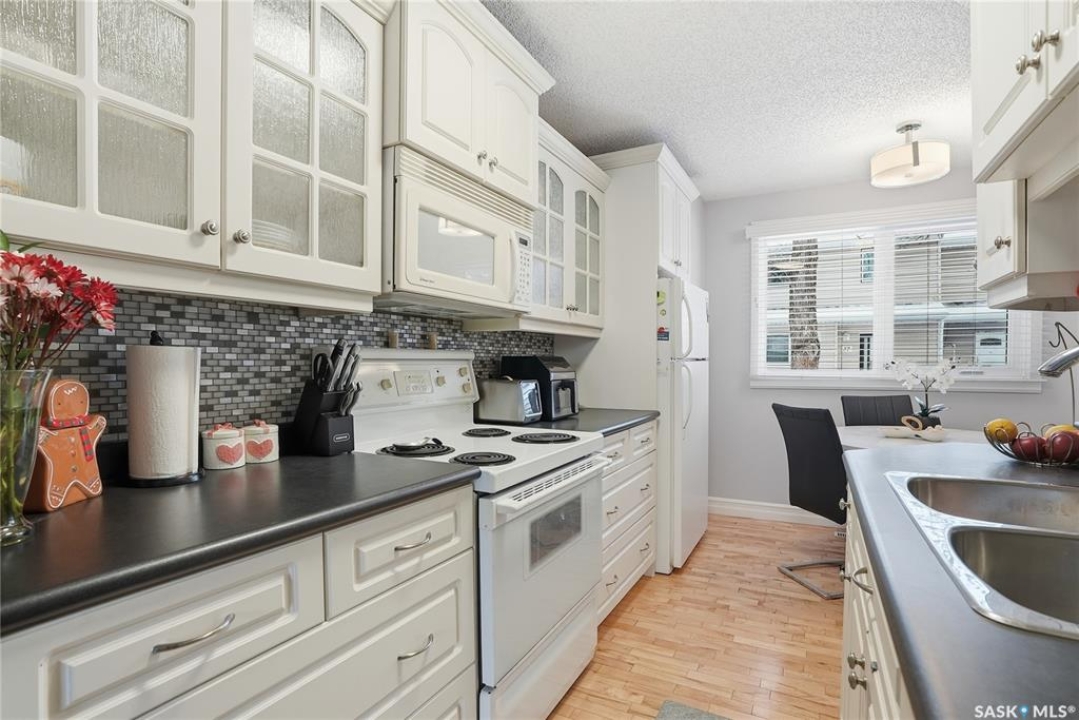 Welcome to 28-330 Haight Crescent. This 1017 sq ft townhouse-style condominium is situated on a tranquil crescent, offering a highly private yard. The main level showcases beautiful wood flooring and complementary paint selections. The galley-style kitchen provides ample counter space and is equipped with all essential appliances. A charming, well-lit dining nook adjacent to the kitchen, along with a two-piece bathroom, completes this main floor. French doors provide access to your semi-private yard, which features a deck and generous green space for outdoor enjoyment. The upper level has three bedrooms and a full bathroom. The basement level is fully developed with a comfortable family room and a laundry/utility room, offering plenty of additional storage. Meticulous and move-in ready. Schedule your private viewing today.