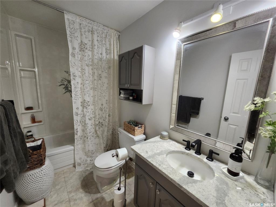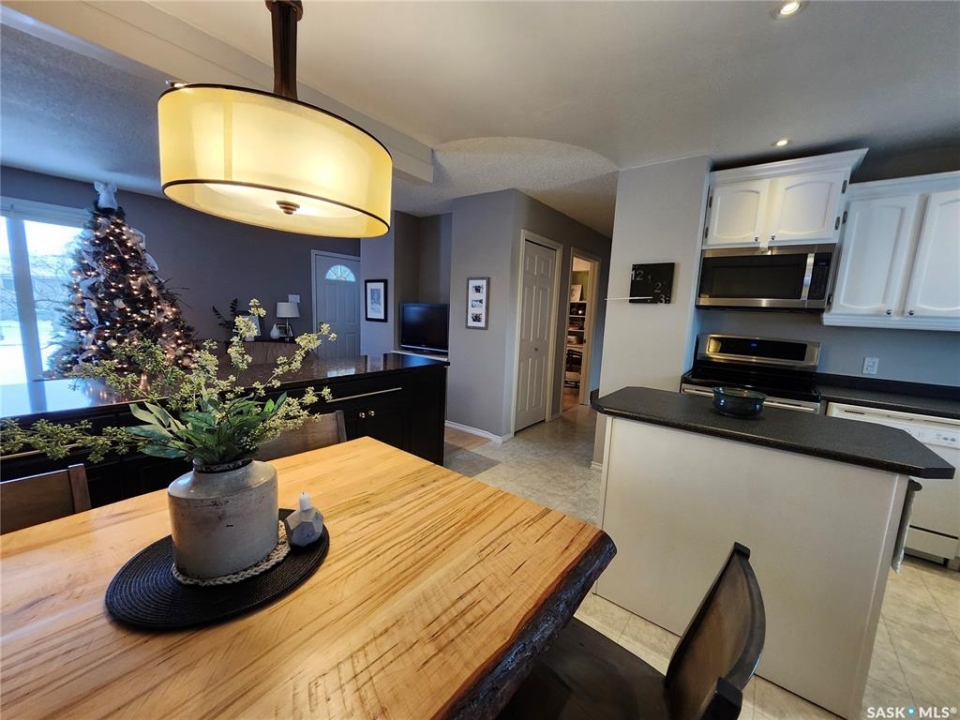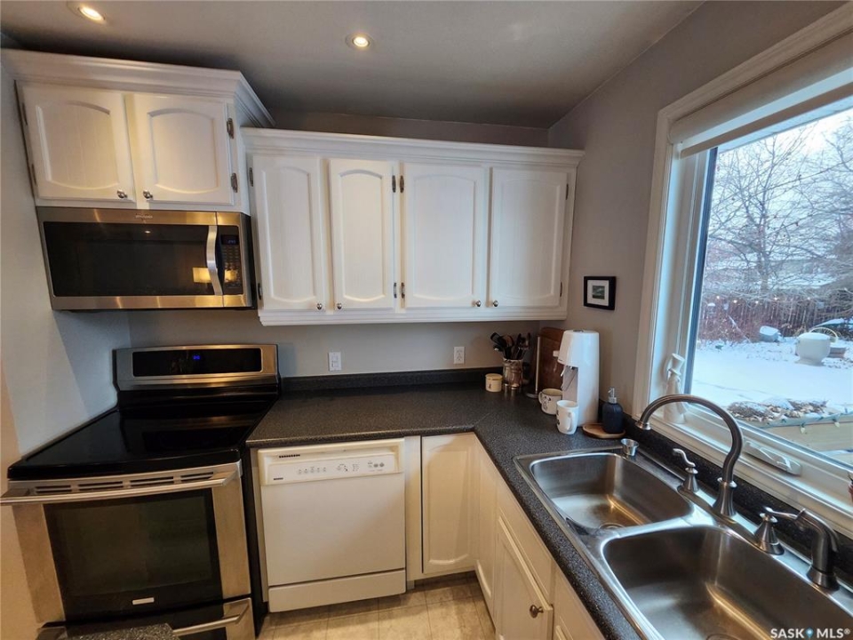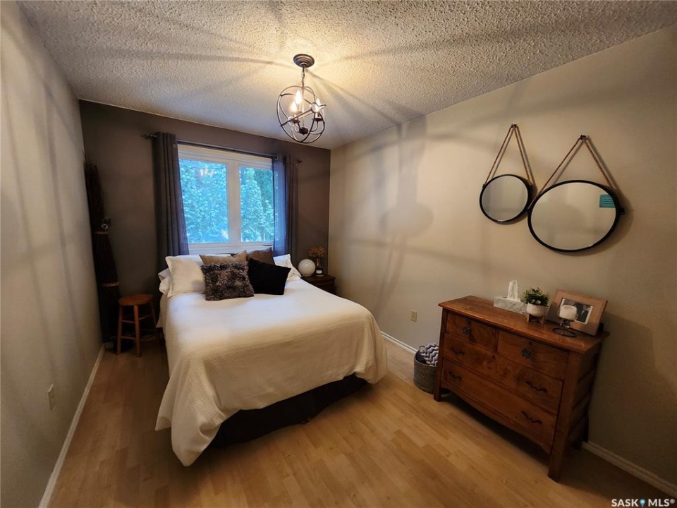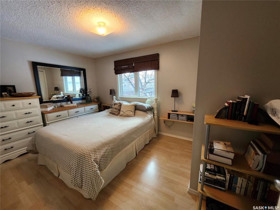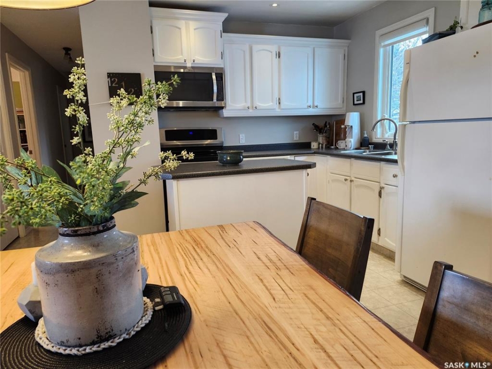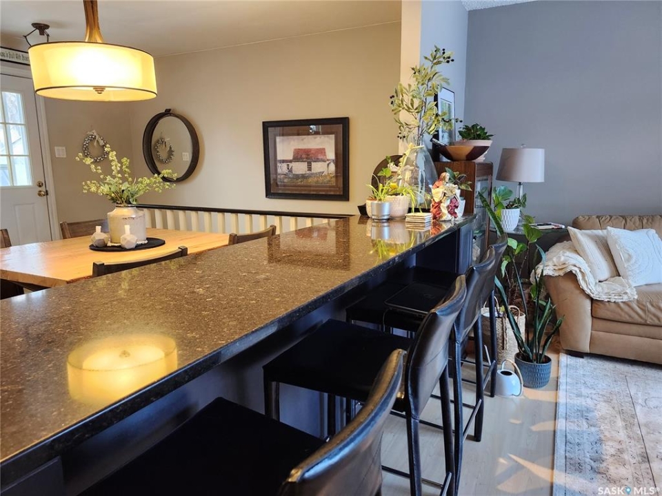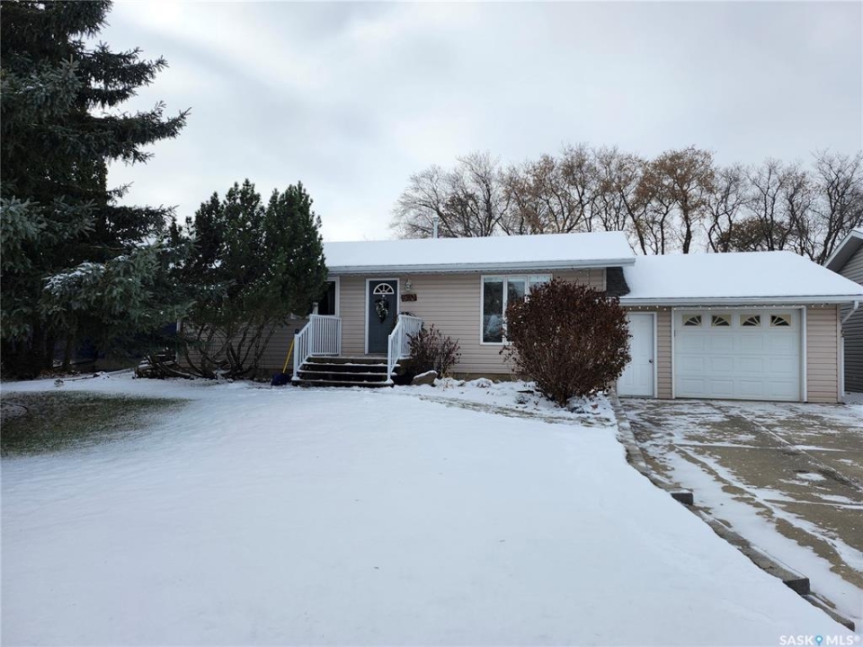 Premium East-Side Bungalow – Meticulously Updated, Move-In Ready This exceptionally maintained bungalow on Esterhazy's sought-after east side offers premium quality upgrades from top to bottom. The main floor and high-ceiling full basement are fully finished with care and craftsmanship, featuring updated mouldings, doors, closet organizers, modern switches, new light fixtures, and fresh window treatments throughout. The custom kitchen showcases beautifully built cabinetry, a quartz-topped peninsula, and an induction stove. The main bathroom has been upgraded with a granite-top vanity, new sink, and new taps. Triple-pane living room windows and argon-filled double-pane windows elsewhere enhance comfort and efficiency. Mechanical updates include a high-efficiency furnace, central air, water softener (2020), PEX plumbing throughout, a new water main from curb to meter (2024), sewer line inspected and confirmed clear (2024), and 35-year shingles installed in 2017. Maytag washer and Samsung dryer are also included and in great condition. No history of seepage or water damage. Outside, enjoy a spacious, beautifully kept backyard with a fire pit and new shed. The 32-ft attached garage accommodates two compact vehicles parked front-to-back. A rare opportunity to own a fully modernized, impeccably cared-for home in a prime location.