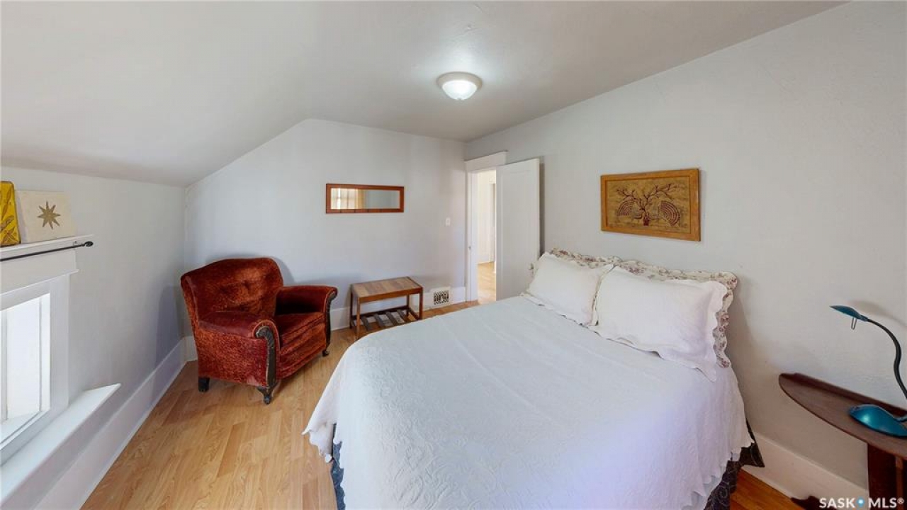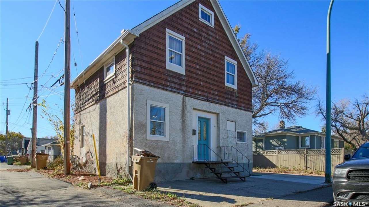 Welcome to 827 15th Avenue in the Broders Annex neighborhood close to St. Augustine Elementary School, Al Ritchie Community center and park, the library, bus routes, College Avenue drug store and more. This 1921 built, 1164 square foot, 4 bedroom 1 bathroom 2 storey house sits on a 35 x 25 square foot rectangular lot. Although the lot size is compact, there is a patio area and a single concrete driveway for private parking! You enter the front door into the large living room with modern laminate flooring. Next is an adorable little bedroom that would also make a wonderful office. The kitchen has ample cupboard and drawer space and includes the fridge and stove! The open concept has plenty of space for any size of table and chairs and there is another living room as well! Upstairs on the second floor there are three great sized bedrooms and the 4 piece bathroom! Downstairs in the partial basement you'll find the owned furnace, gas water heater and the included washer and dryer! This home also makes a great low maintenance Air BnB and was used as one prior to listing!