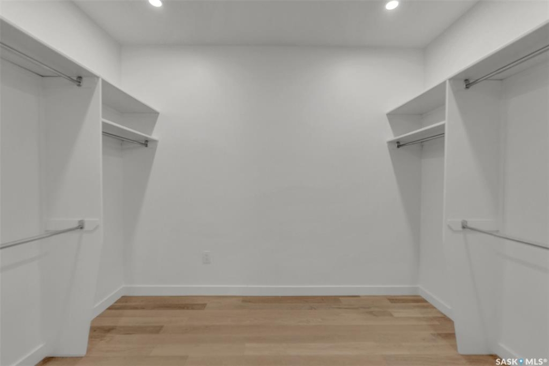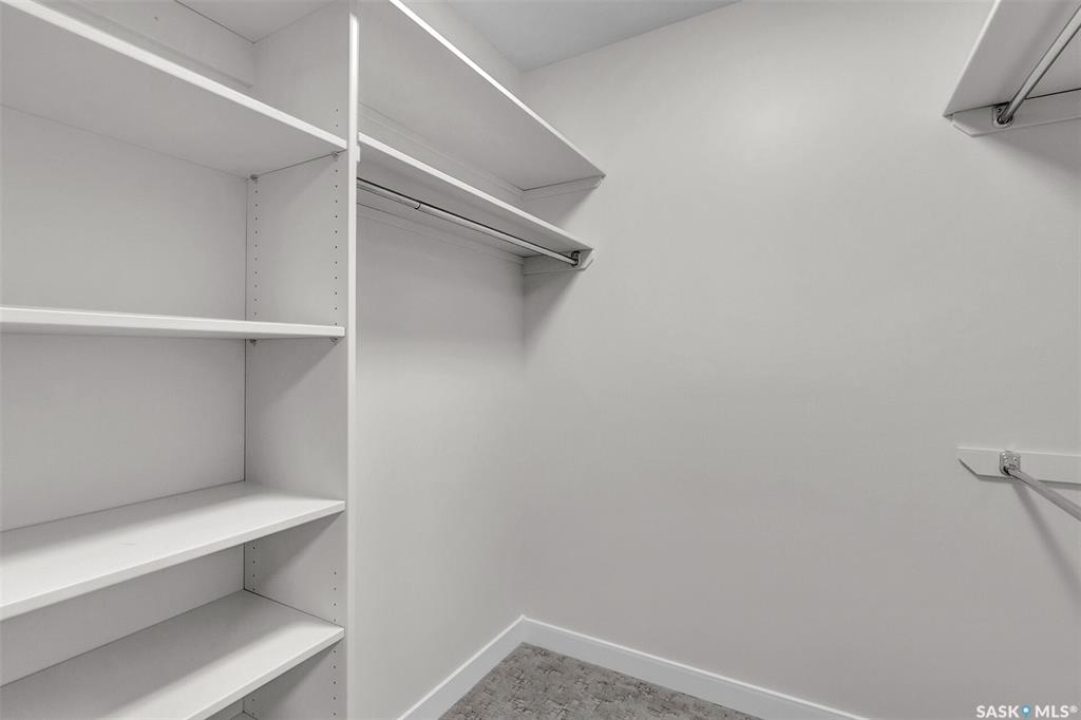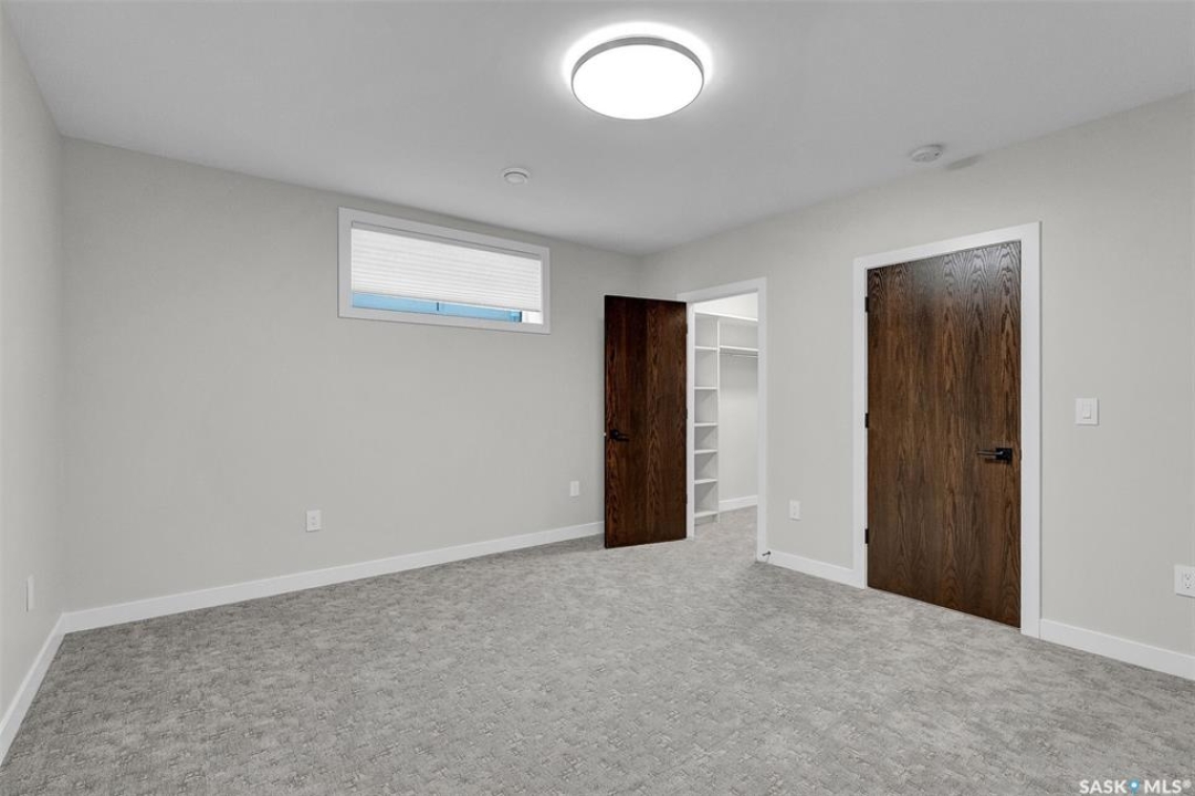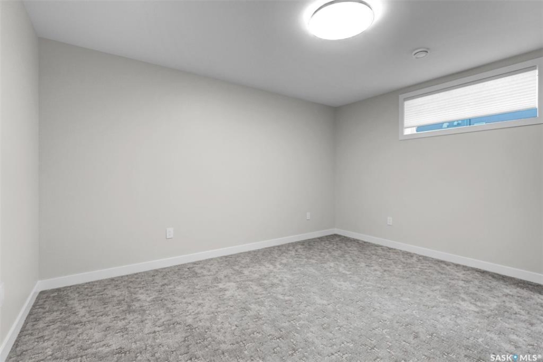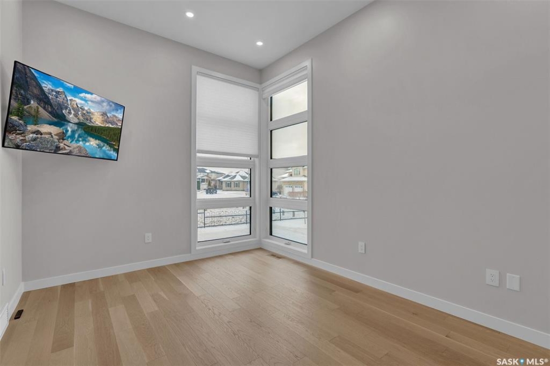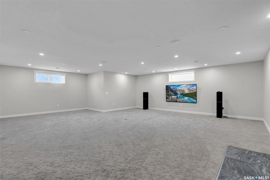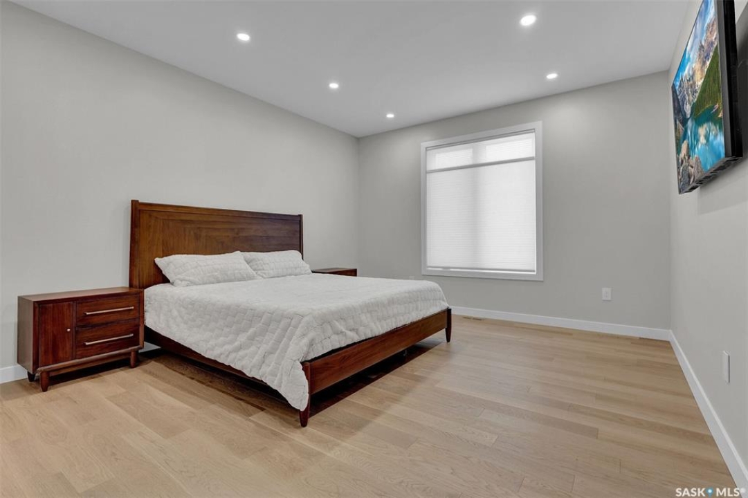 Mid-century modern by one of Regina's most respected builders: Westmount Homes (Tom Moore). Thoughtful design, remarkable craftsmanship & the builder's signature commitment to quality. Adjacent to an open space easement, this home will impress! Main floor 9' ceiling & suspended beams in great room ,gas fireplace wrapped in blackened steel, & custom millwork. Flooded with natural light, the space flows to dining area & the gourmet kitchen that is as functional as it is beautiful. Custom cabinetry, a large quartz topped island W generous amount of drawers & wine fridge. Built in JennAir fridge, coffee bar, blackened steel hood fan, induction cooktop (gas line available), double ovens ,light-sensored garbage/recycling drawer, & cabinet W black quartz countertop & wine racks. Front den has 11' ceiling & frosted sliding door. Primary bdrm features a showstopper ensuite:double sinks, floating vanity, heated floor, soaker tub, glass shower & walk-in closet. Laundry/mud room W wall of custom designed cupboards, cabinets & sink. Engineered hardwood floors & tile throughout main floor. Powder room. Tile wall adjacent to floating tread staircase W steel cable railing. Expansive family rm 2 large windows & custom-built wet bar W fridge. Two big bedrooms W walk-in closets, linen closet & stunning � bath W glass shower. Storage space in furnace/utility room. 26' x 26' garage with 13'4" ceiling, floor drain and epoxy coated floor. Patio doors from the dining area open to the Trek deck with staggered frosted inserts in the railing and steps to the lower-level exposed aggregate patio.Underground sprinklers in front and back.The home is fully spray foamed, structural floor & built on piles. 200 AMP 84 circuit electrical panel, high efficient furnace & triple pane windows. Heavy duty soffits & eavestroughs & Standing Seam Metal Roof. Two stuccoed privacy walls in front. The home comes with Westmount Homes New Home Warranty. This home is a definite must to view!