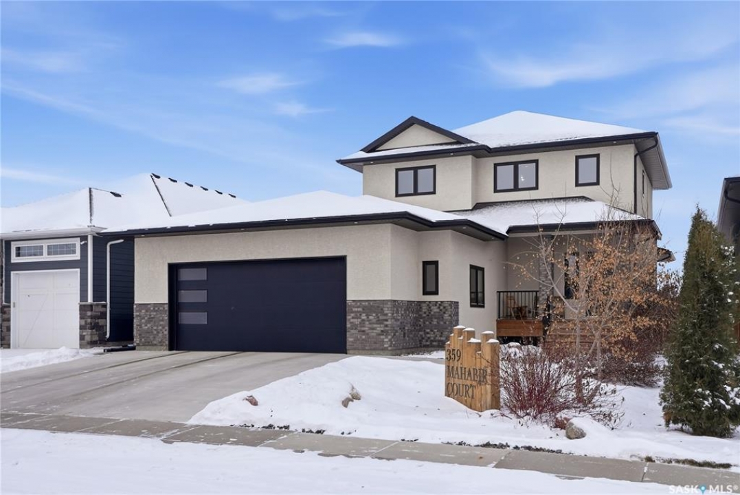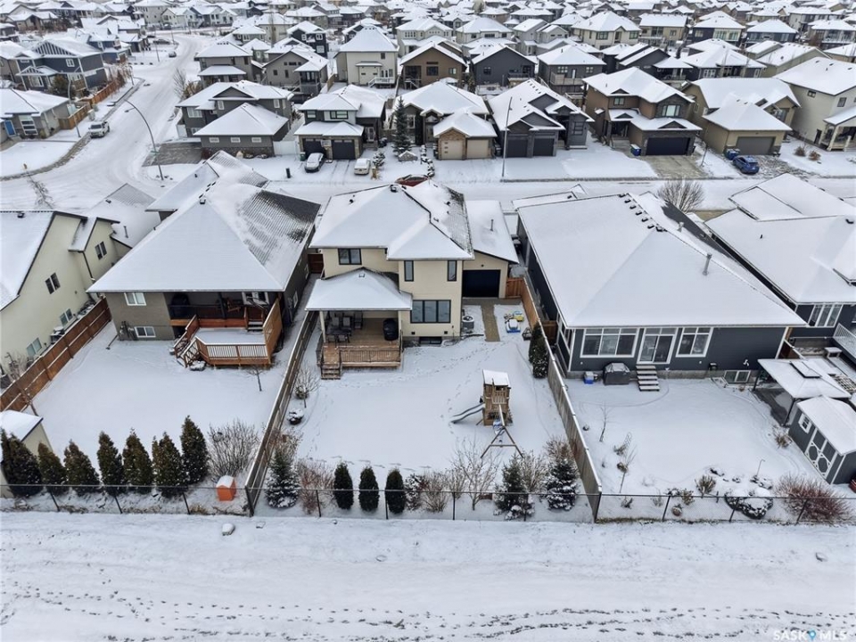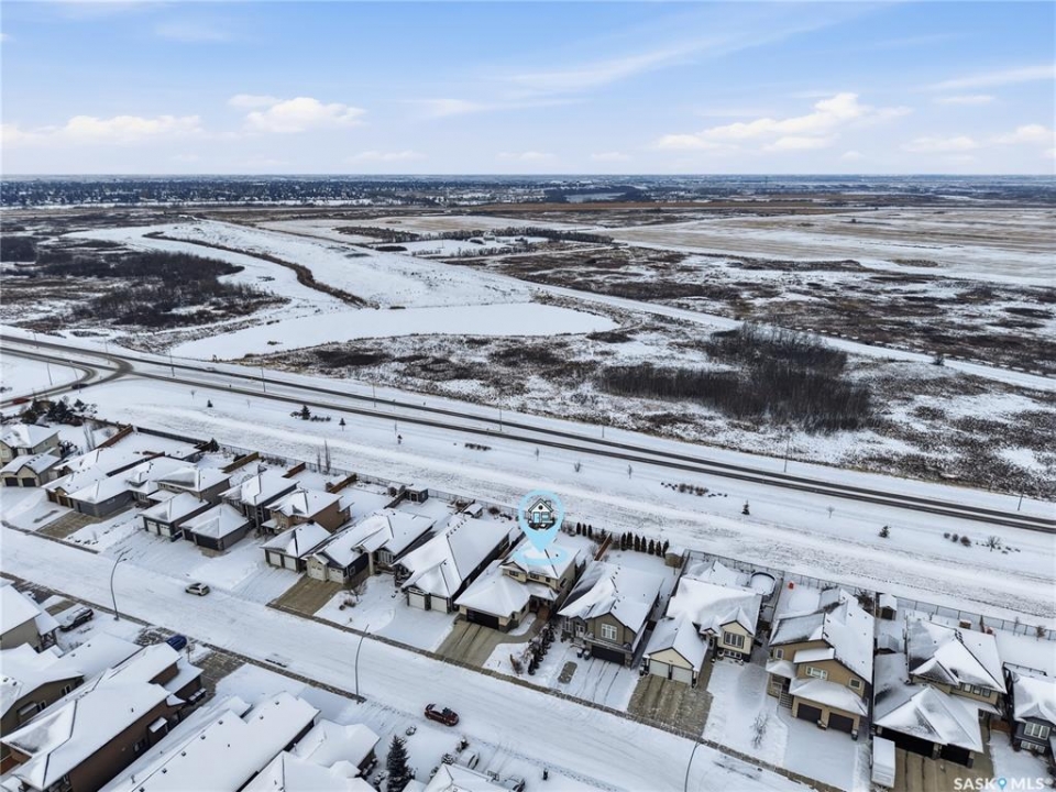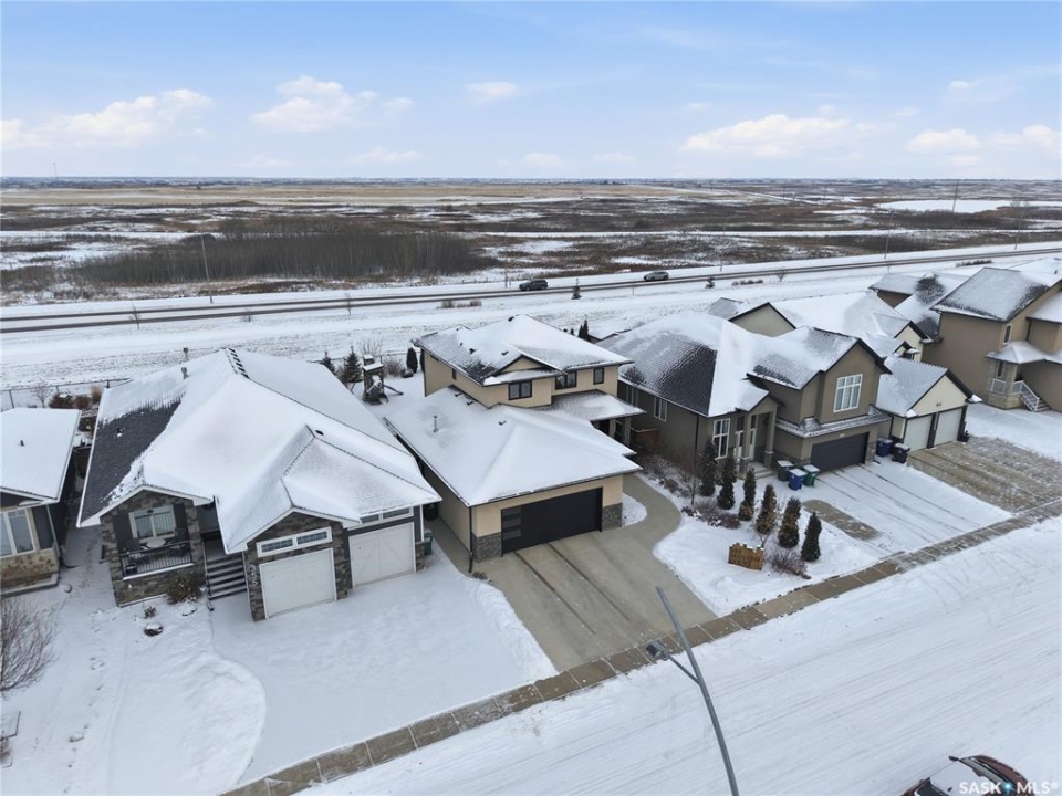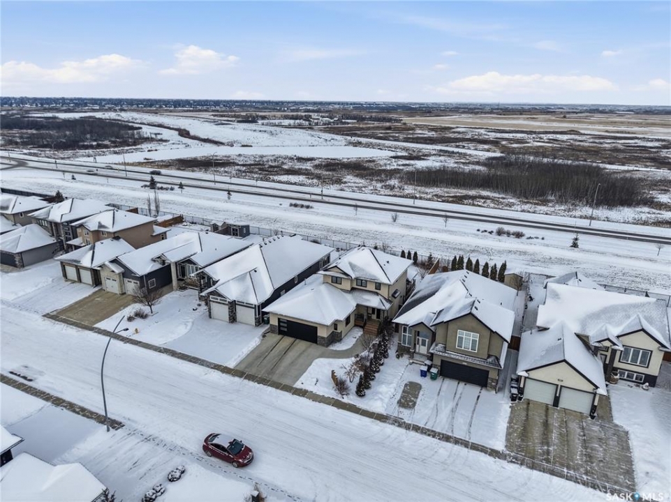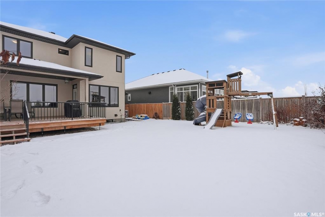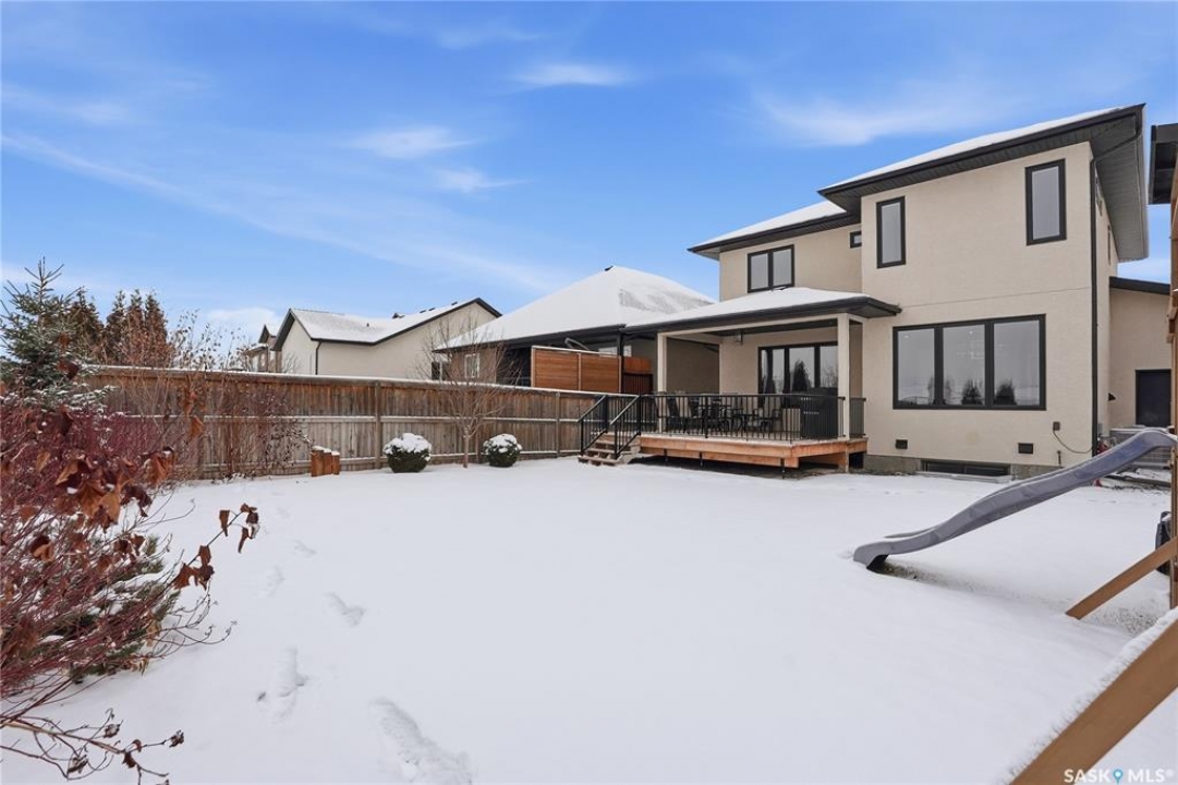 Welcome to a truly exceptional property in one of Saskatoon's most sought-after communities. This quality built 4-bedroom, 4-bath home in Evergreen combines luxury, thoughtful design, and breathtaking natural views—backing onto the Northeast Swale, one of the city's most treasured protected areas. Inside, you'll find high-end finishes throughout, enhanced by ample intentional storage. Nearly every space features custom built-ins—from the living room cabinetry to the upstairs laundry and mudroom—creating a cohesive, clutter-free environment. The chef's kitchen offers generous cabinet space, quality appliances, and elegant finishes, opening into a bright living area and expansive views. The primary suite is a retreat of its own with a walk-in closet and a tranquil view overlooking the Northeast Swale— no rear neighbours, just open sky and nature. The ensuite continues the spa-like feel with premium finishes and smart layout. Each additional bedroom is well-sized, and the upstairs laundry is outfitted with cabinetry and workspace, making daily living easy. The exterior is just as impressive. The low-maintenance front yard blends modern curb appeal with convenience. The private backyard features underground sprinklers on timers, along with a thoughtfully designed rear deck that offers an incredible vantage point of the protected prairie ecosystem. Approximately $50,000 has been invested in landscaping upgrades. A rare find, the home also includes a tandem drive-through garage, perfect for extra vehicles, hobbies, or recreational gear. If you're looking for luxury, privacy, natural beauty, and smart functionality—all in a walkable, family-friendly neighbourhood—this Evergreen home is the complete package.