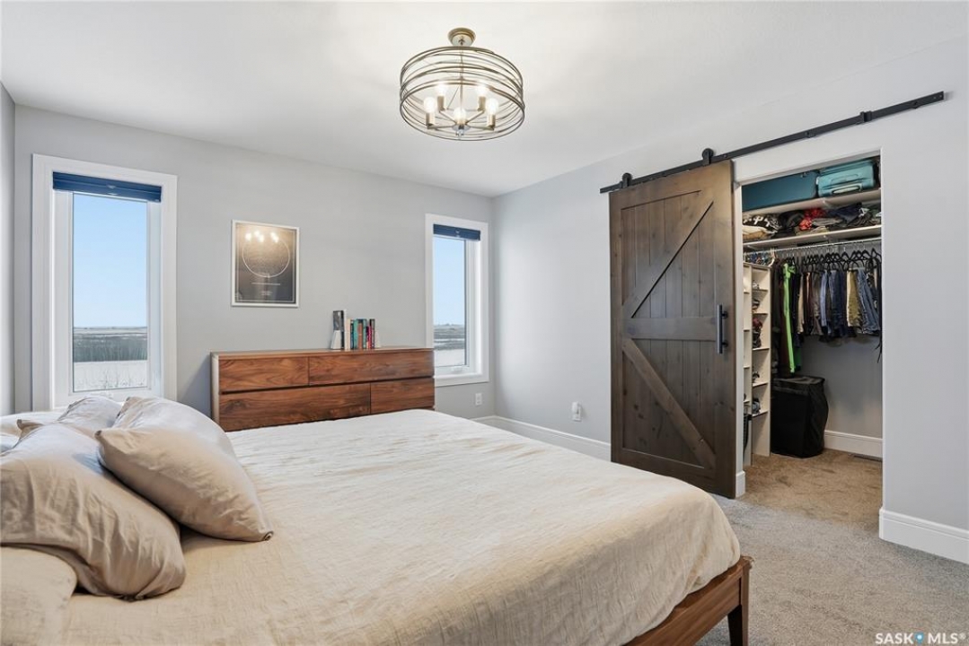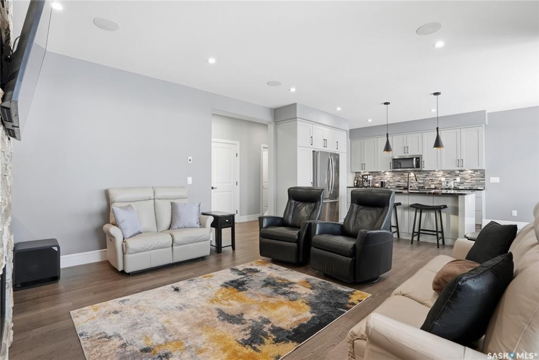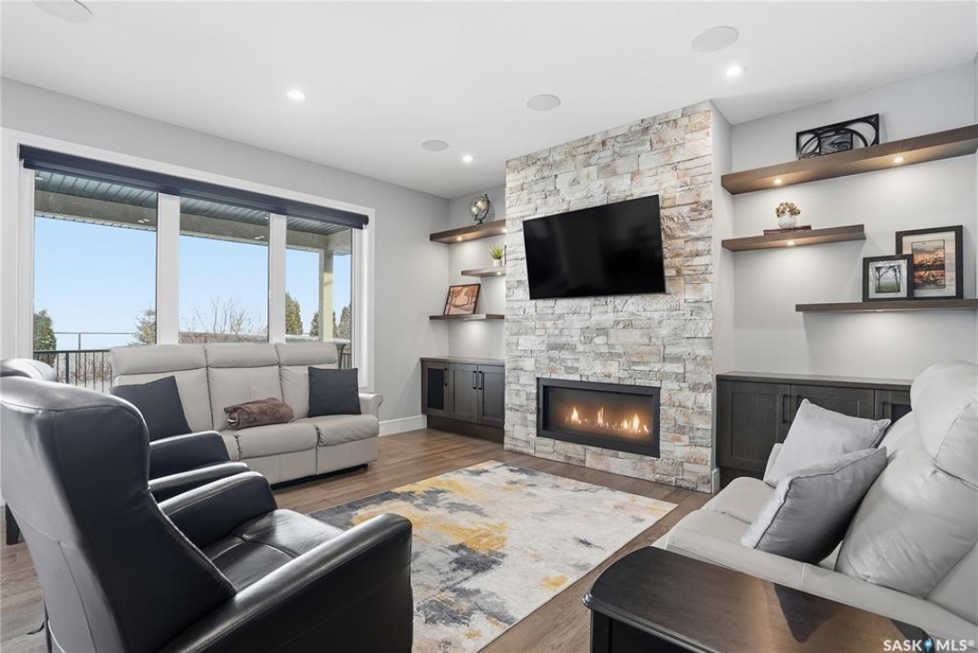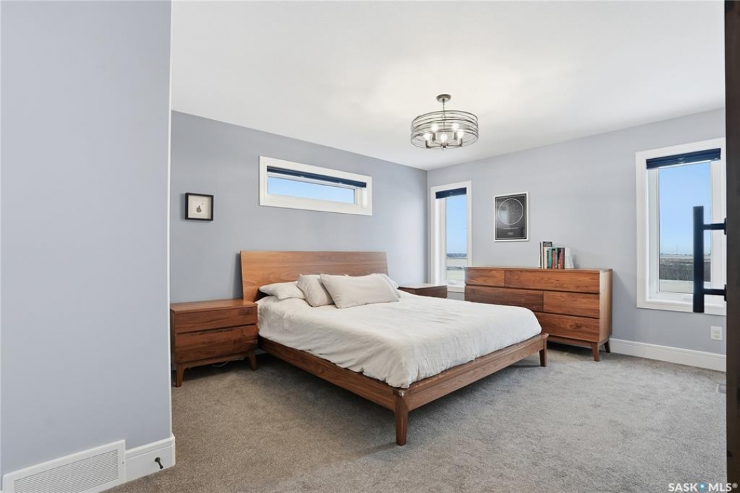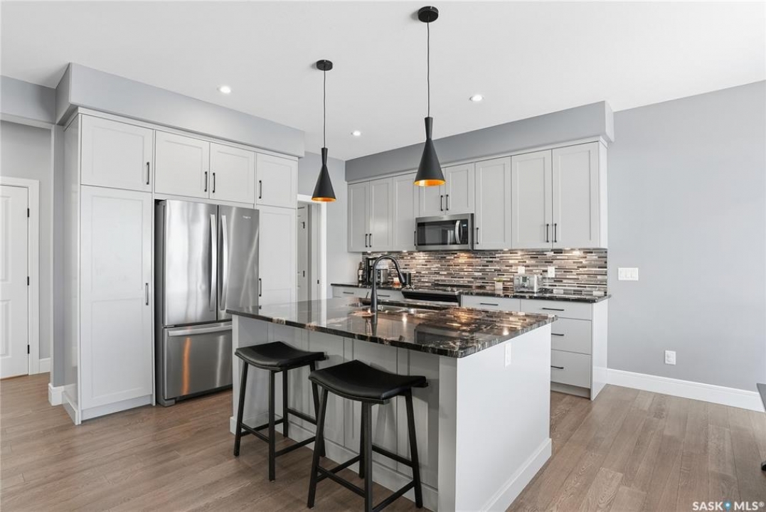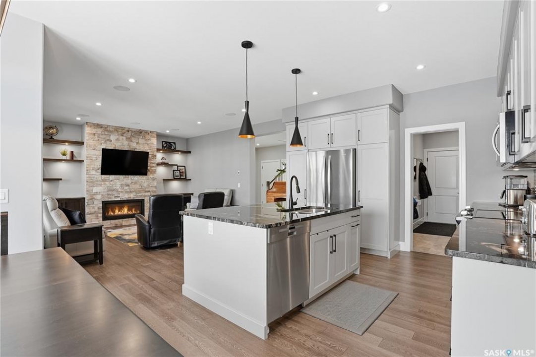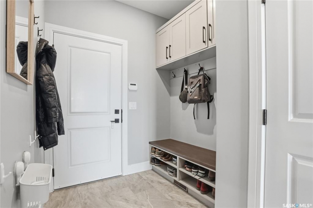 Welcome to a truly exceptional property in one of Saskatoon's most sought-after communities. This quality built 4-bedroom, 4-bath home in Evergreen combines luxury, thoughtful design, and breathtaking natural views—backing onto the Northeast Swale, one of the city's most treasured protected areas. Inside, you'll find high-end finishes throughout, enhanced by ample intentional storage. Nearly every space features custom built-ins—from the living room cabinetry to the upstairs laundry and mudroom—creating a cohesive, clutter-free environment. The chef's kitchen offers generous cabinet space, quality appliances, and elegant finishes, opening into a bright living area and expansive views. The primary suite is a retreat of its own with a walk-in closet and a tranquil view overlooking the Northeast Swale— no rear neighbours, just open sky and nature. The ensuite continues the spa-like feel with premium finishes and smart layout. Each additional bedroom is well-sized, and the upstairs laundry is outfitted with cabinetry and workspace, making daily living easy. The exterior is just as impressive. The low-maintenance front yard blends modern curb appeal with convenience. The private backyard features underground sprinklers on timers, along with a thoughtfully designed rear deck that offers an incredible vantage point of the protected prairie ecosystem. Approximately $50,000 has been invested in landscaping upgrades. A rare find, the home also includes a tandem drive-through garage, perfect for extra vehicles, hobbies, or recreational gear. If you're looking for luxury, privacy, natural beauty, and smart functionality—all in a walkable, family-friendly neighbourhood—this Evergreen home is the complete package.